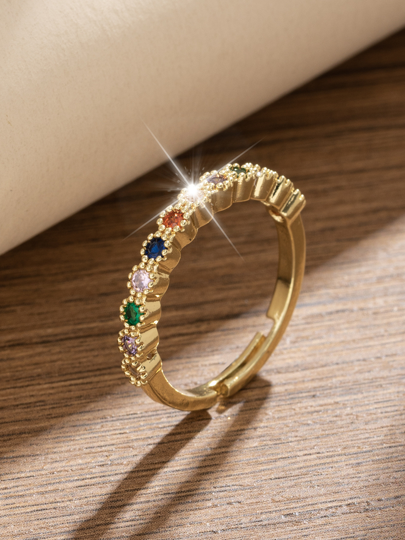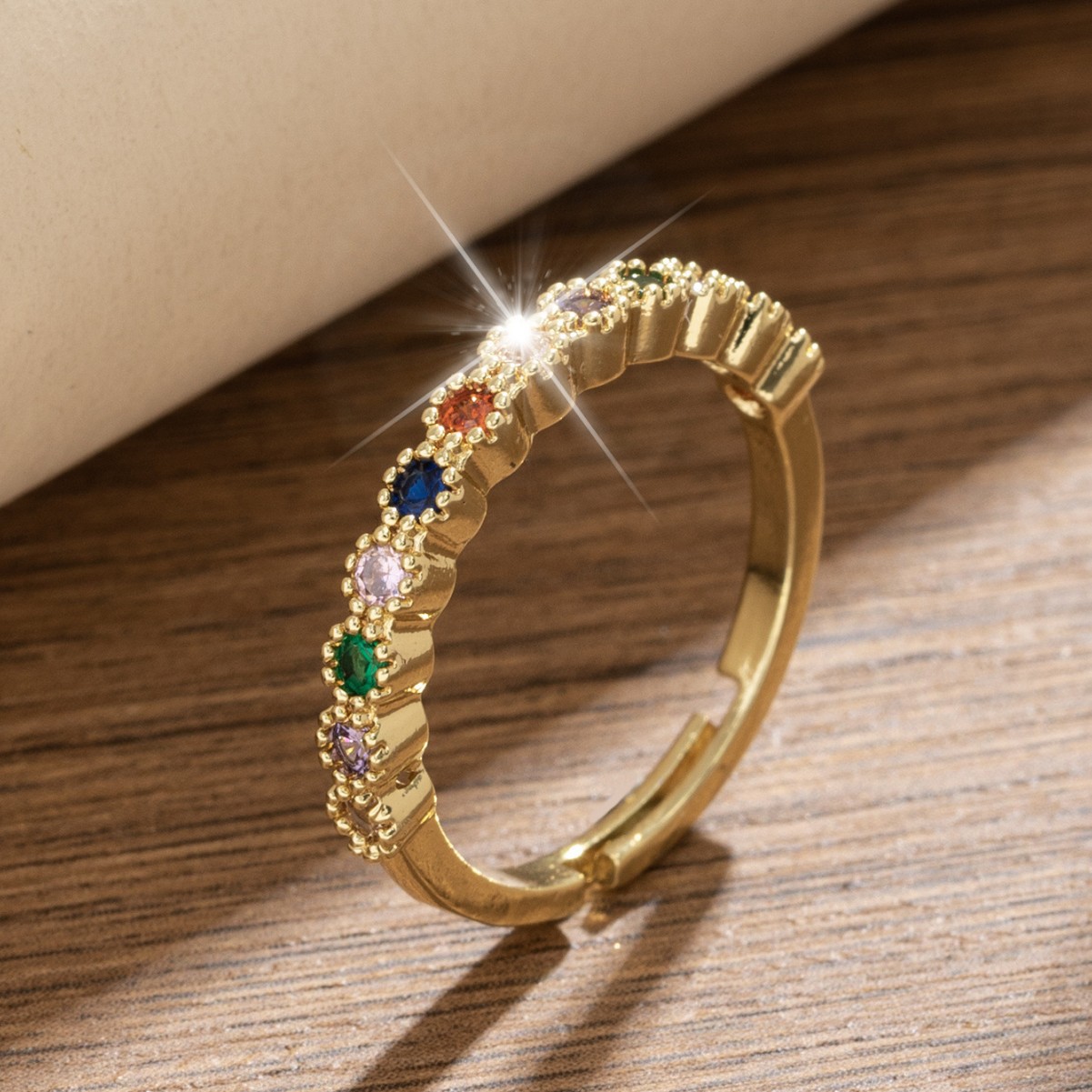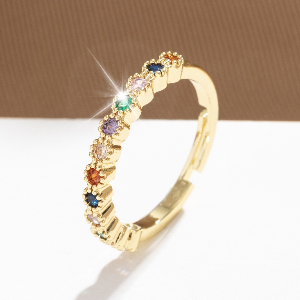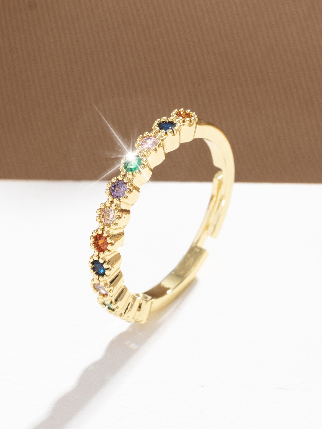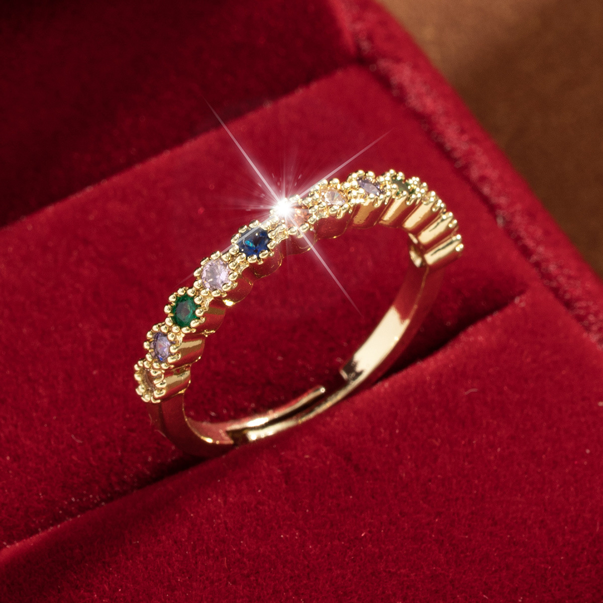 七彩个性戒指小众设计高级感时尚锆石镀金百搭简约指环女