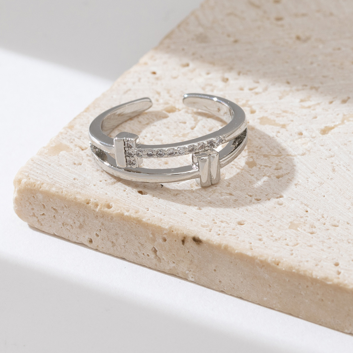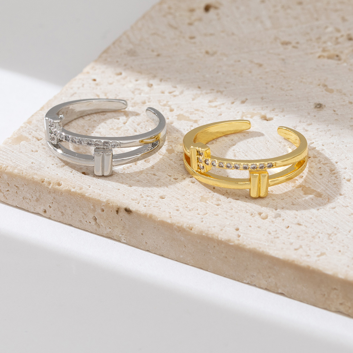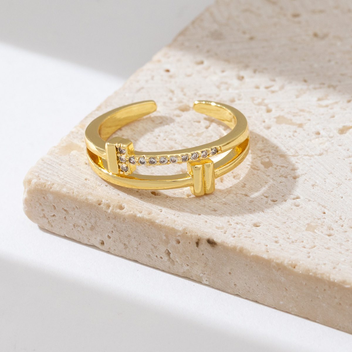 新款时尚INS小众设计日韩风个性高级感开口戒指轻奢铜微镶锆石