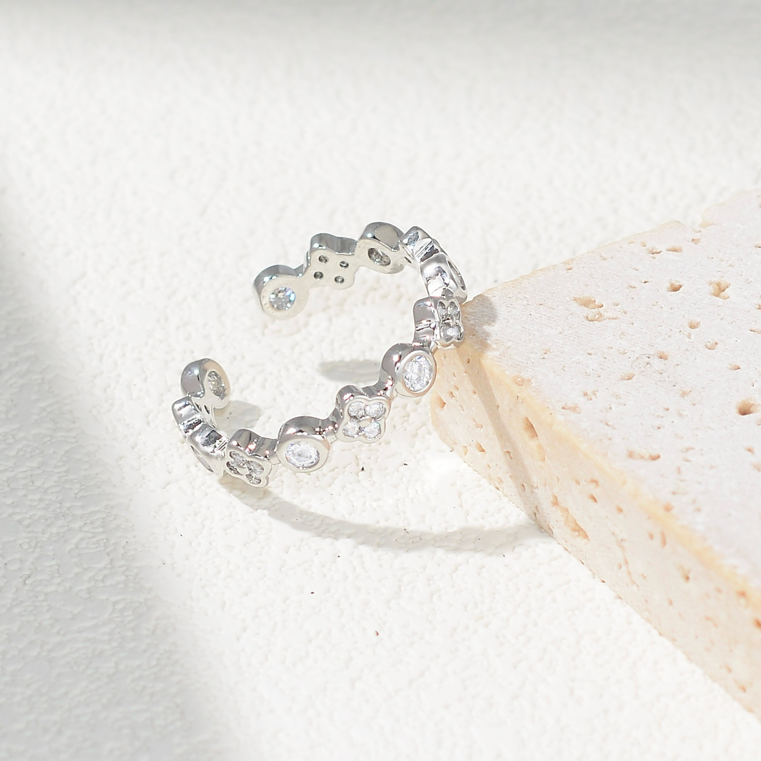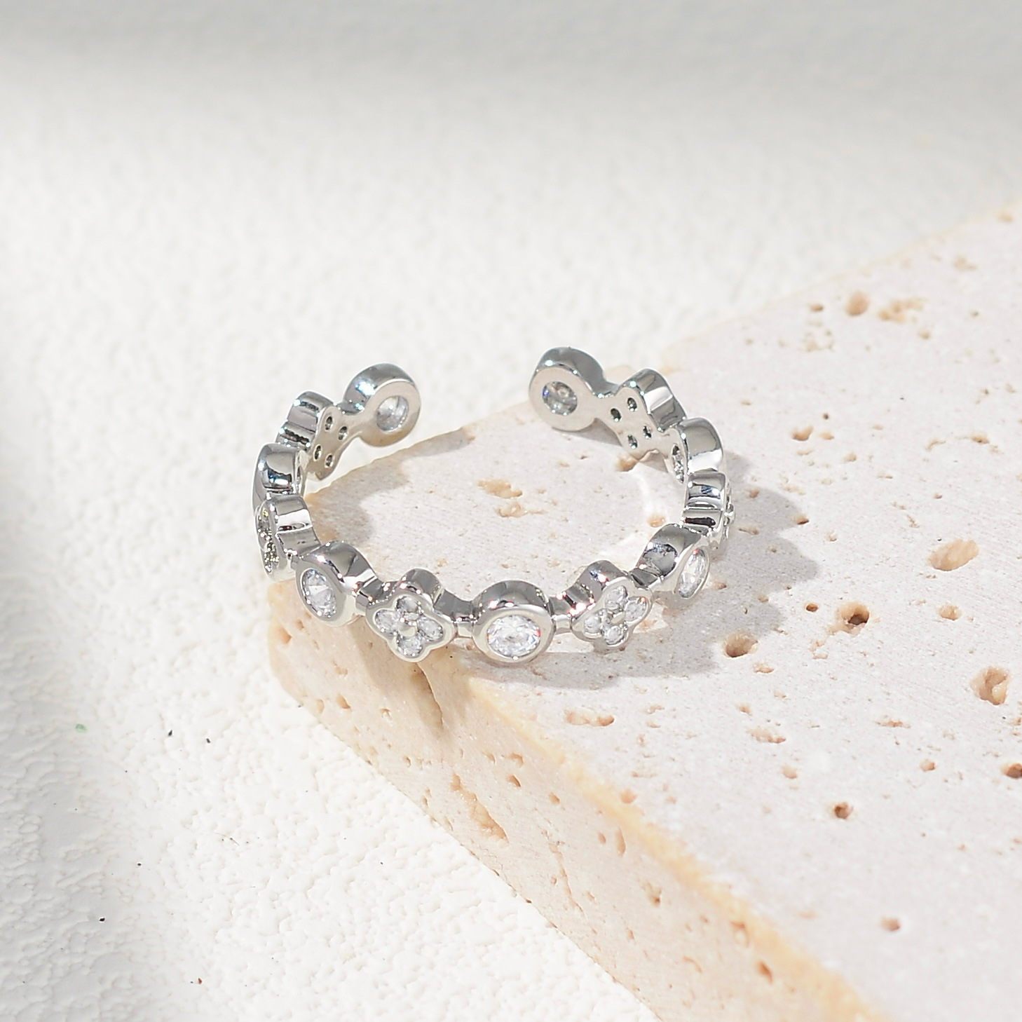 日韩时尚气质镶锆石小圆形指环 ins网红个性冷淡风食指戒子指环女
