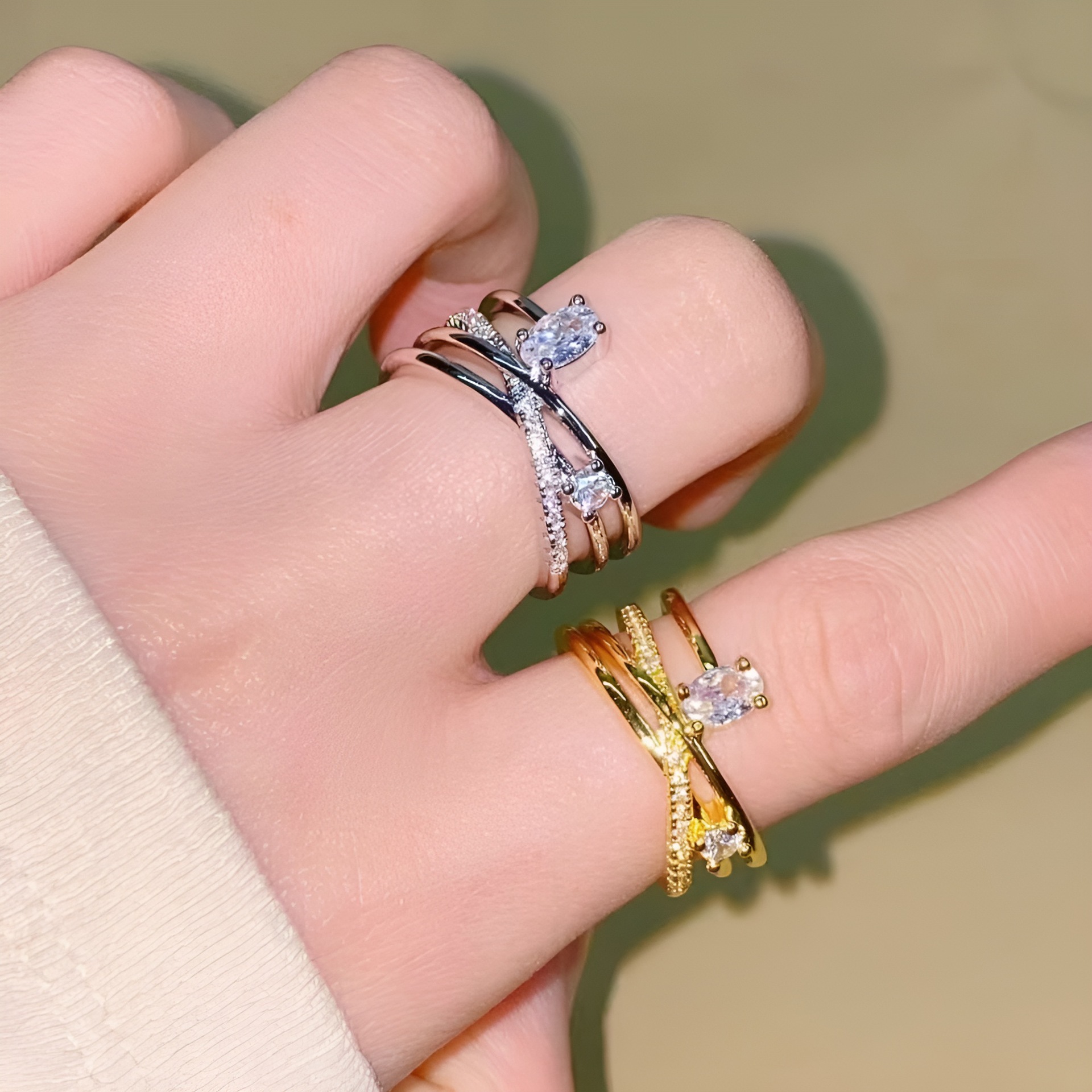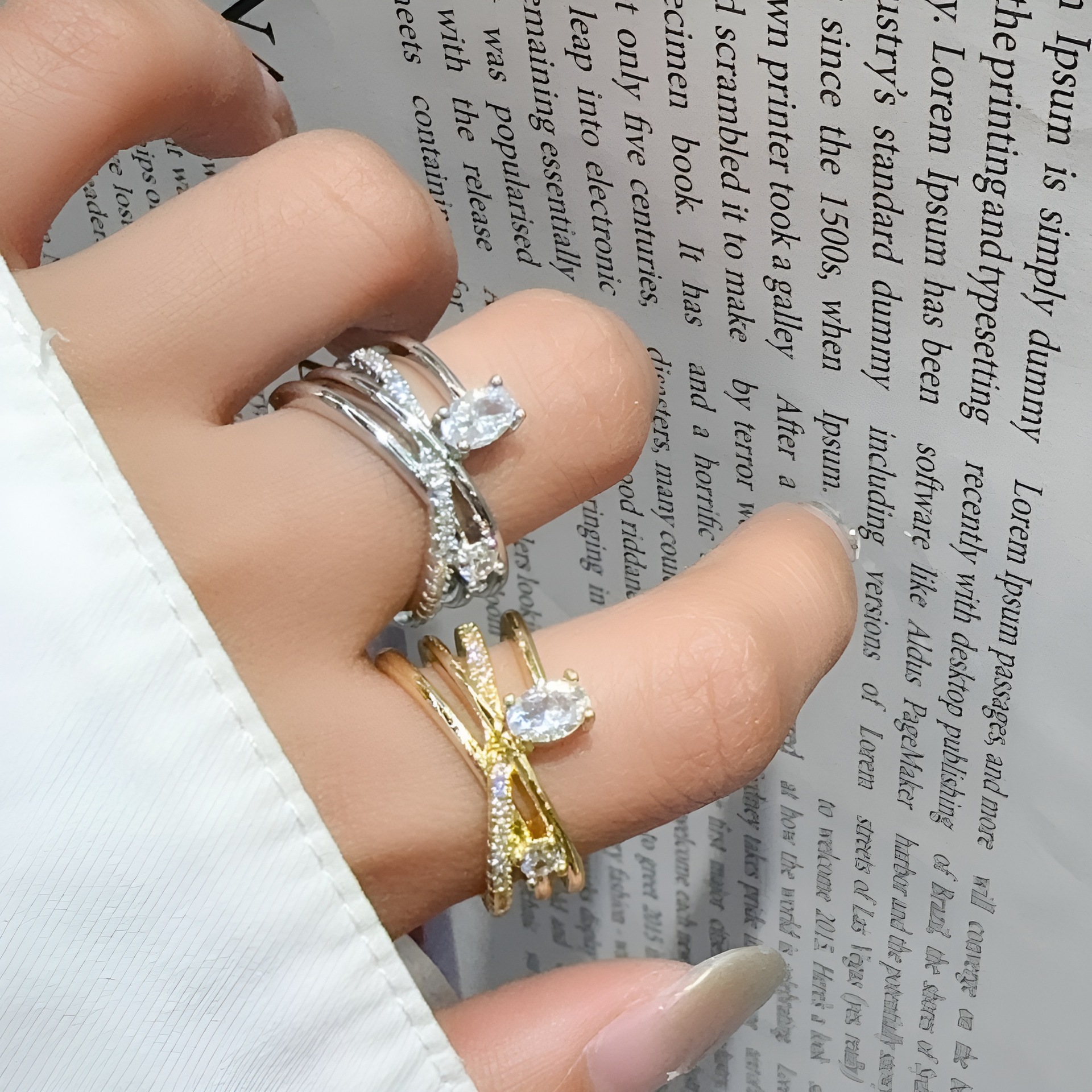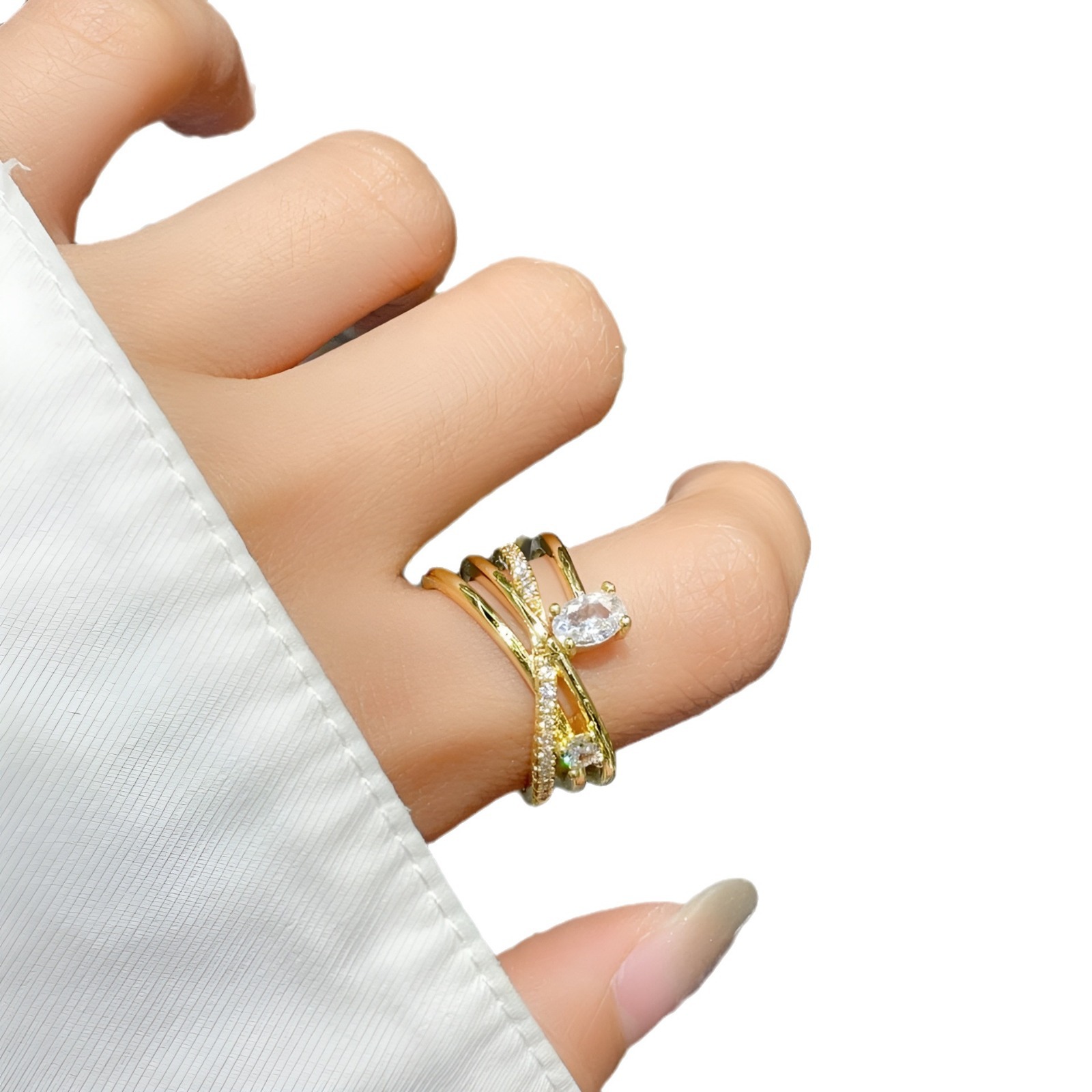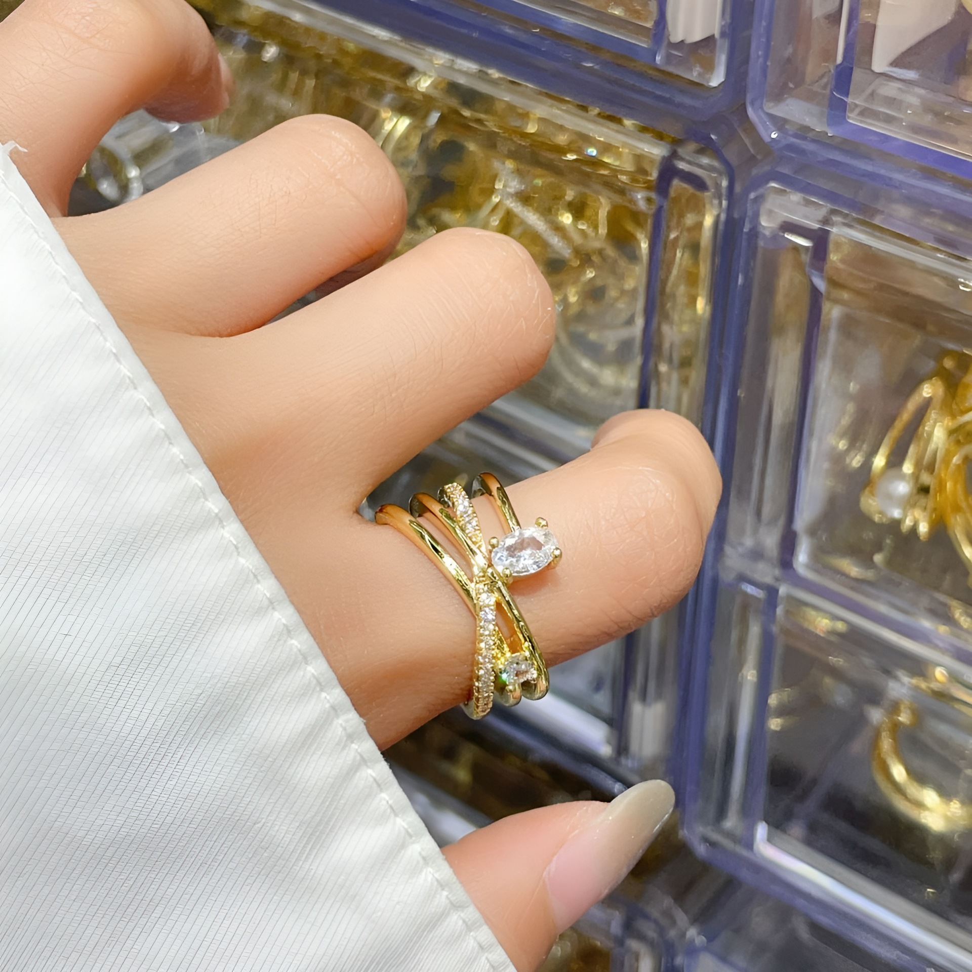 时尚新款铜锆石电镀真金多层开口镶钻戒指女轻奢高级感气质指环