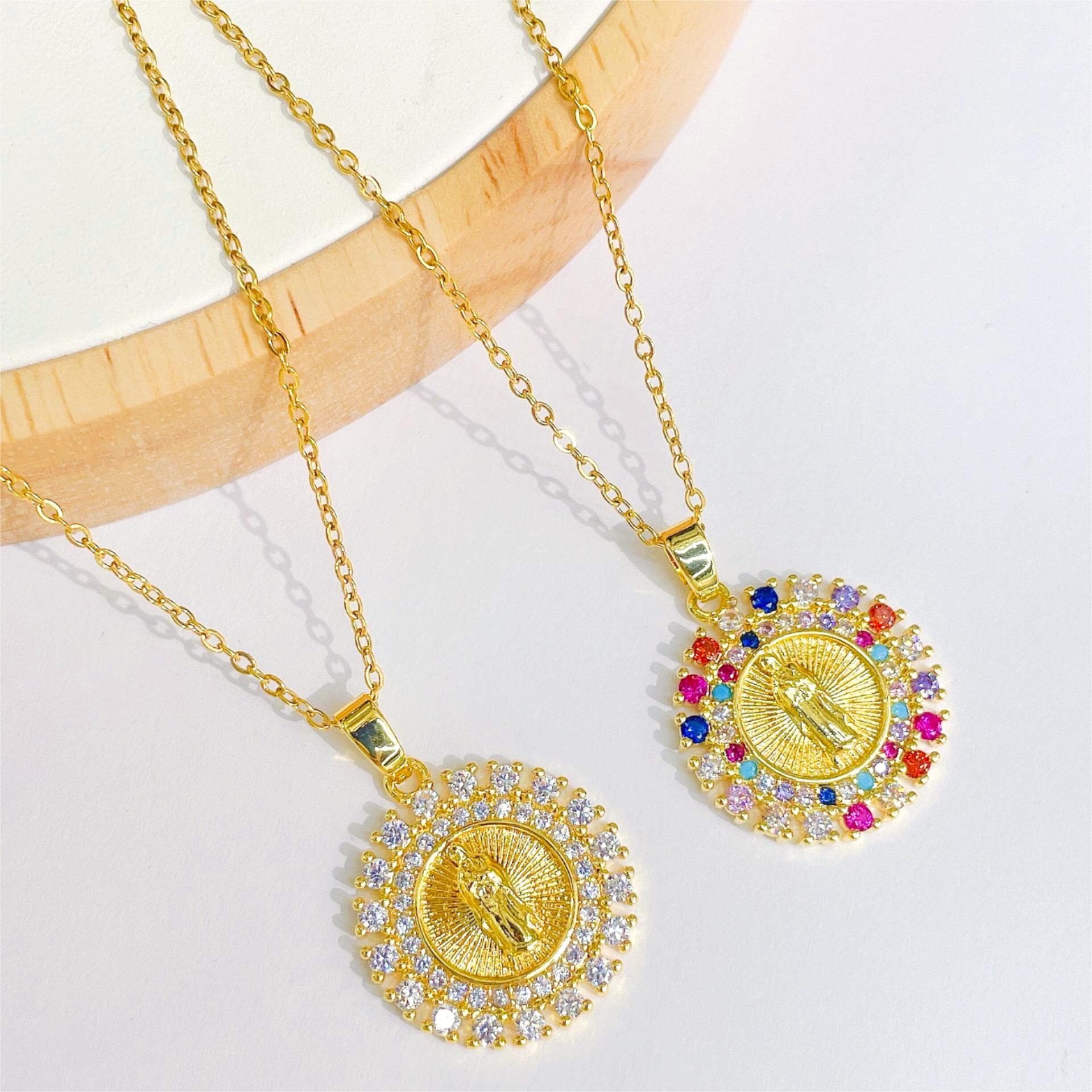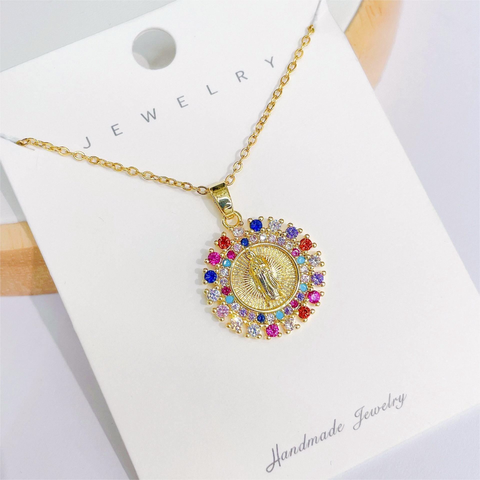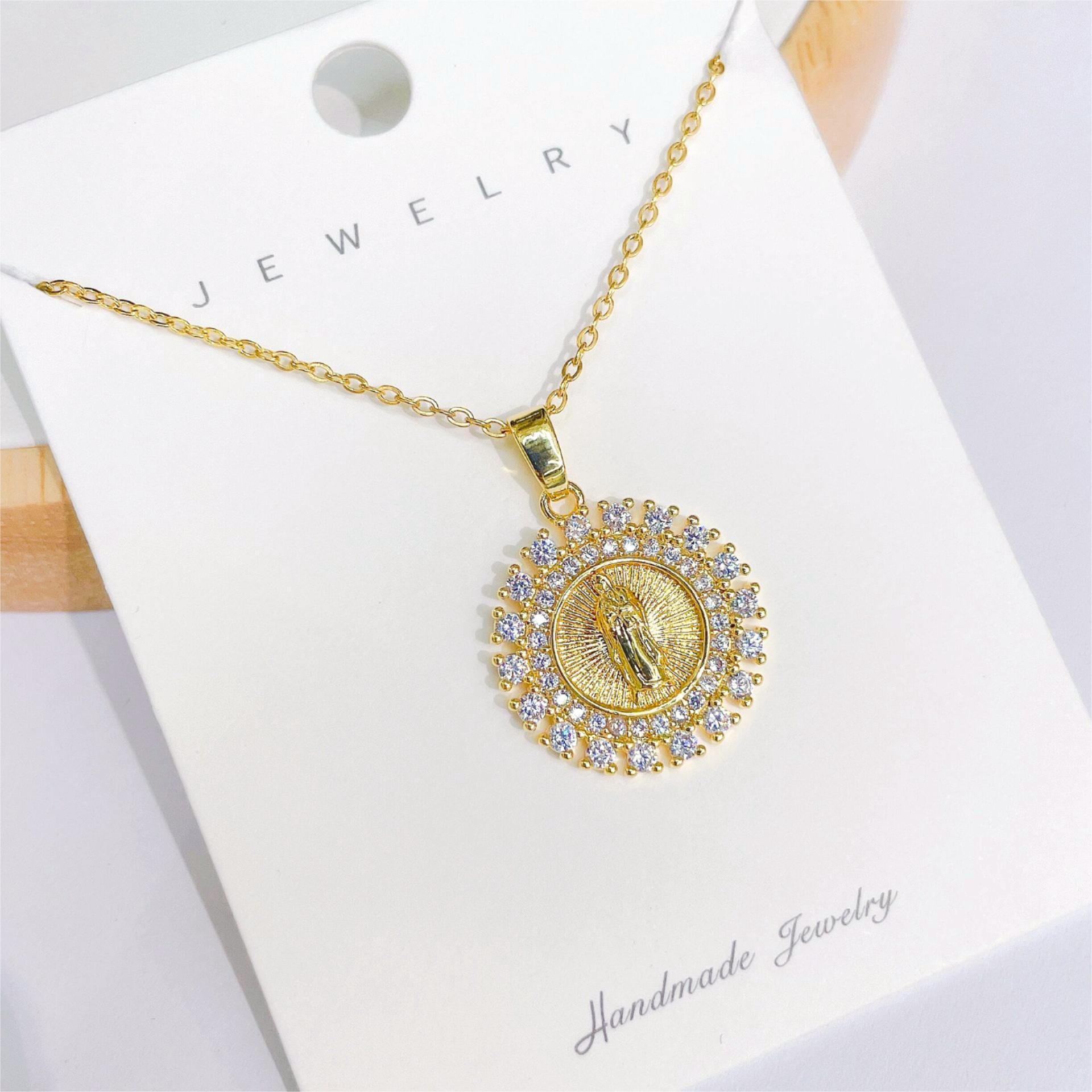 高级感满钻圣母吊坠优雅轻奢复古气质百搭满钻圆形玛丽亚花纹饰品