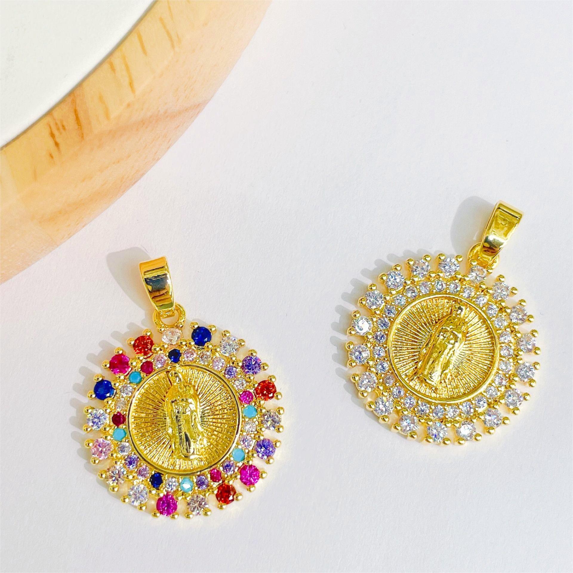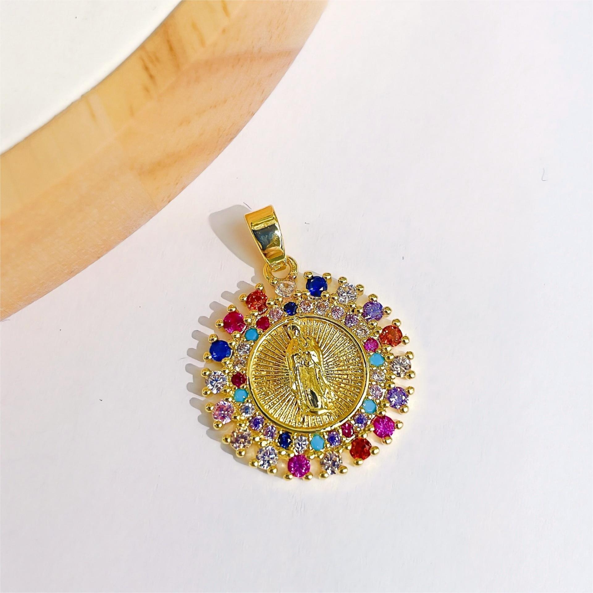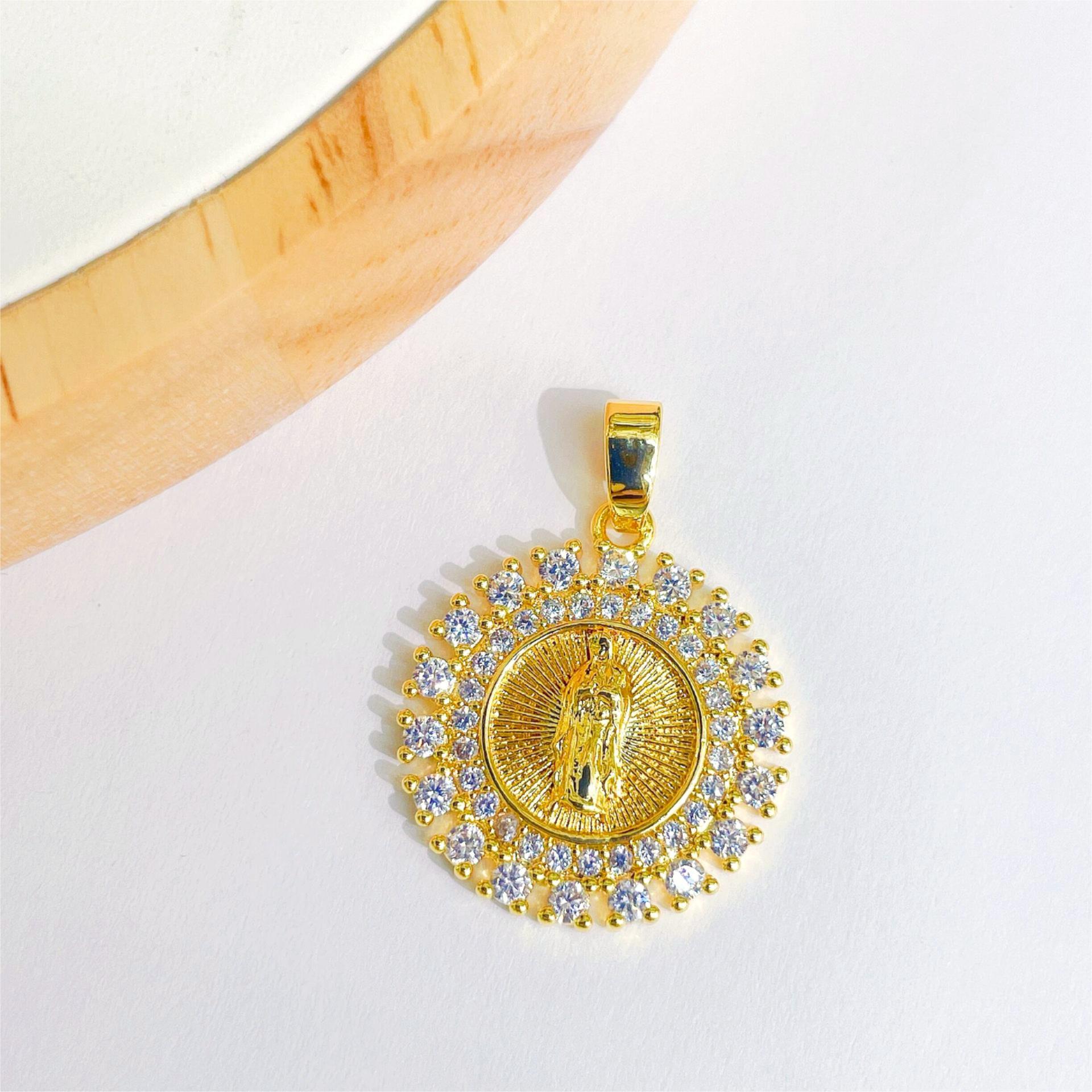 高级感满钻圣母吊坠优雅轻奢复古气质百搭满钻圆形玛丽亚花纹饰品
