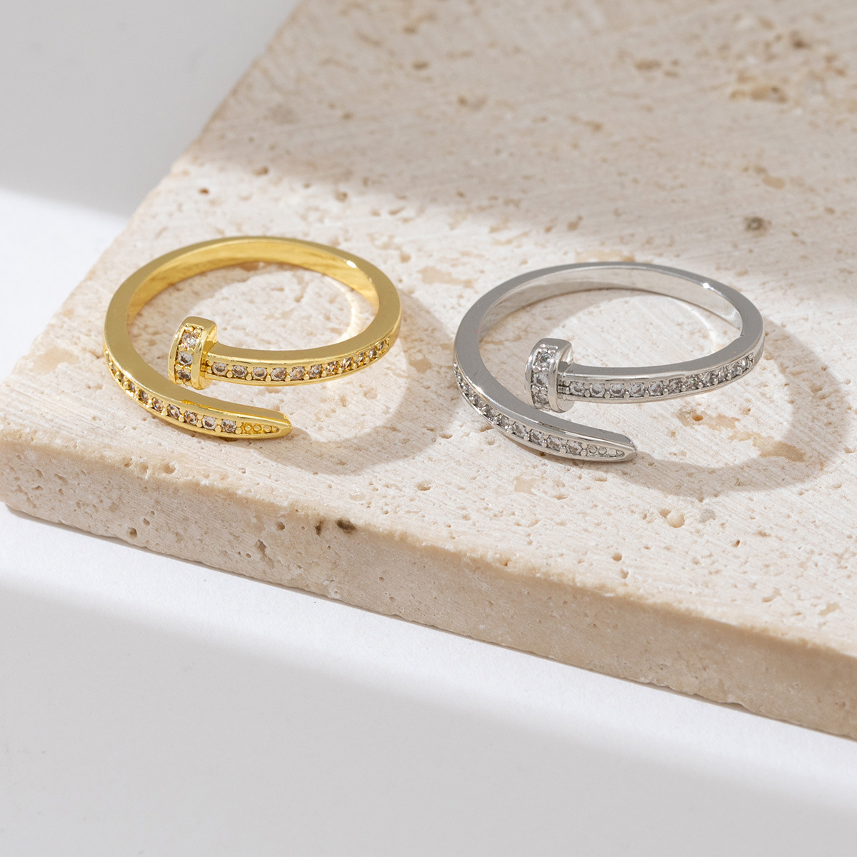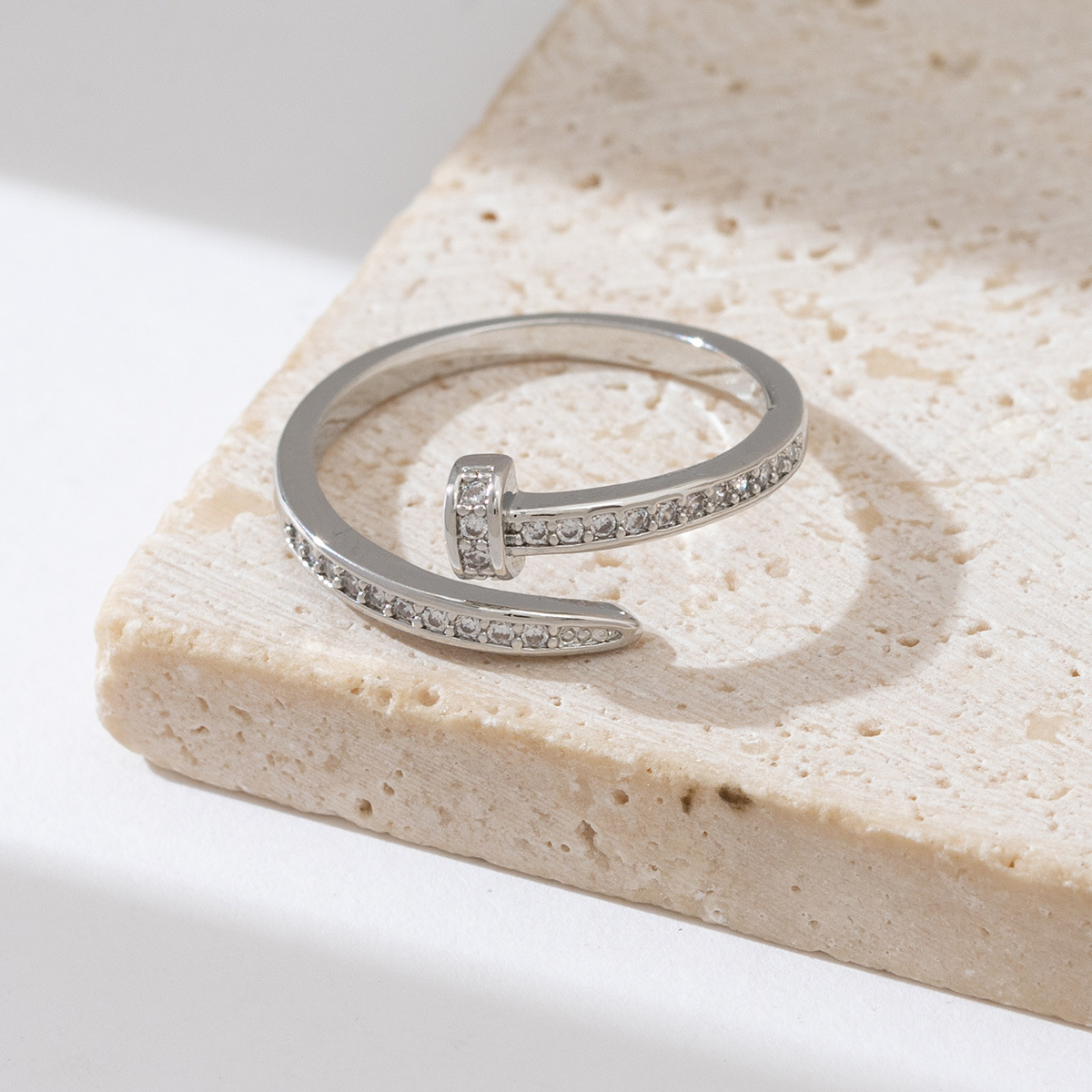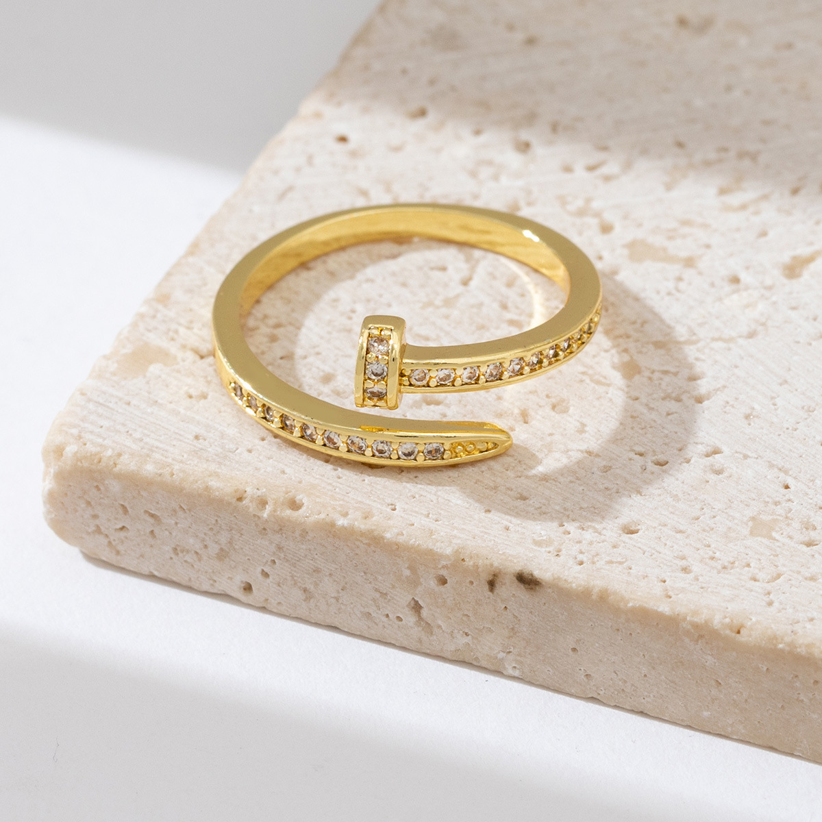 欧美钉子戒指女时尚个性开口小众高级感食指锆石戒冷淡风个性指环