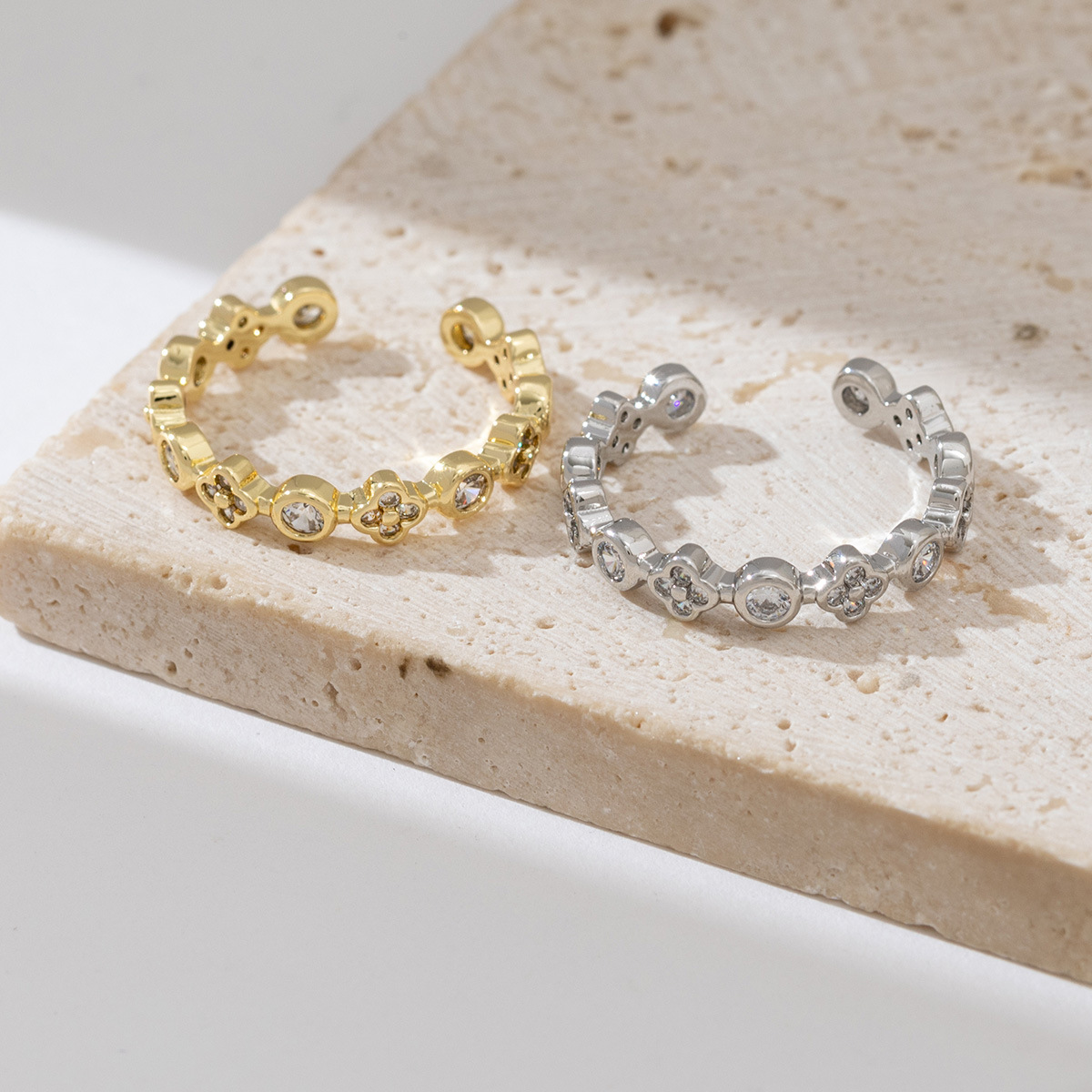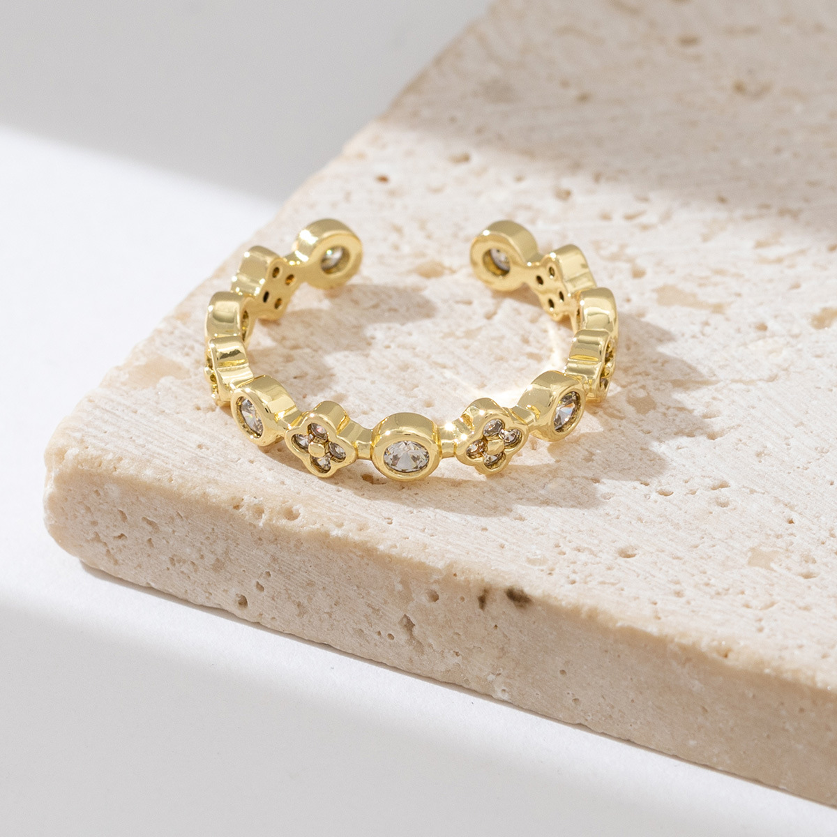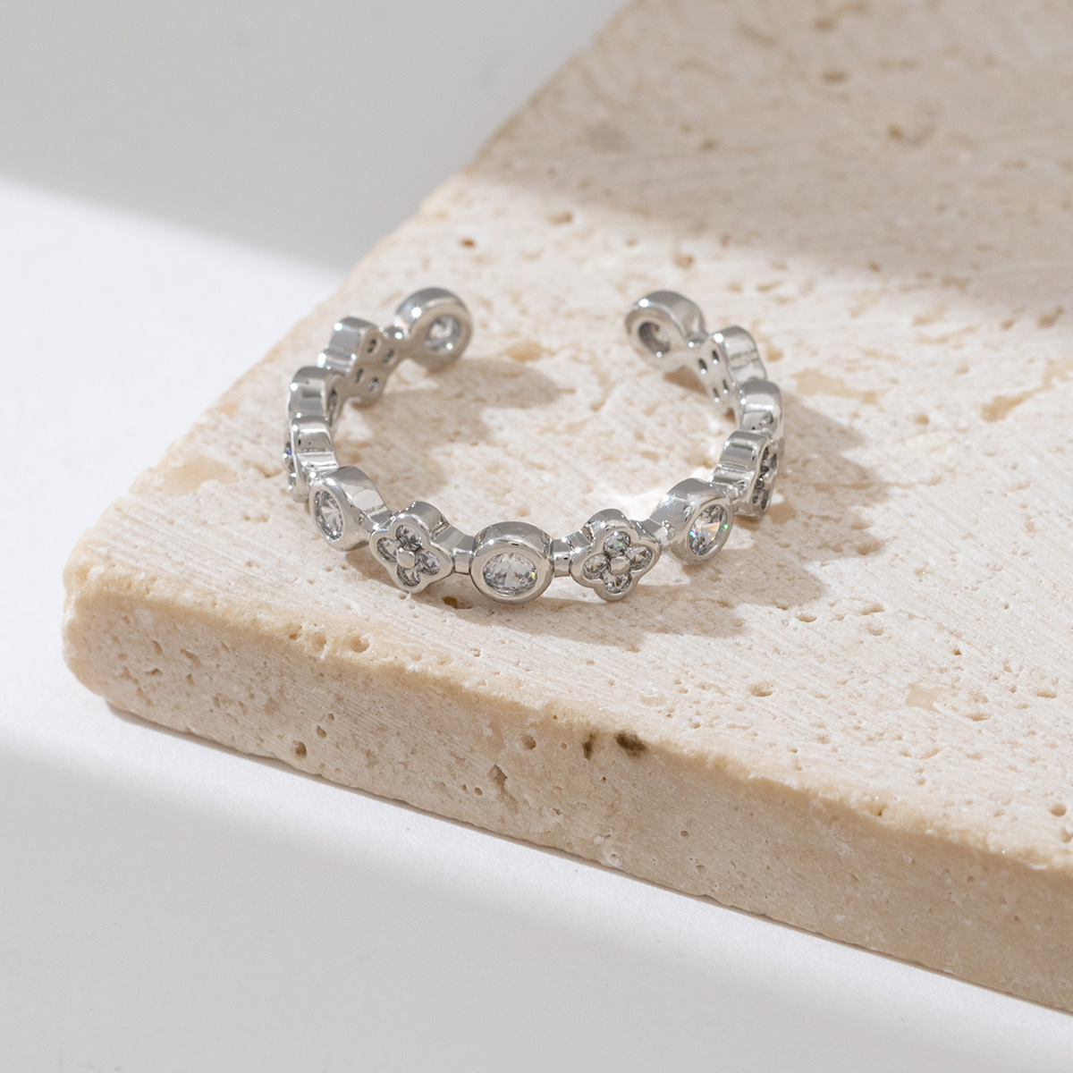 新款ins甜酷风不规则轻奢皓石戒指女 日常百搭气质开口食指戒批发