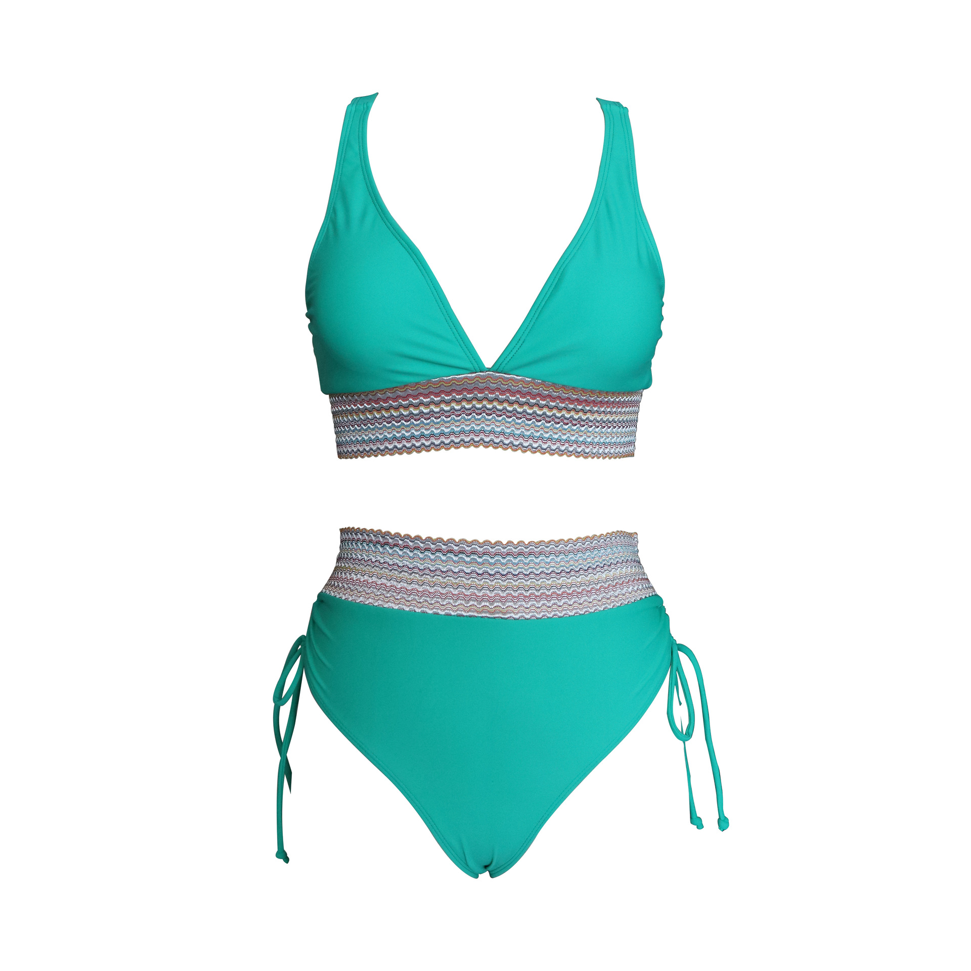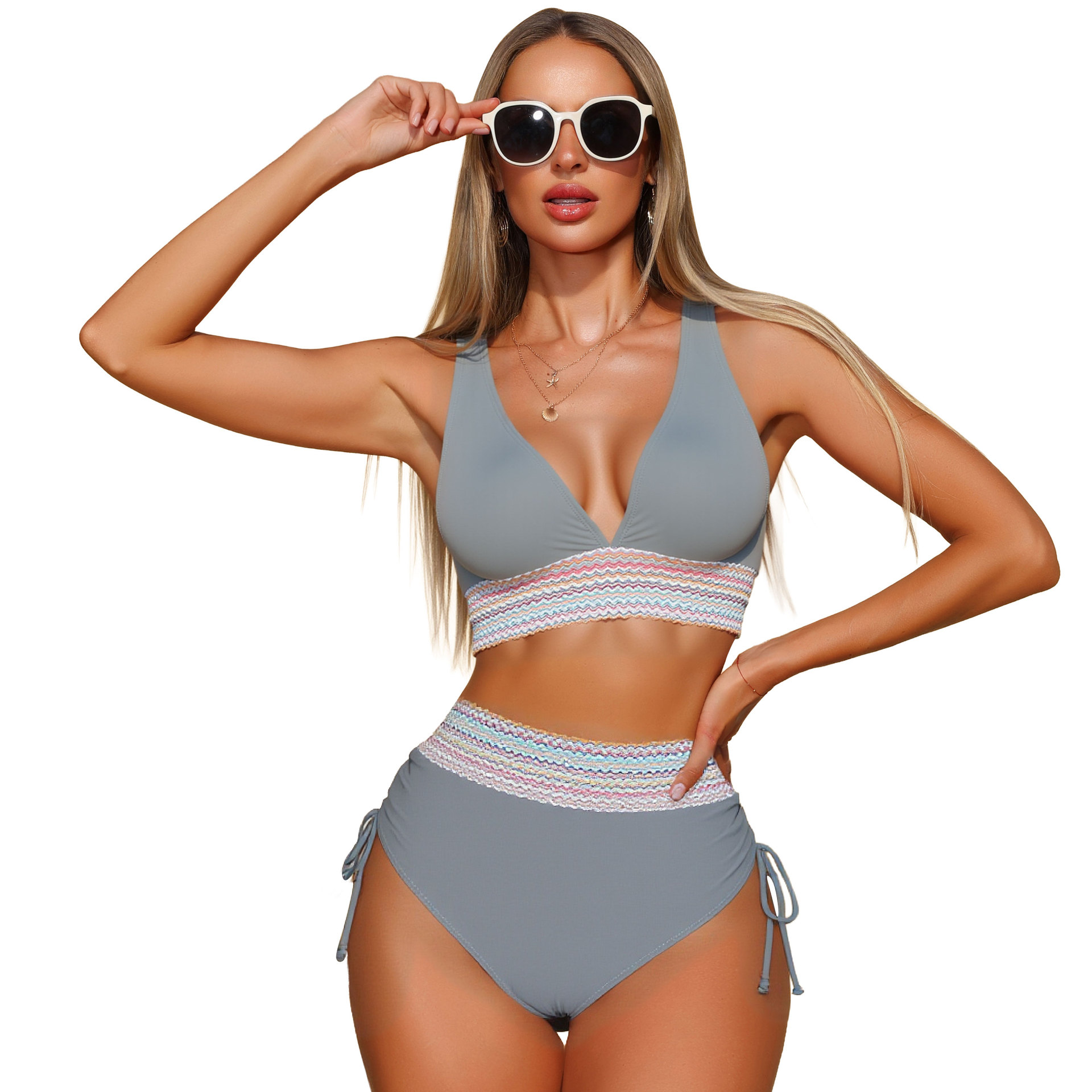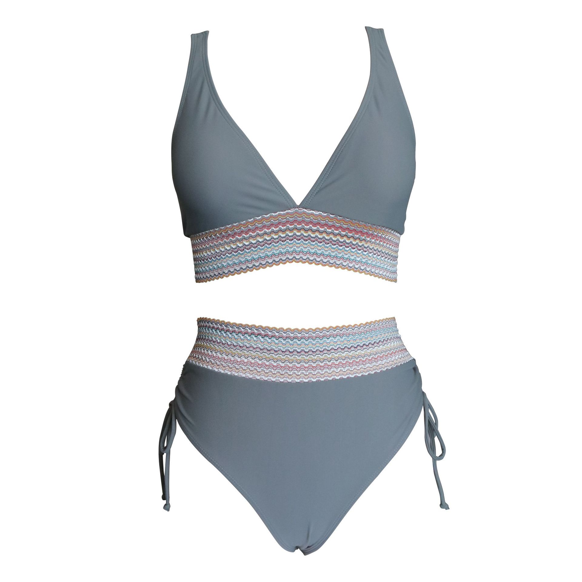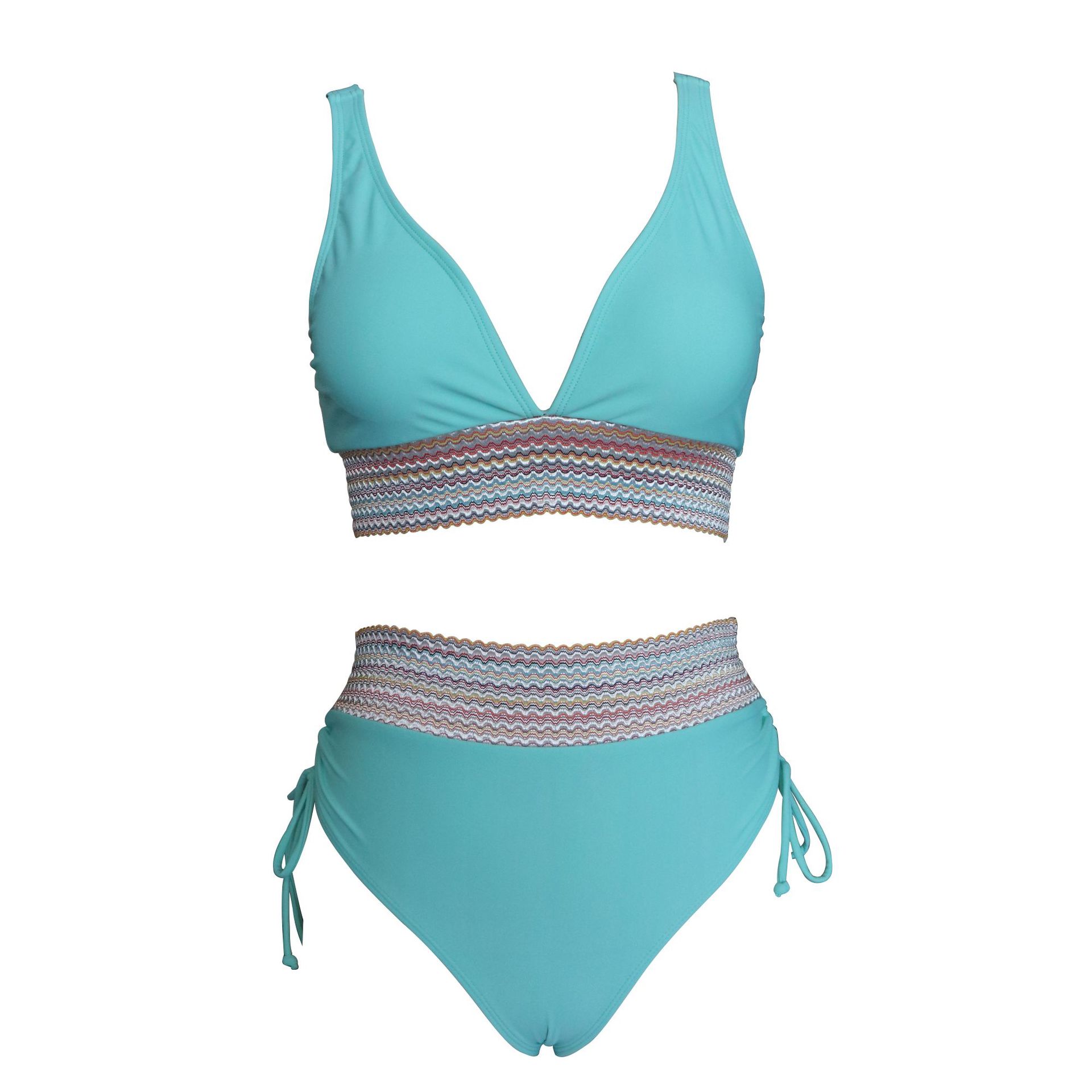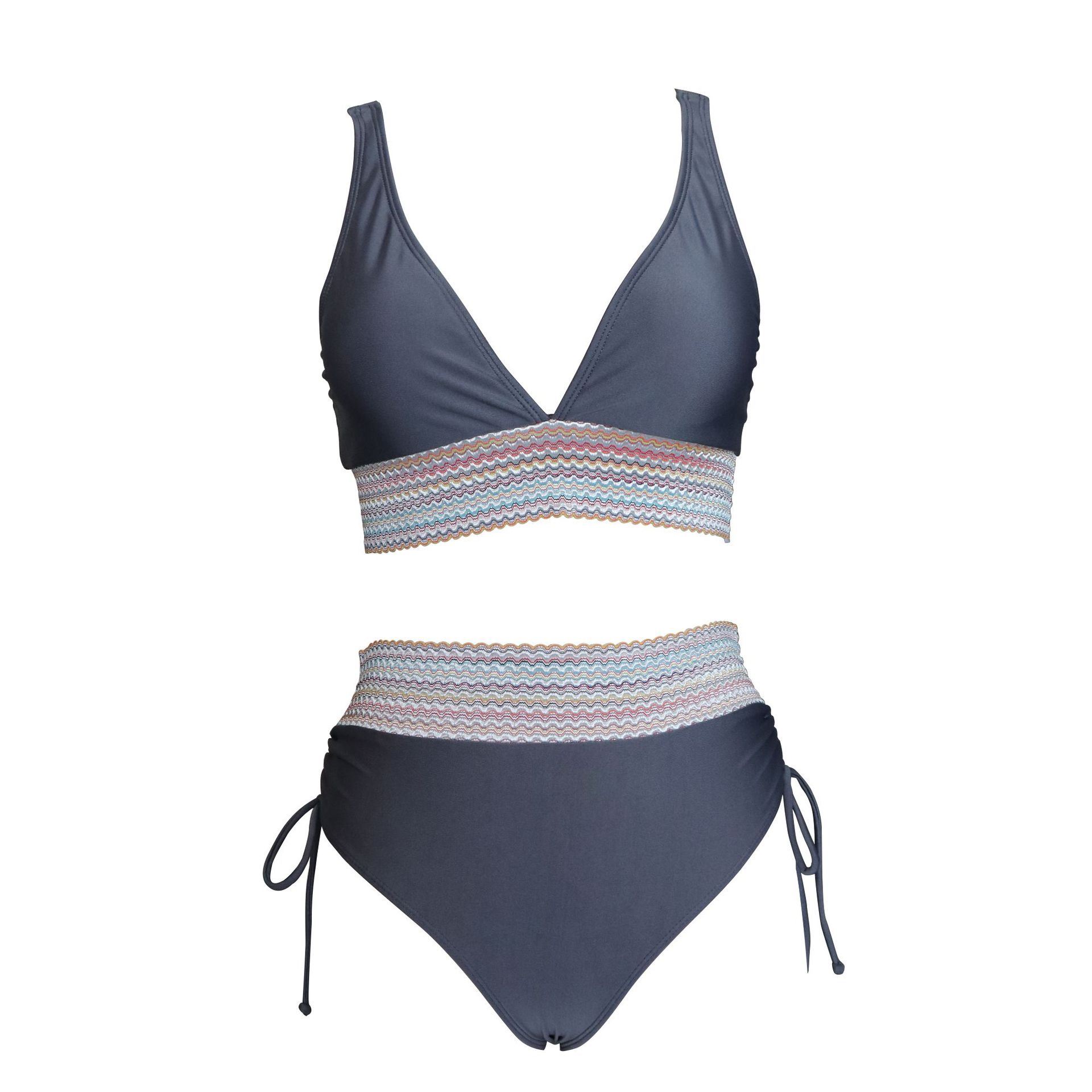 亚马逊欧美外贸新款女士分体泳衣性感比基尼高腰遮肚挂脖紧身泳装