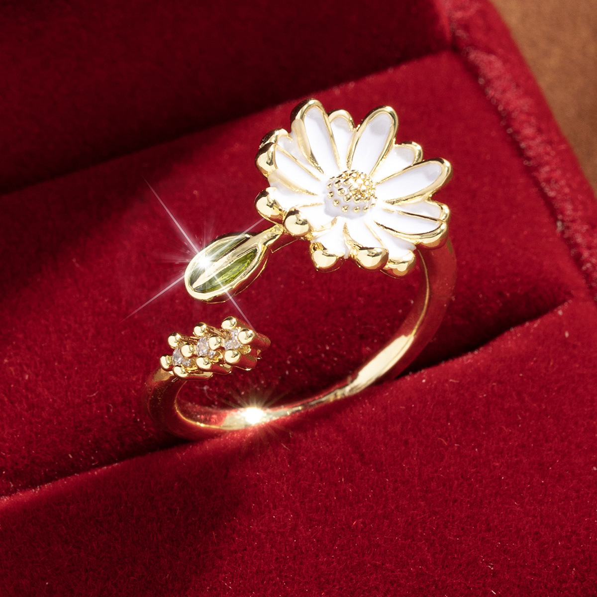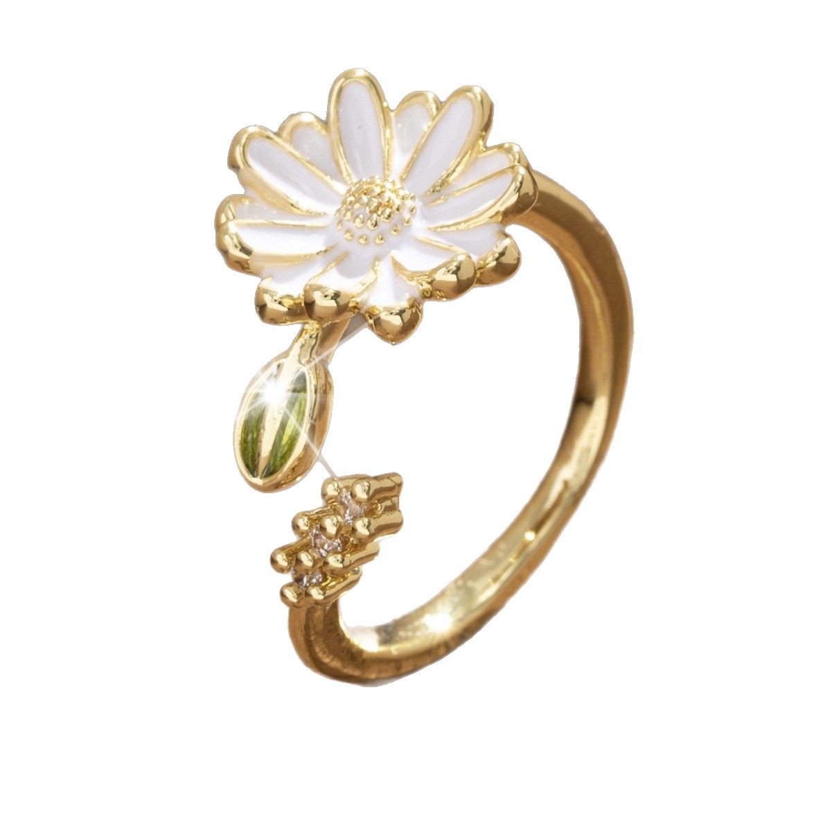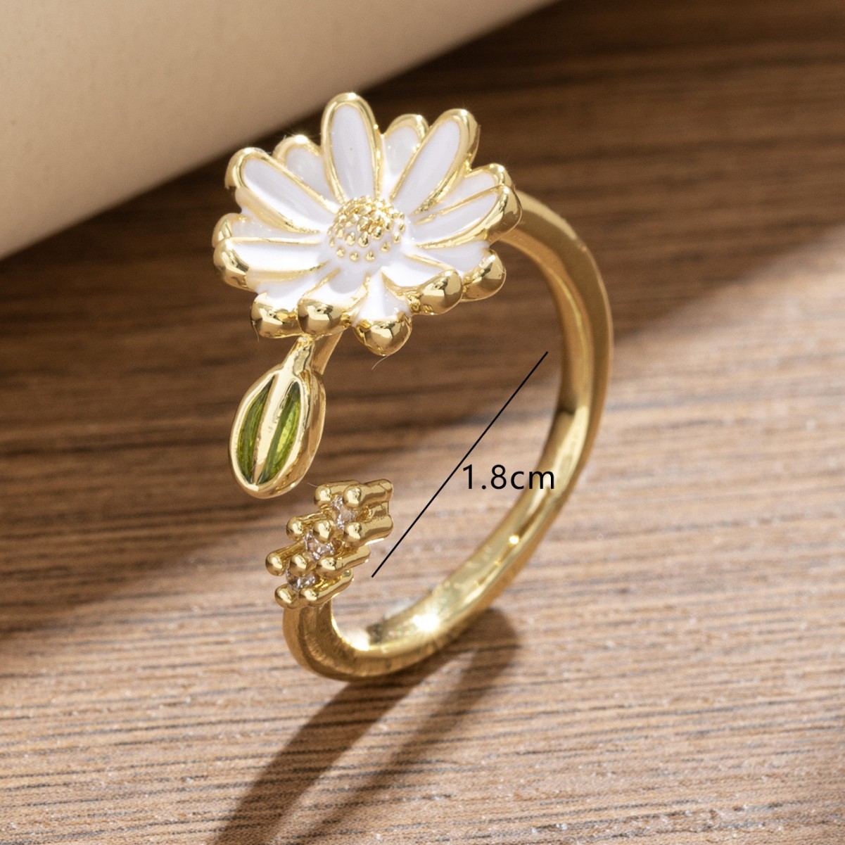 跨境太阳花开口戒指女轻奢百搭向日葵花朵食指戒饰品首饰百搭戒指