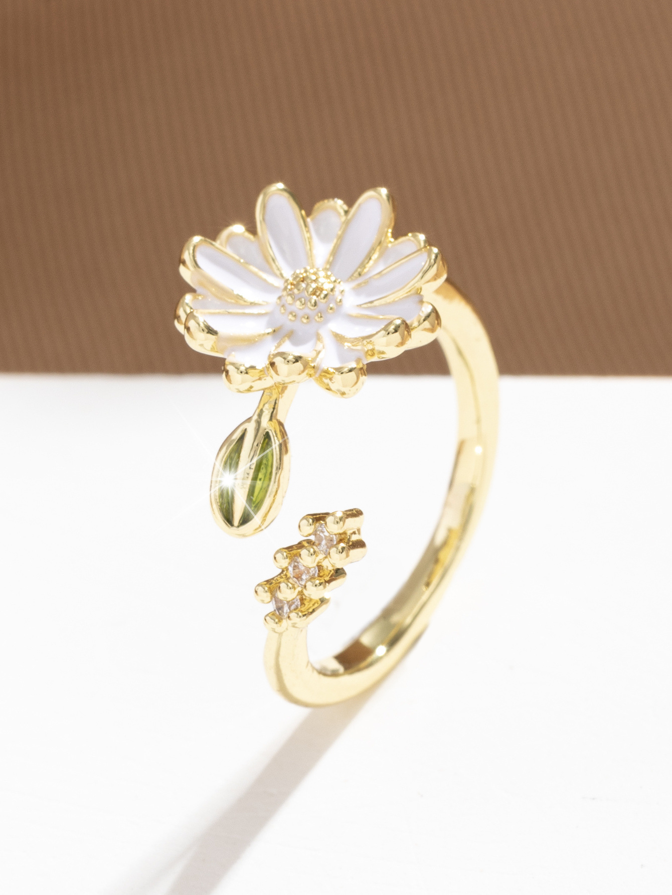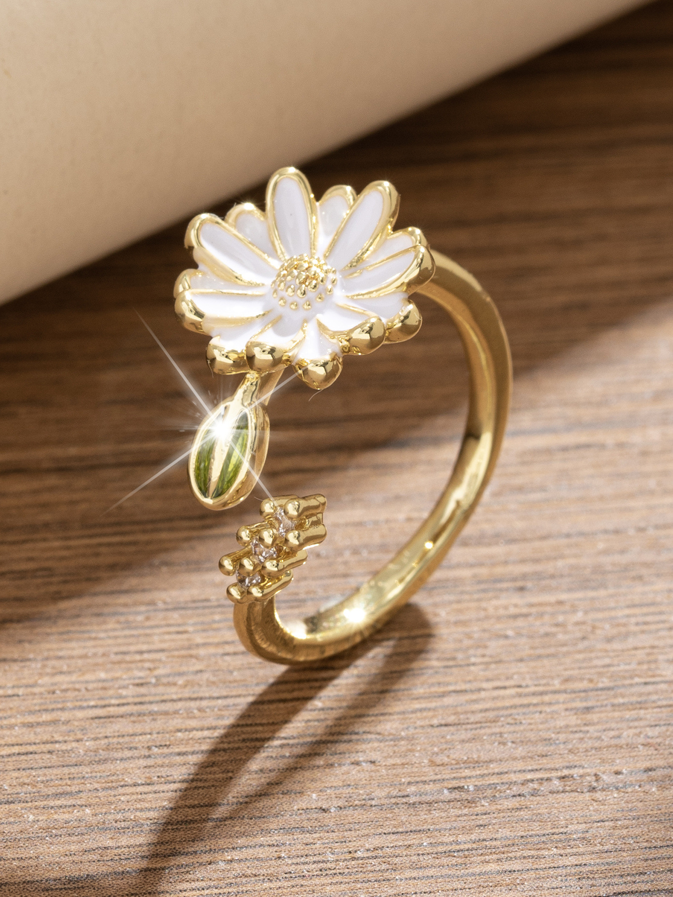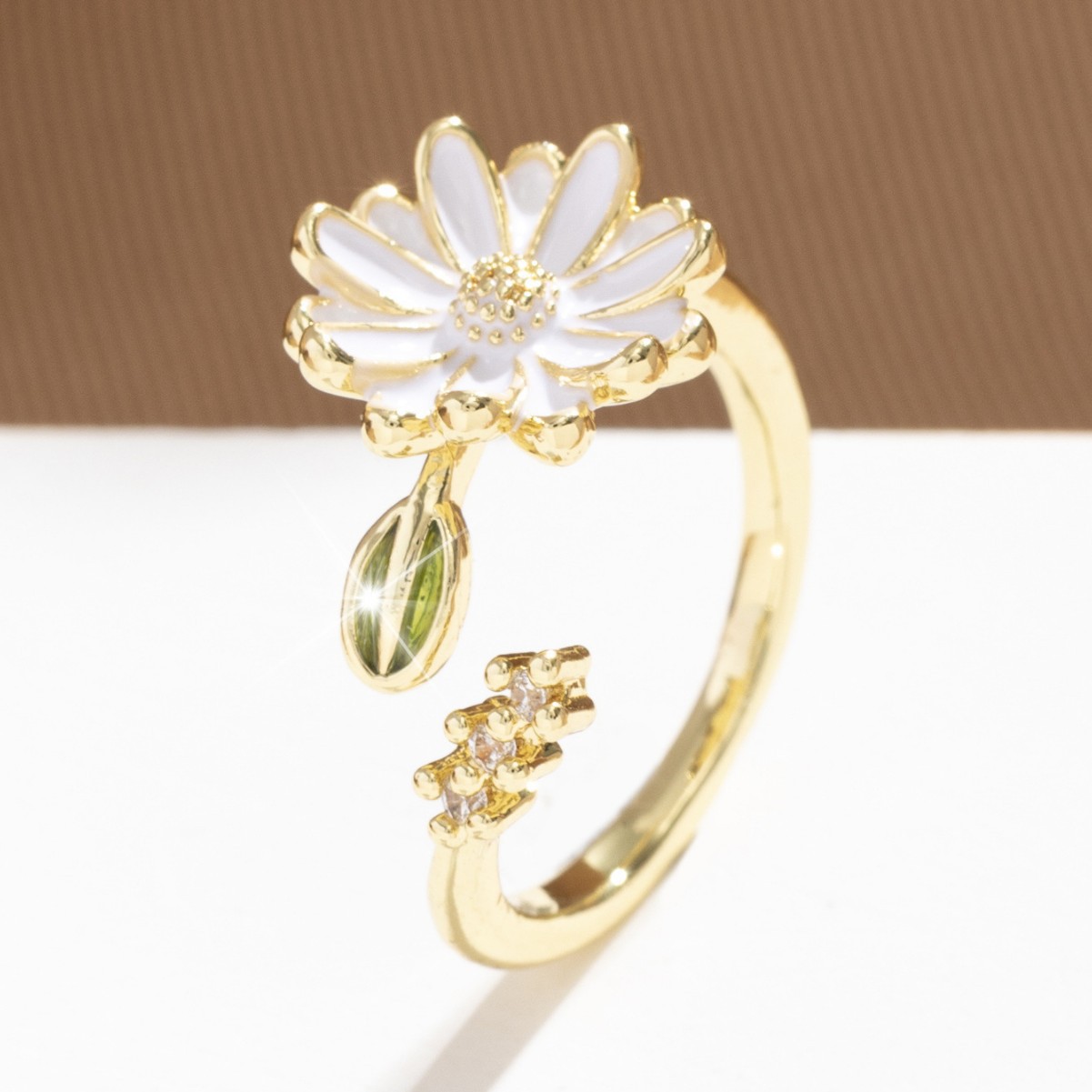 跨境太阳花开口戒指女轻奢百搭向日葵花朵食指戒饰品首饰百搭戒指