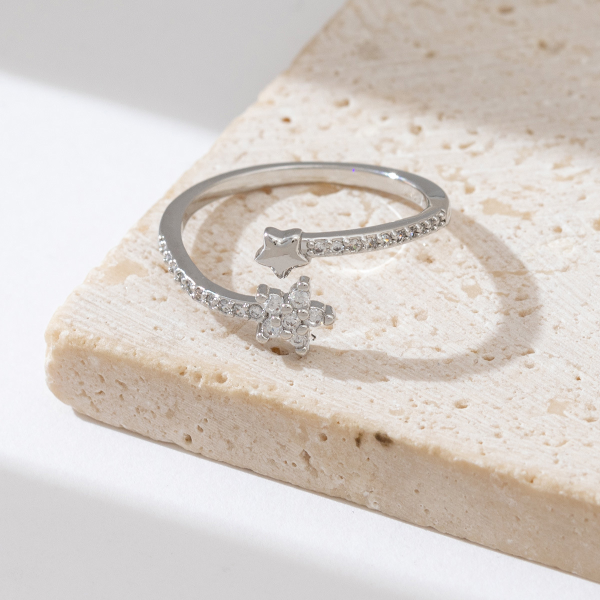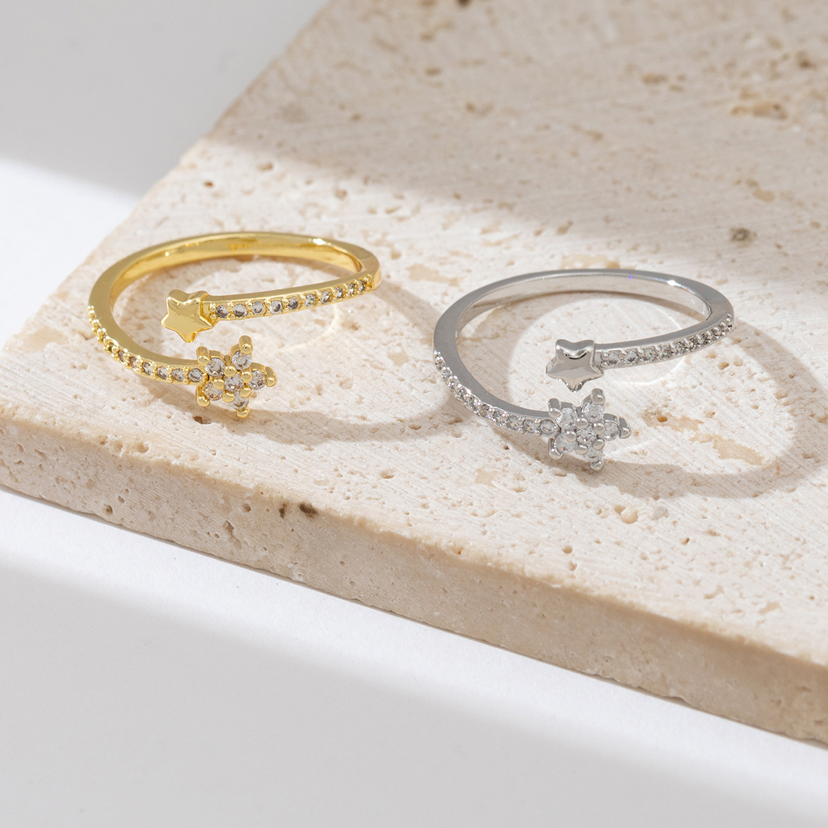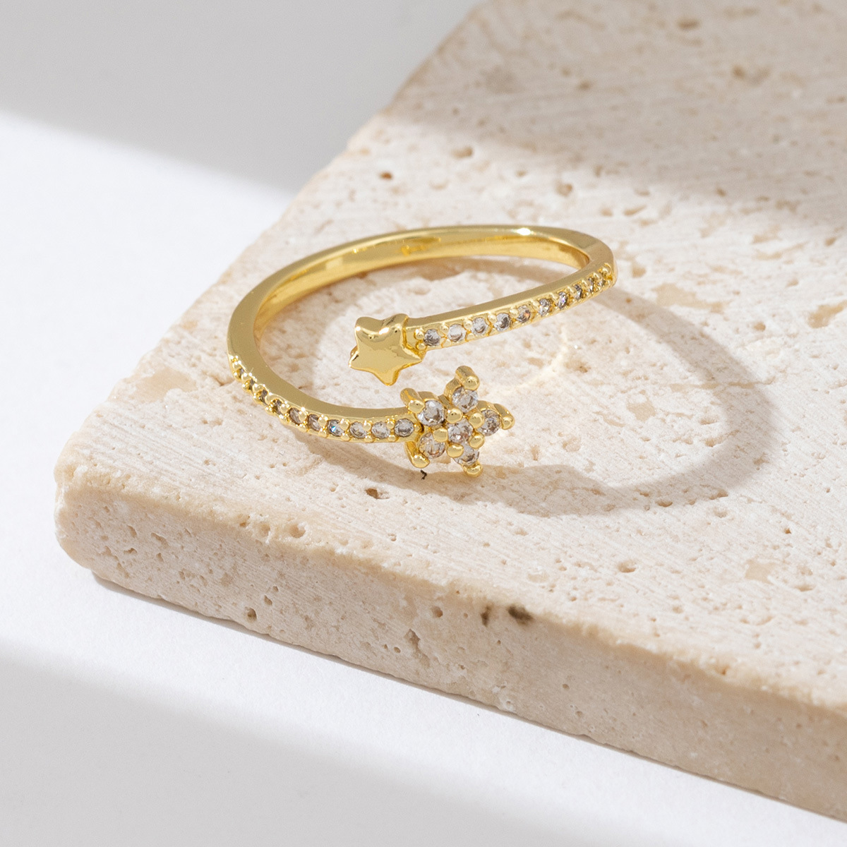 跨境新款可调节戒指圈小花五角星开口女戒金色日韩ins简约风戒指