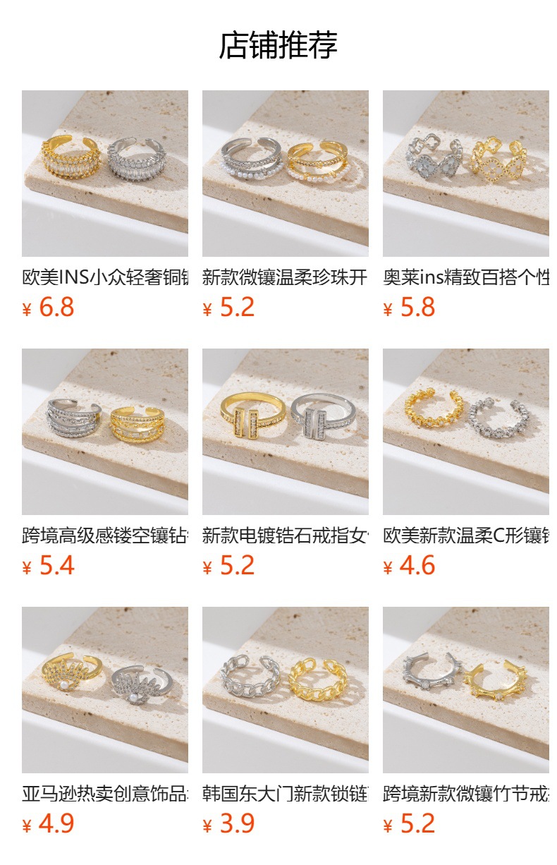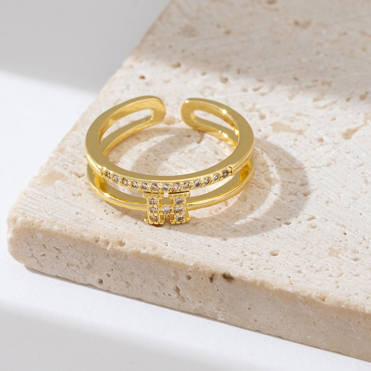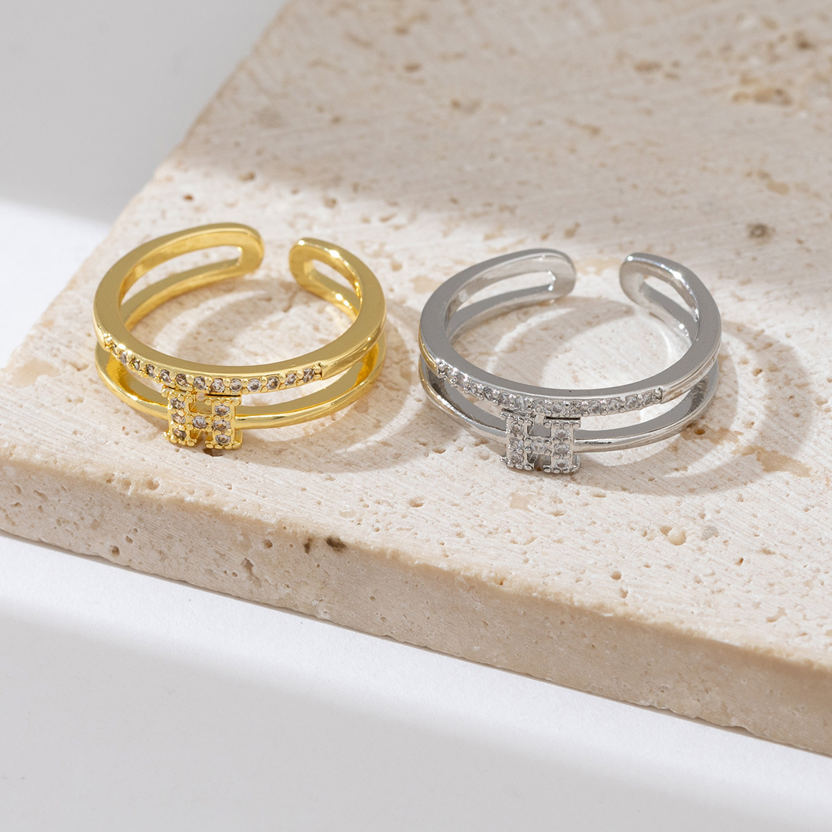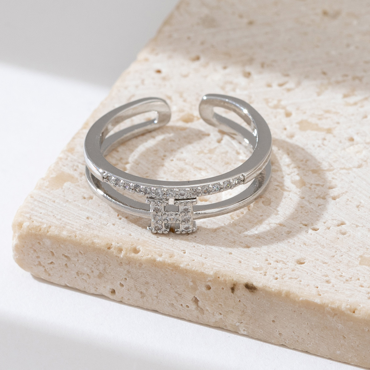 韩版时尚H字母微镶钻设计感戒指潮人百搭跨境气质小众高级感戒指