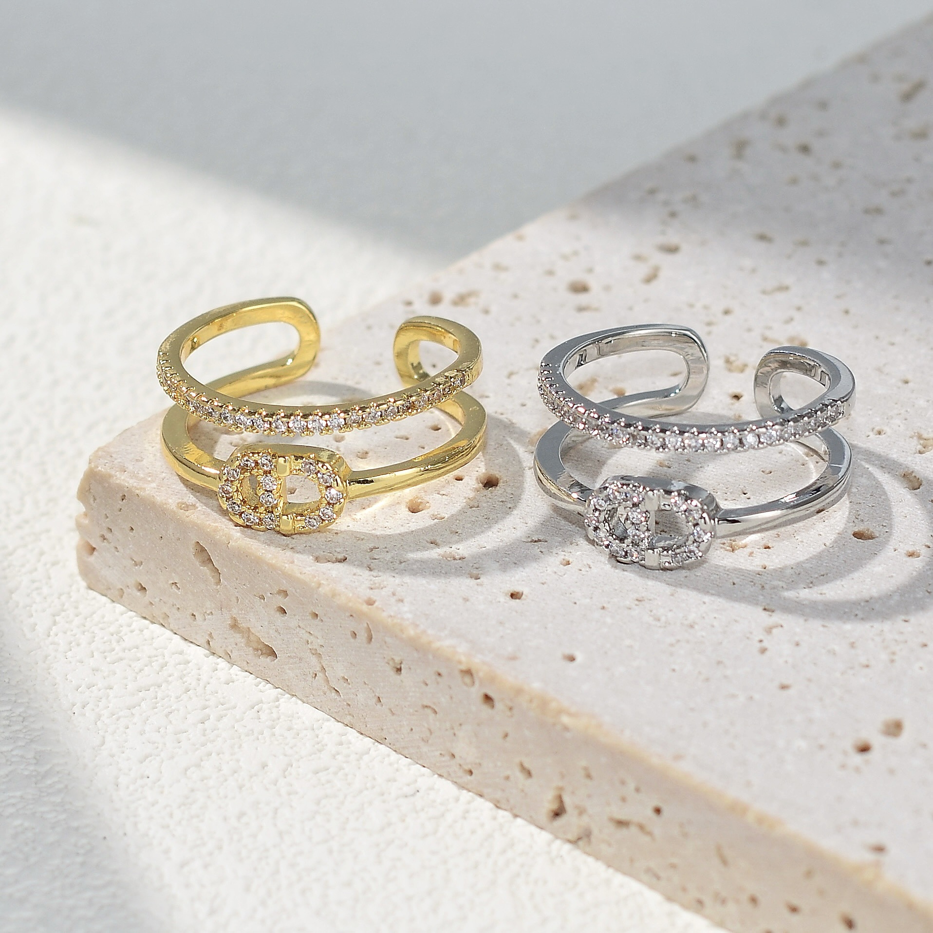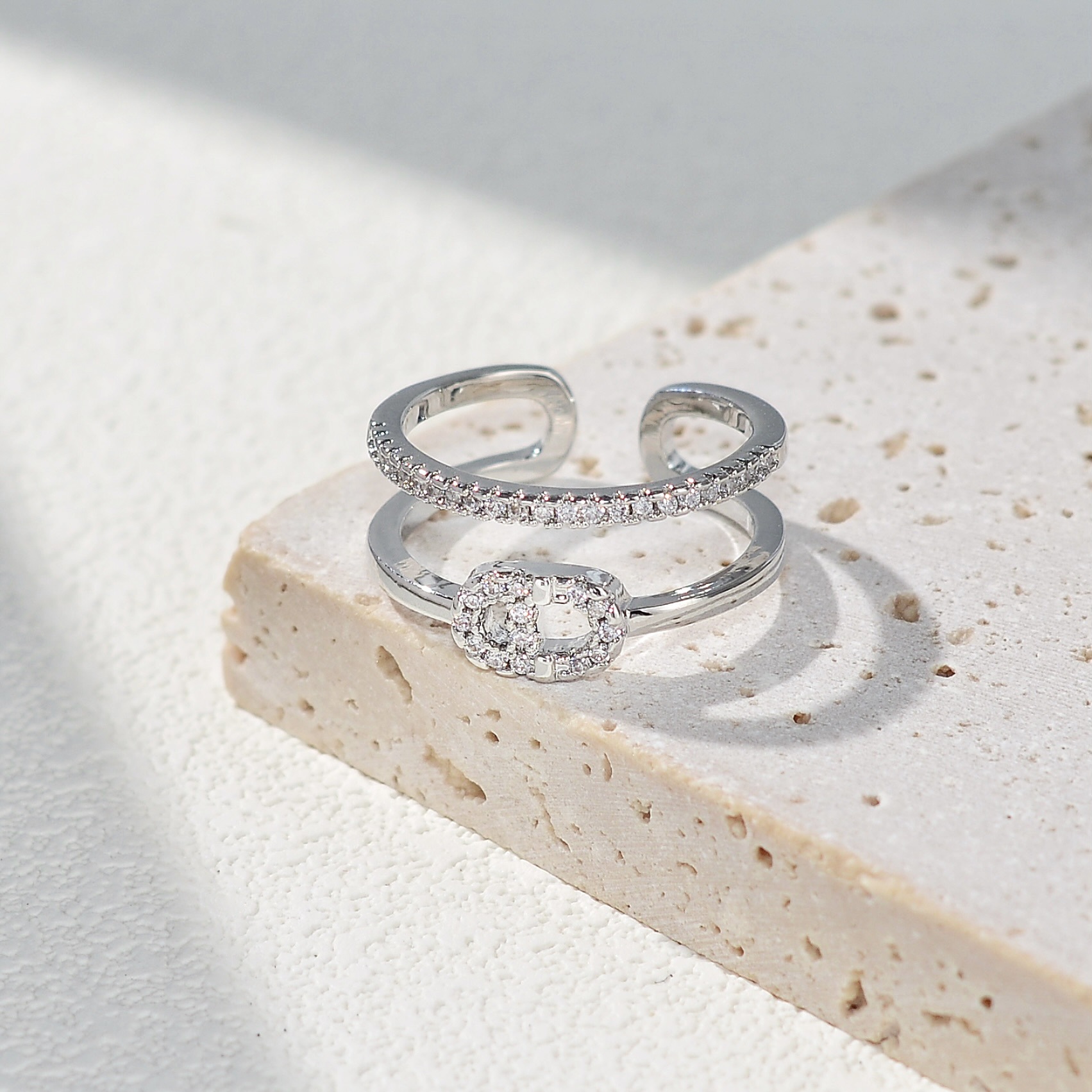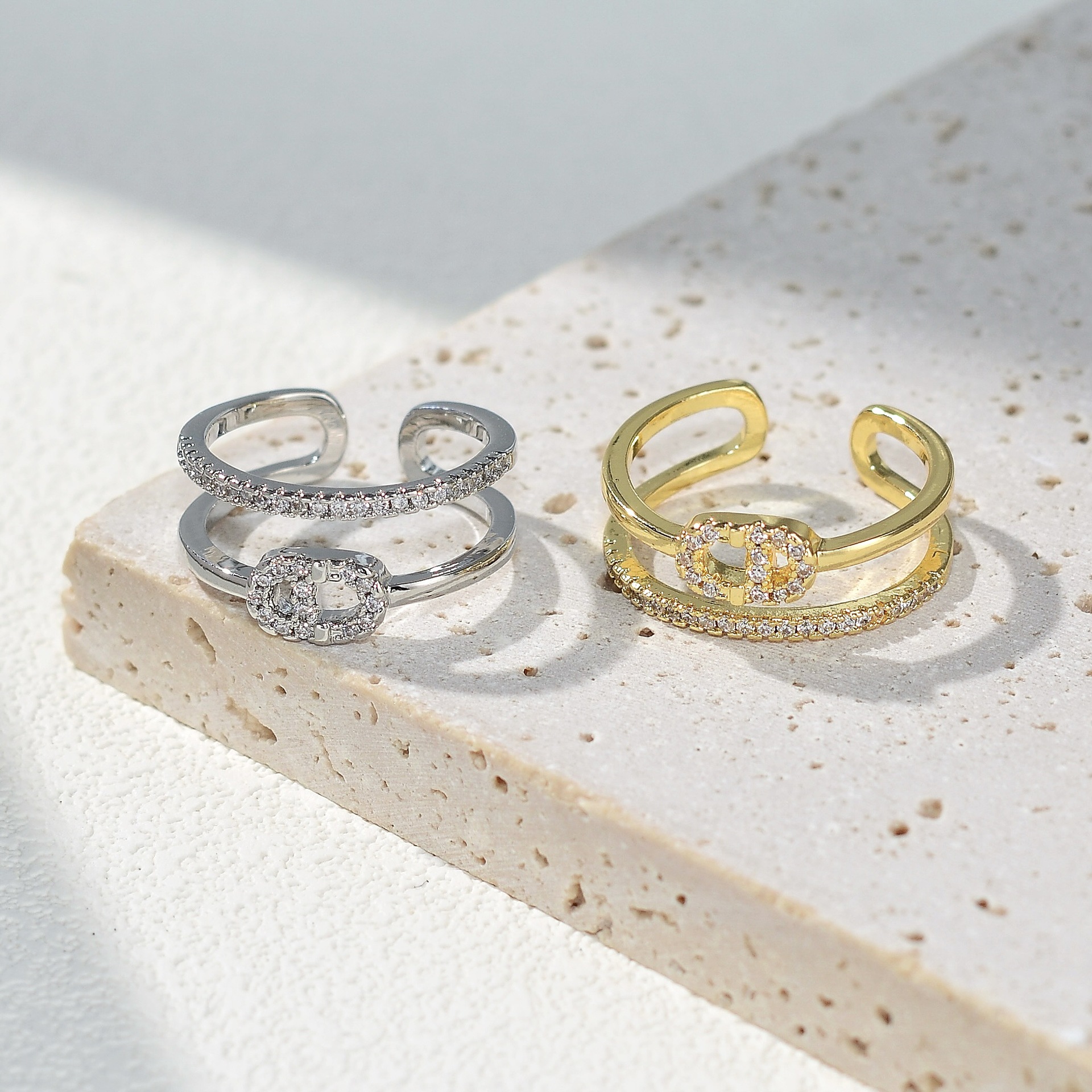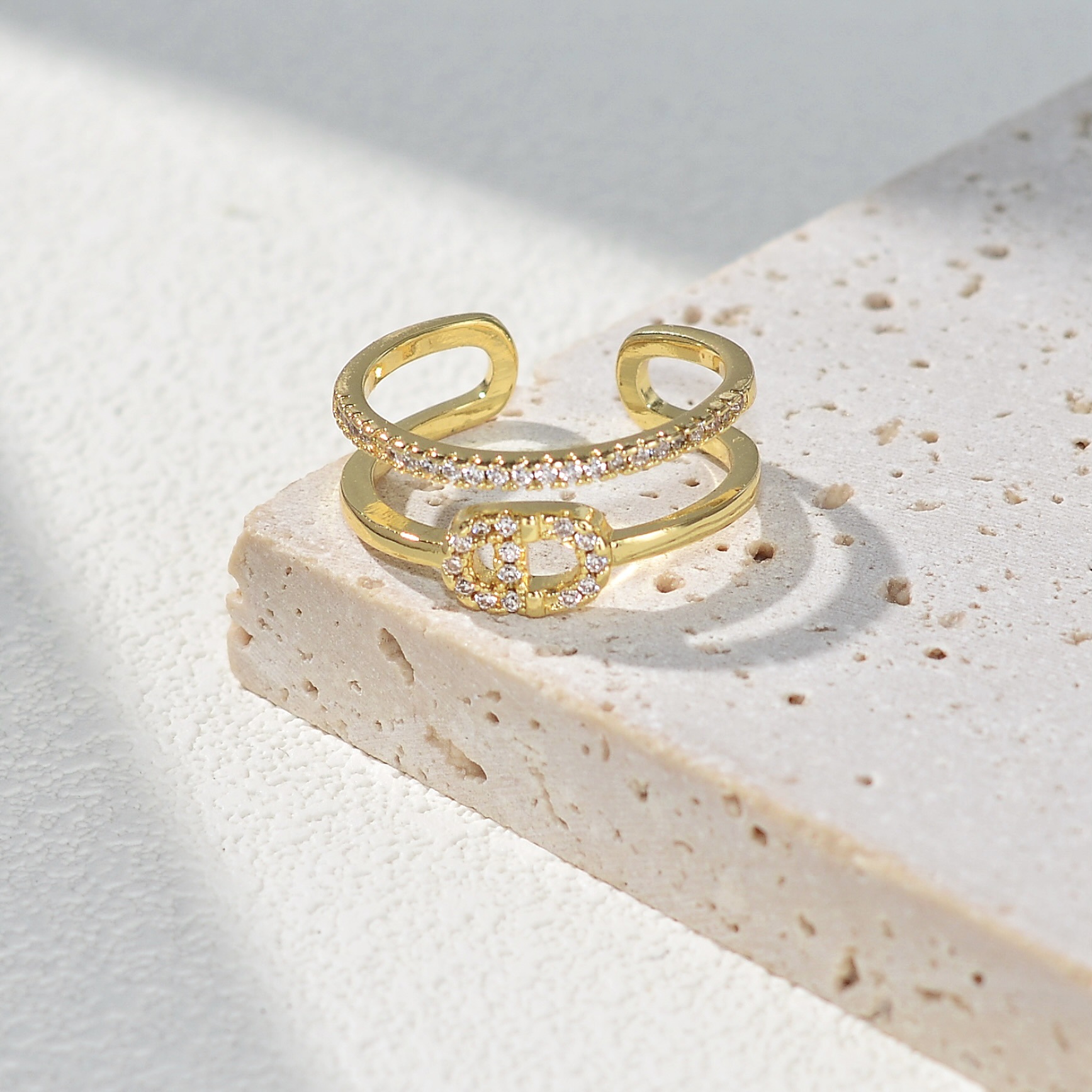 欧美高级感轻奢微镶锆石戒指女小众设计精致开口食指戒时尚指环潮