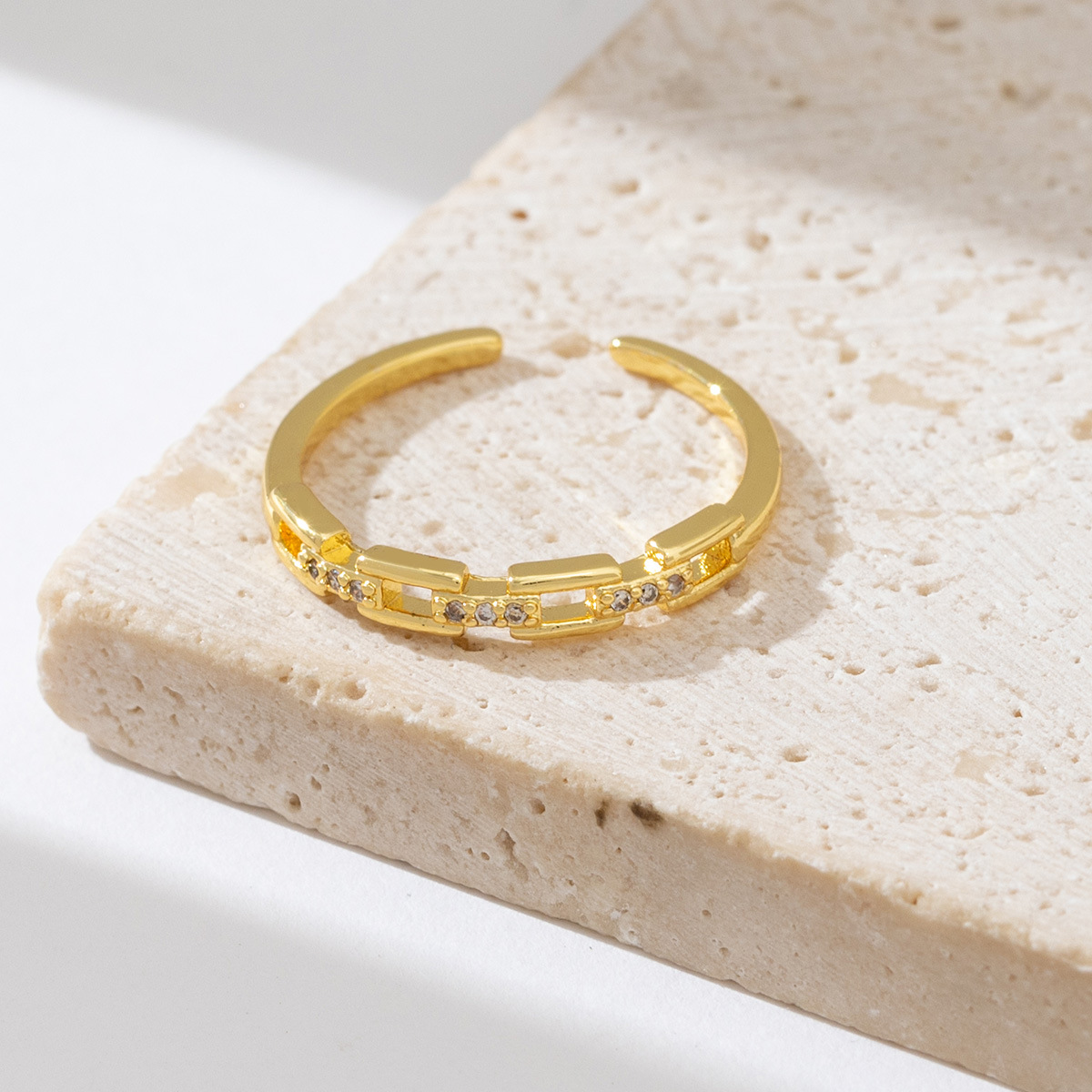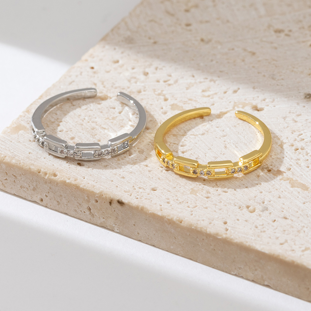 跨境镂空ins风锆石镶钻镀金可调开口戒指女时尚通勤指环饰品厂家