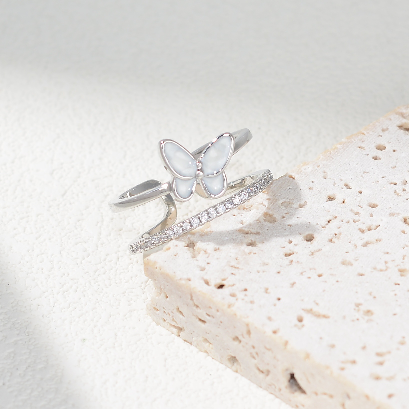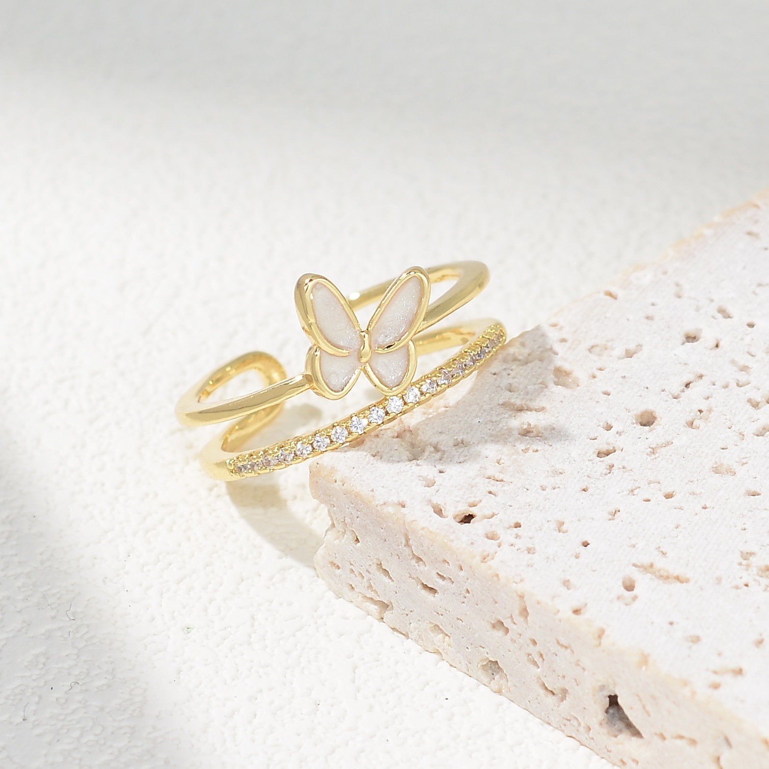 跨境欧美时尚新款微镶锆石蝴蝶戒指小众高级感爆款轻奢高级指环女