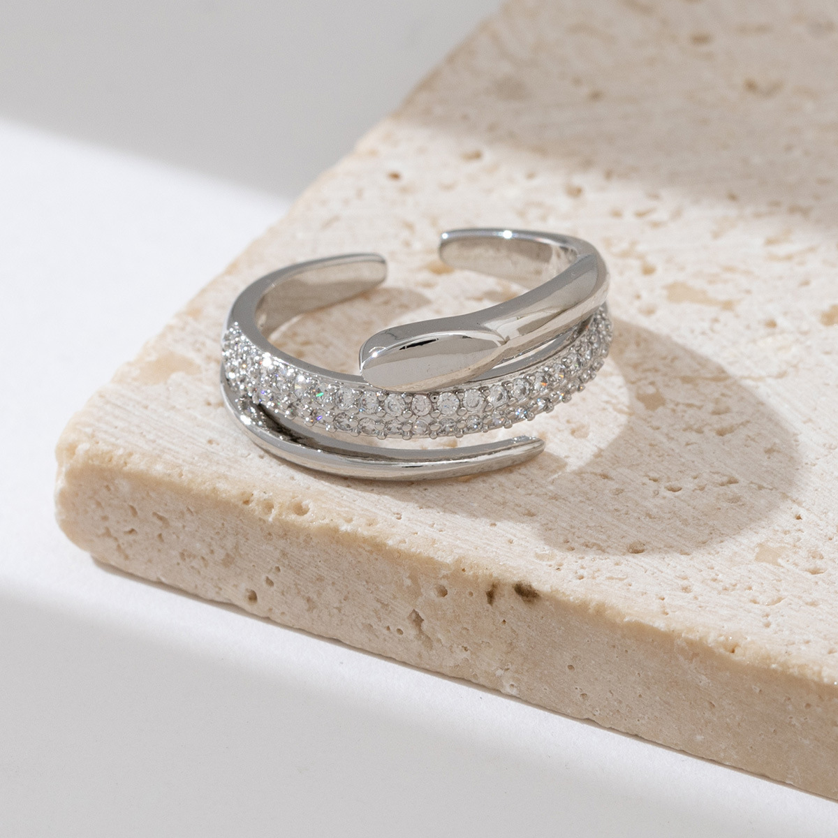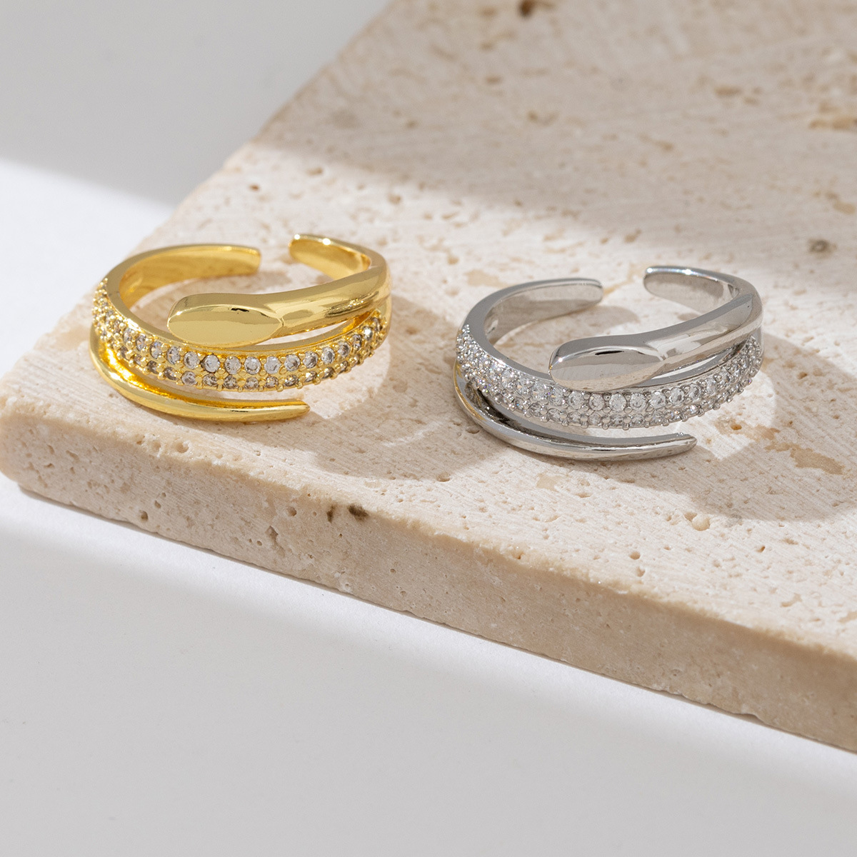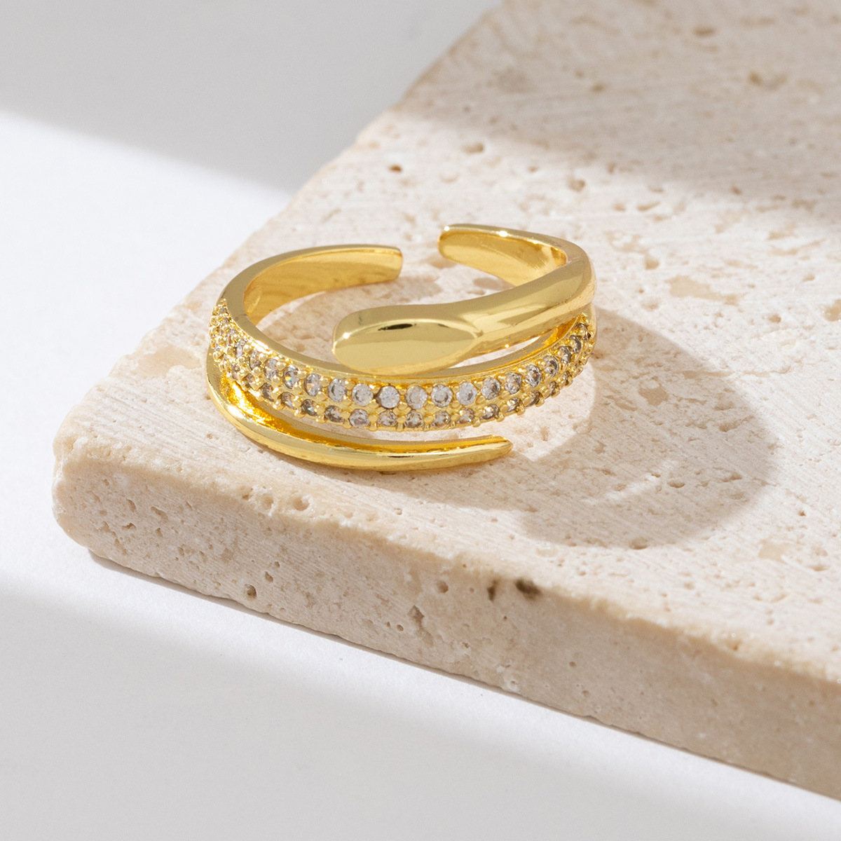 尚易新款韩版个性气质多层环绕镶钻线条气质小众创意开口蛇形戒指