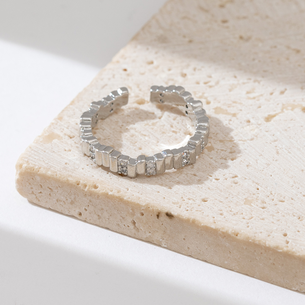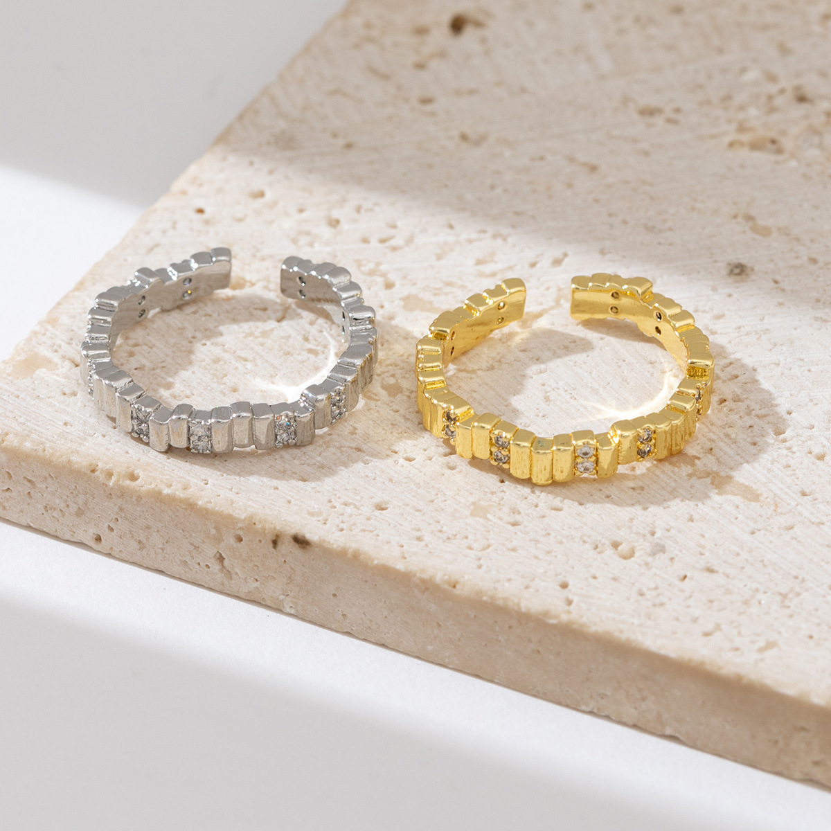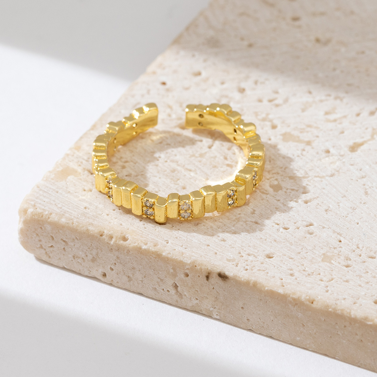 亚马逊跨境新款几何形戒指女铜镀金微镶锆石小众设计冷淡风指环女