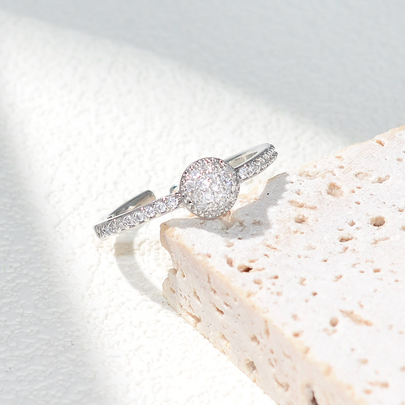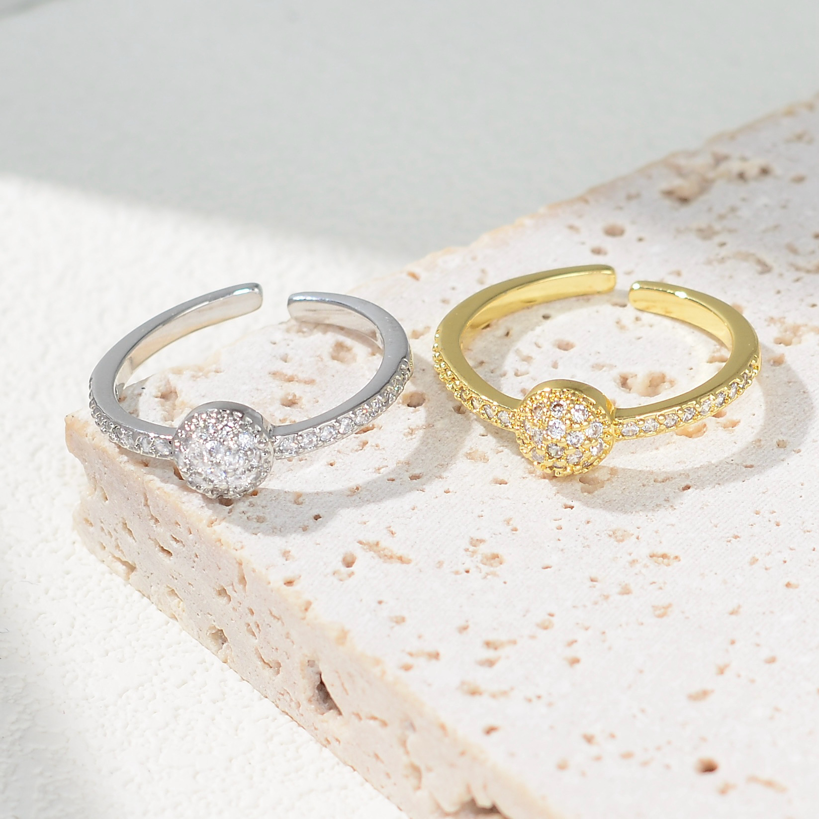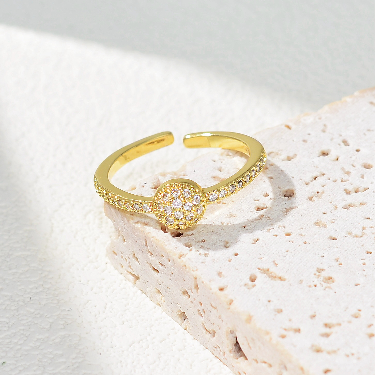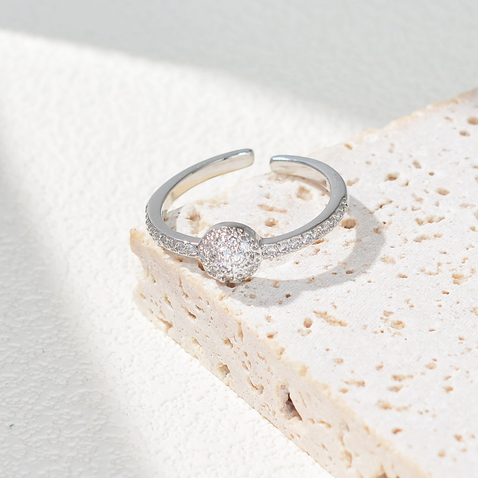轻奢铜镶锆石戒指女气质高级感开口可调节超闪戒子简约网红ins风