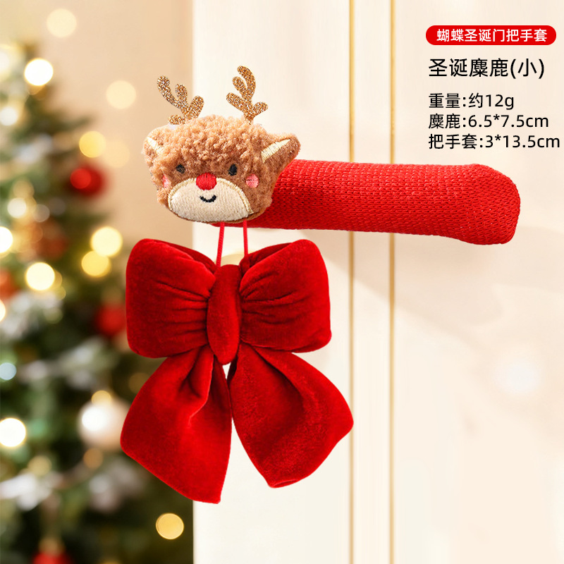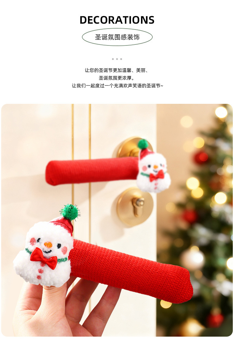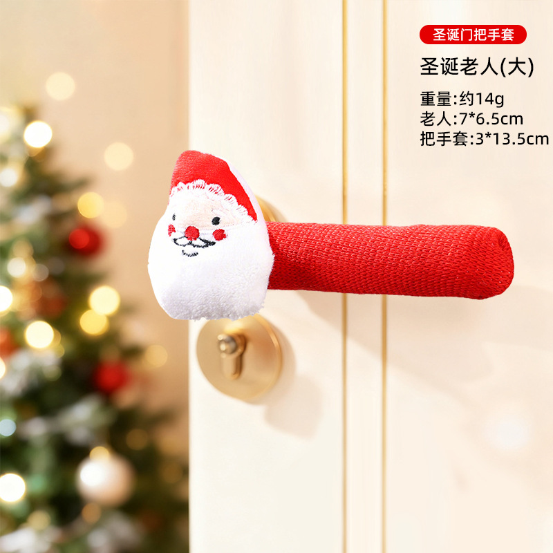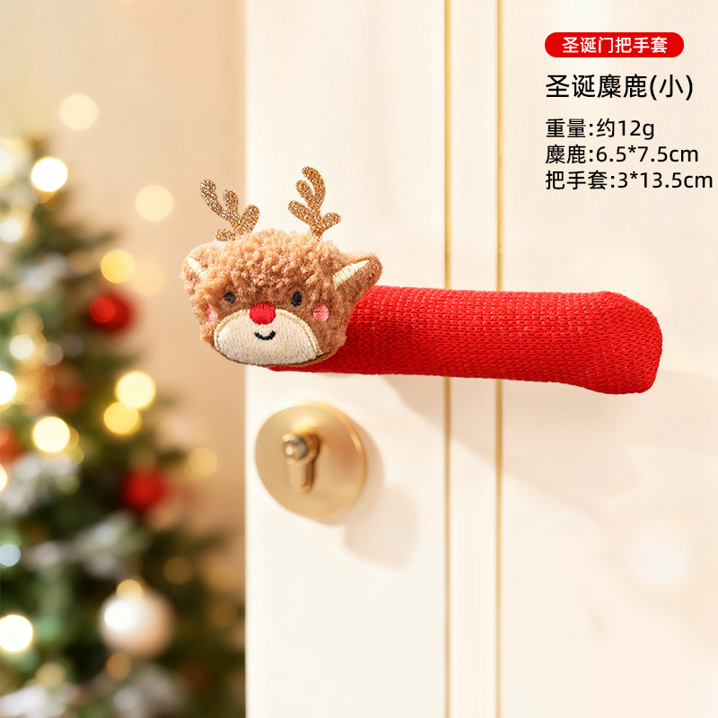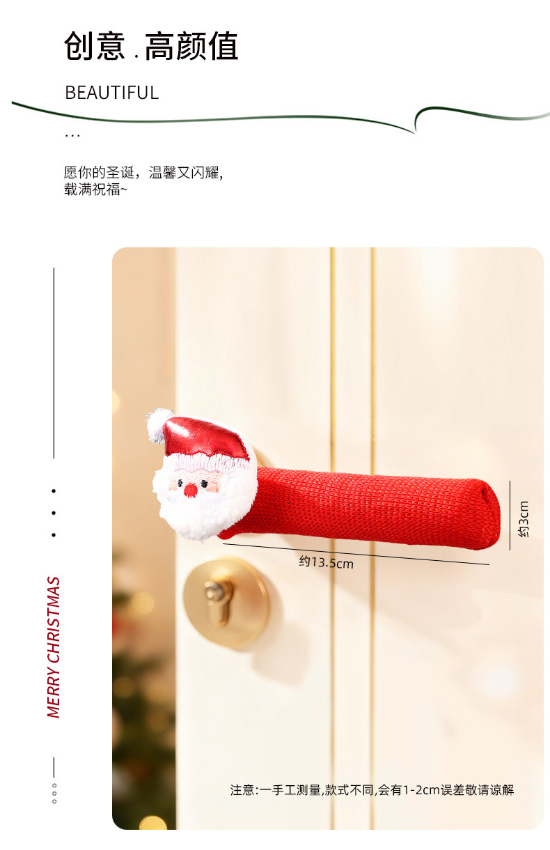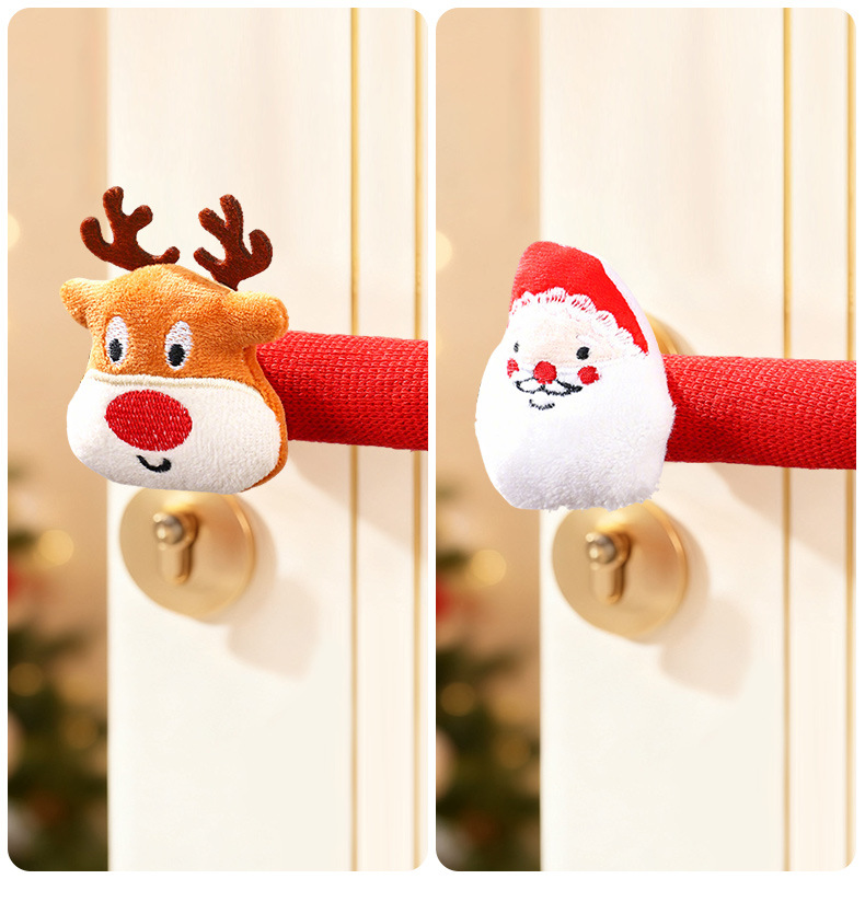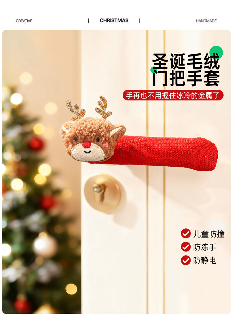 圣诞款可爱毛绒挂件圣诞节装饰卡通小礼物门把手保护套饰品批发