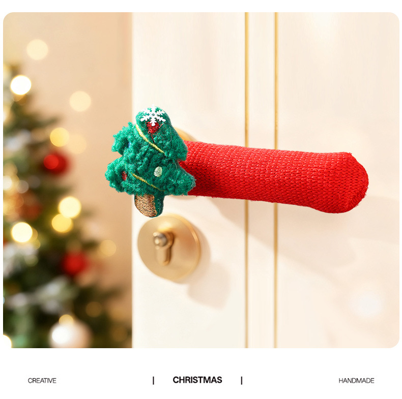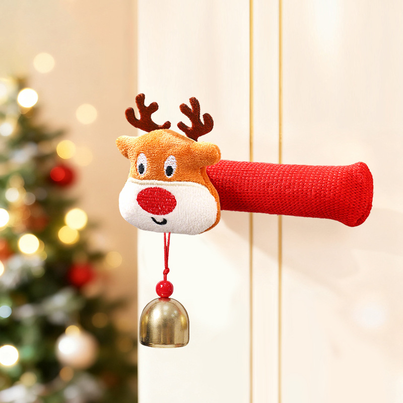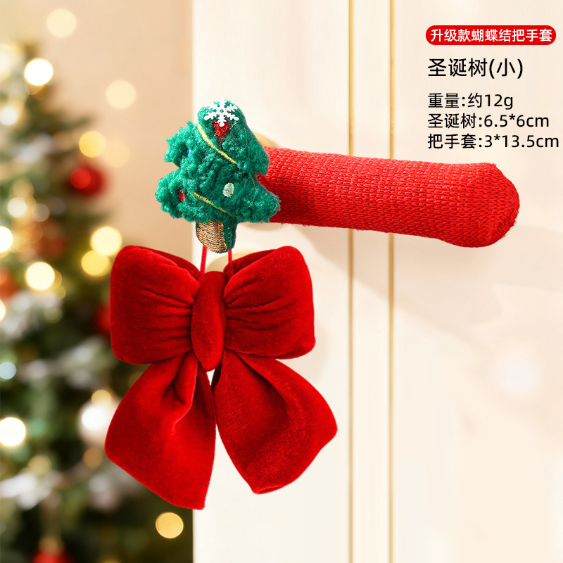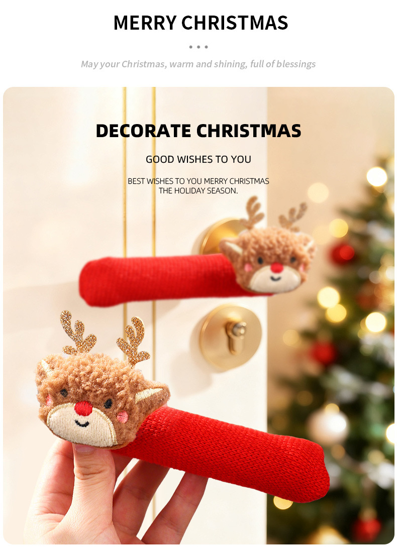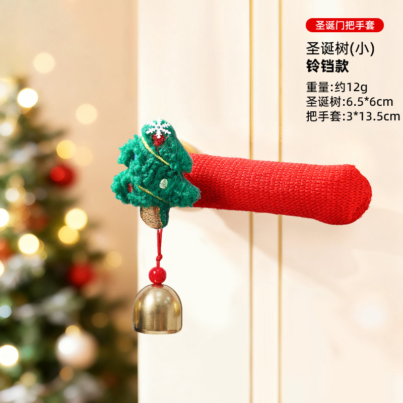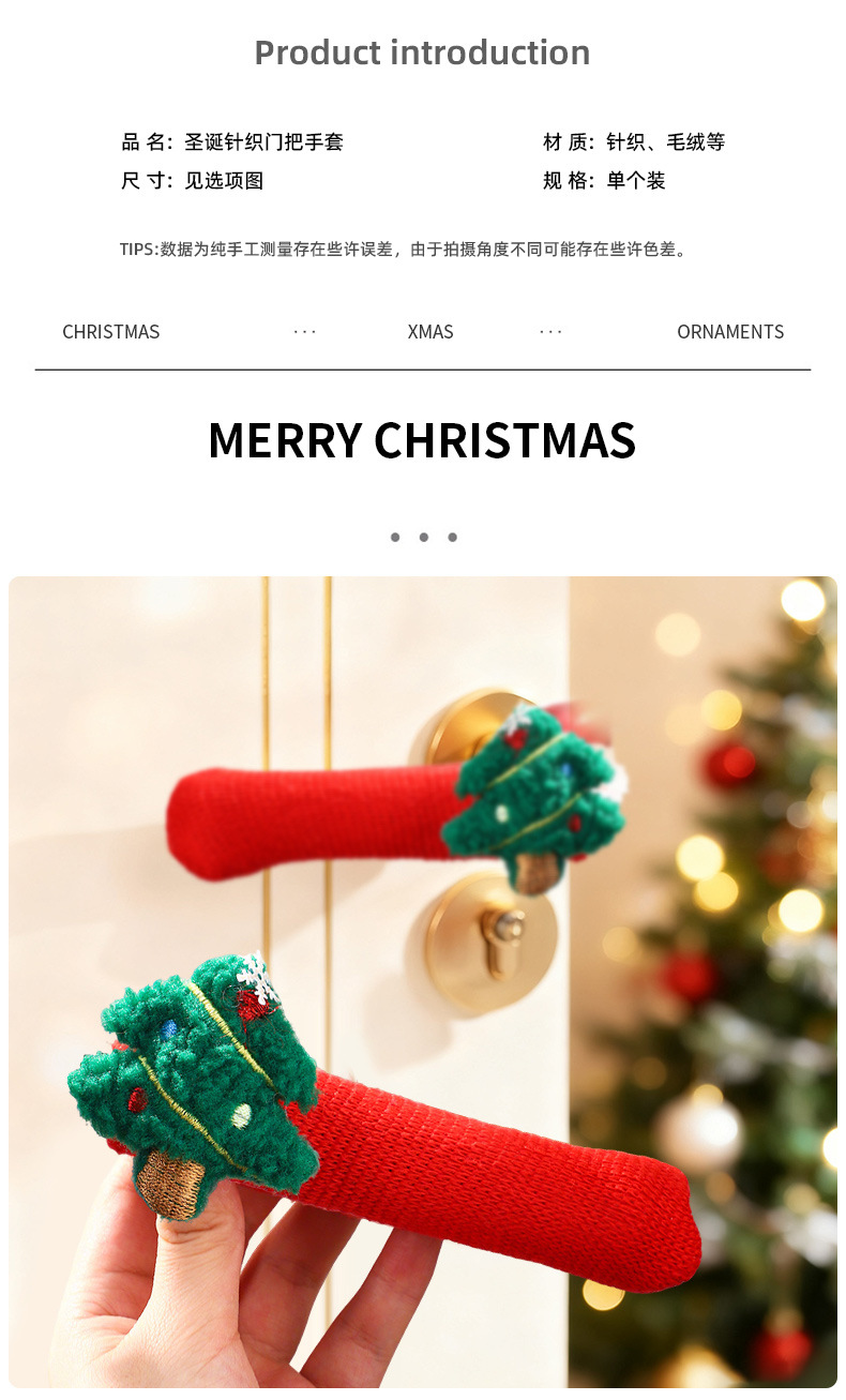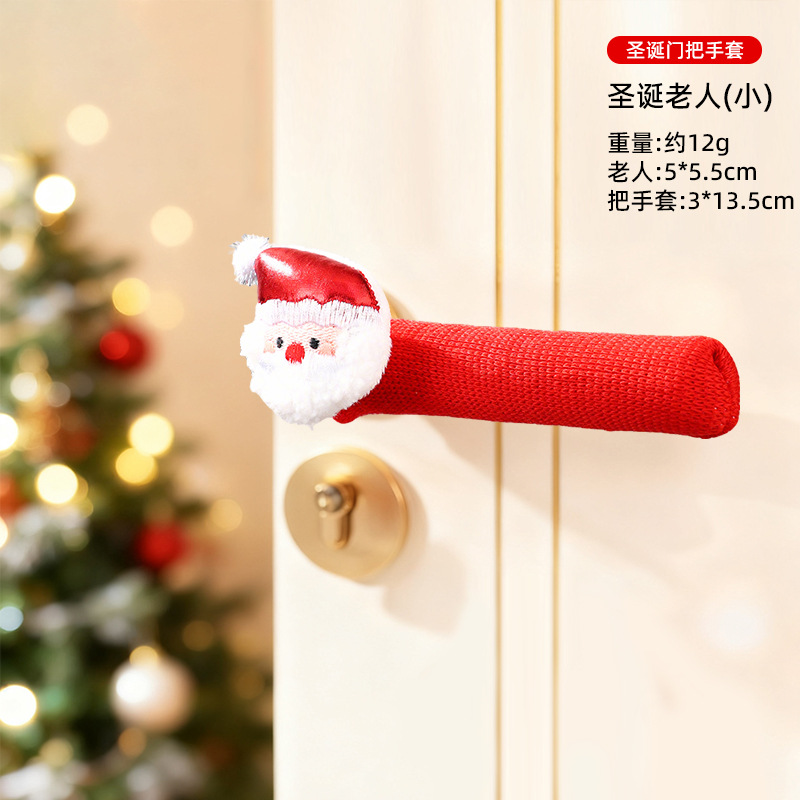 圣诞款可爱毛绒挂件圣诞节装饰卡通小礼物门把手保护套饰品批发