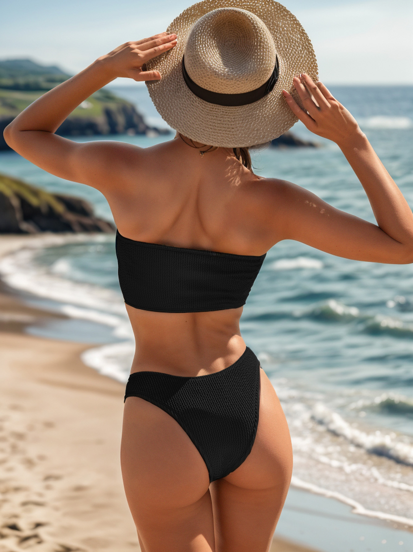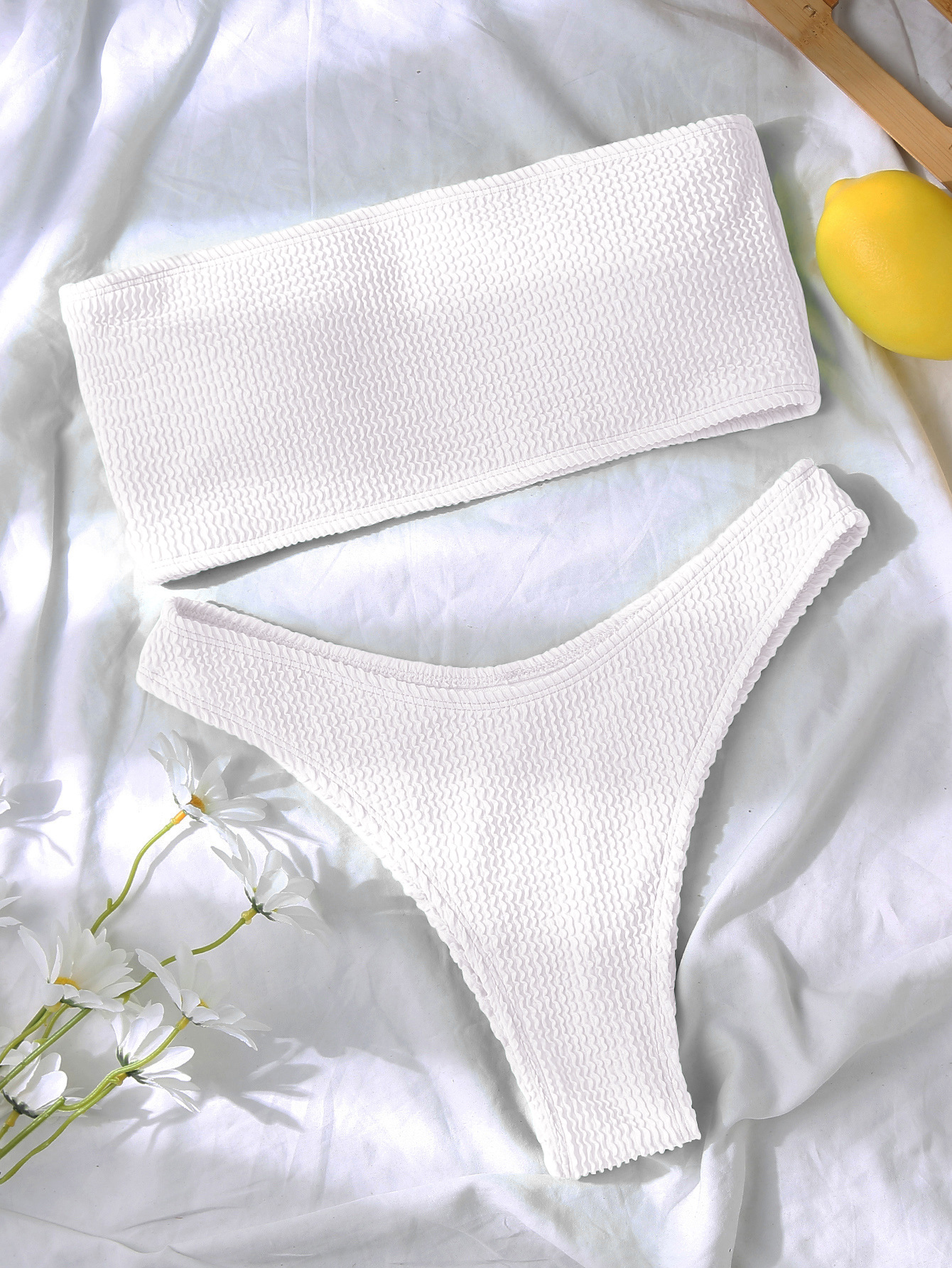 2024新款跨境欧美外贸速卖通蛇仔布抹胸高腰比基尼性感泳衣泳装女