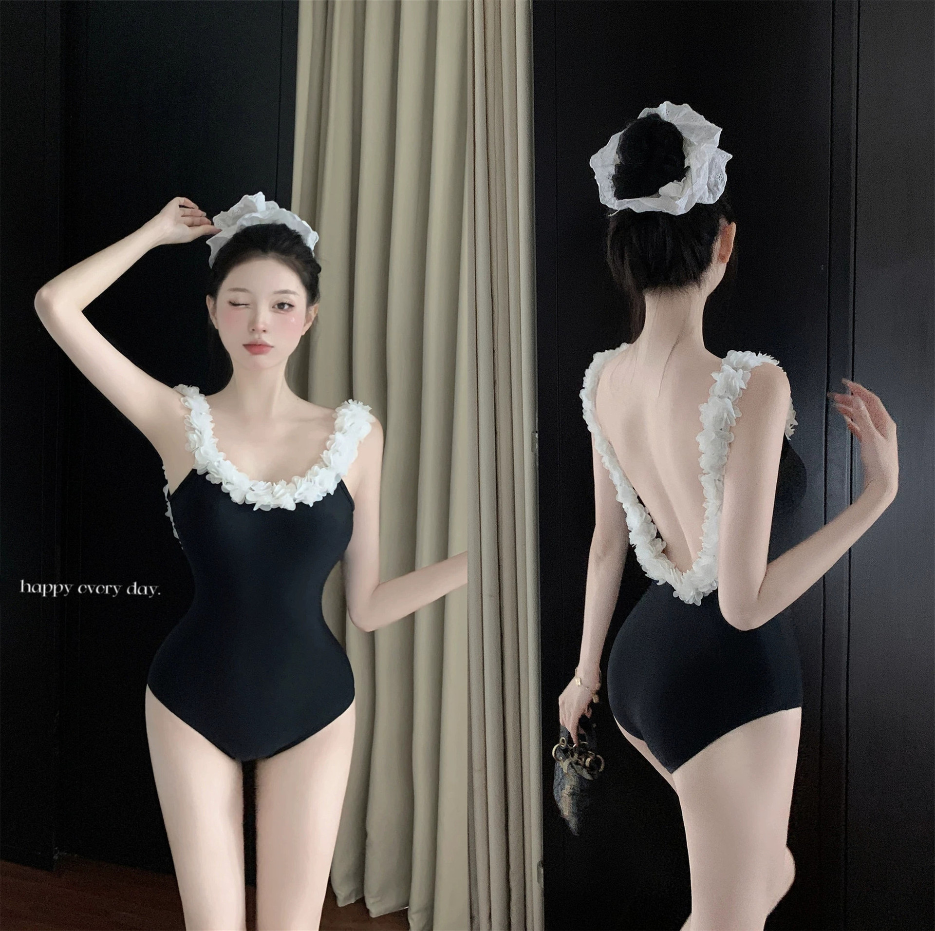 网红辣妹风连体泳衣露背网红夏季新款甜美性感度假泳装泡温泉ins