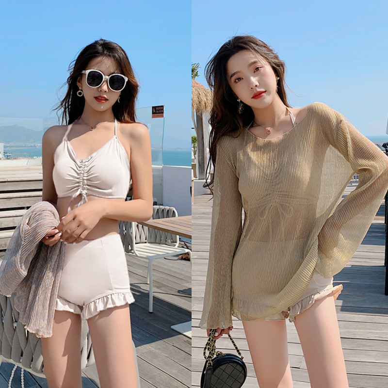 2025泳衣女韩国ins性感显瘦遮肚分体比基尼bikini三件套长袖泳装