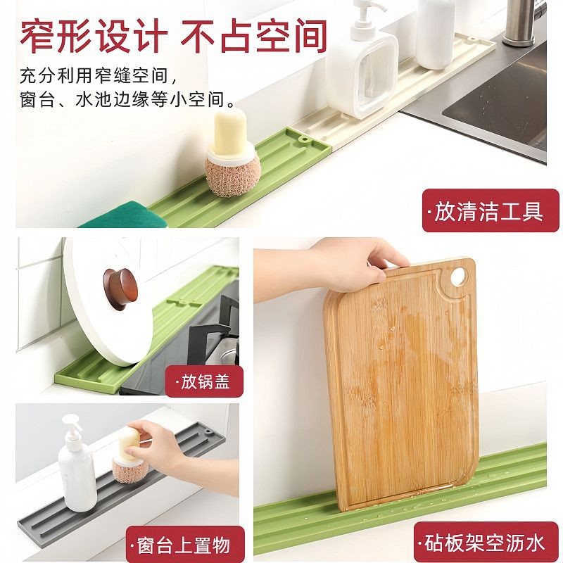 窄缝硅胶沥水垫厨房洗碗池接水垫调料瓶收纳垫防滑垫灶台锅壁饰