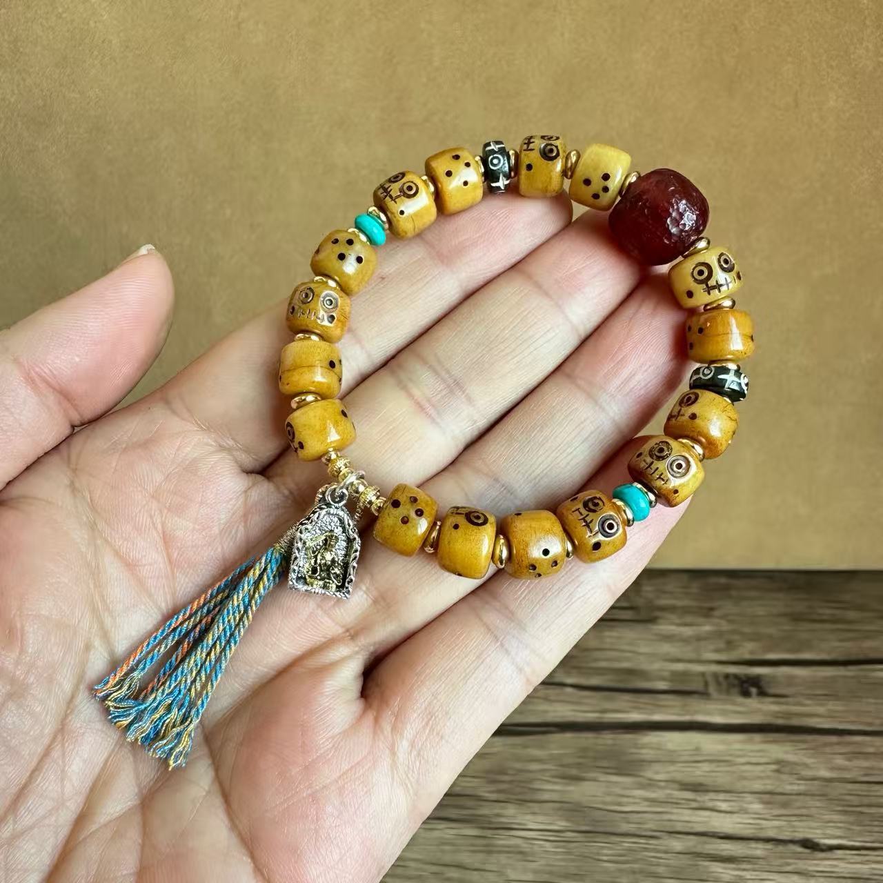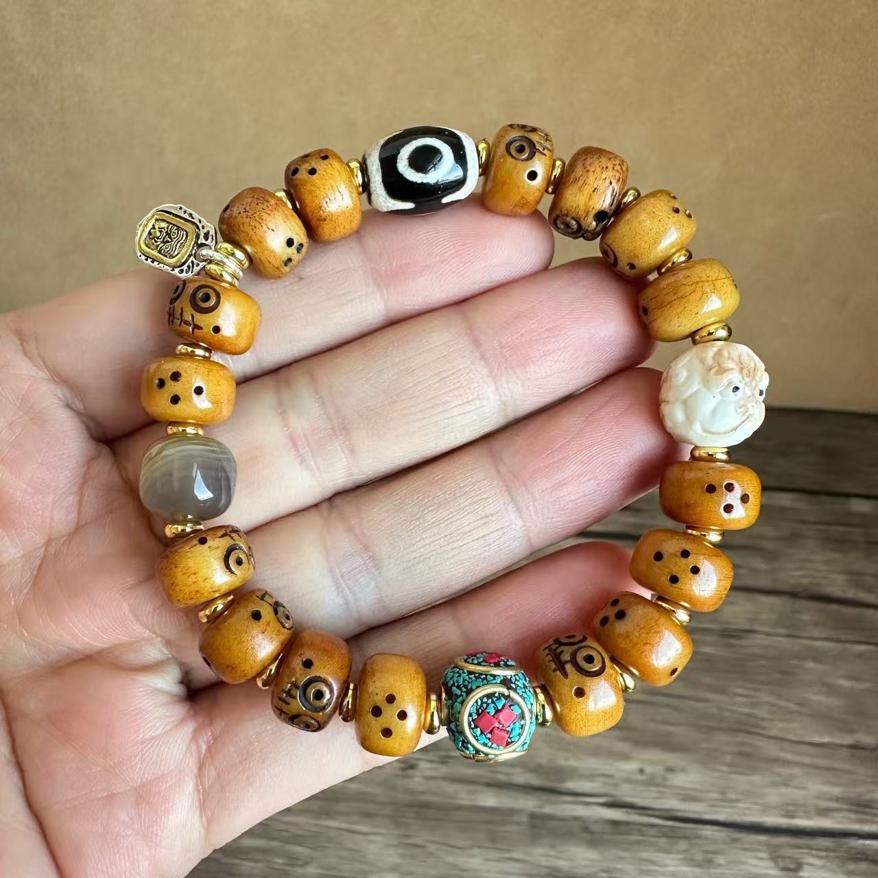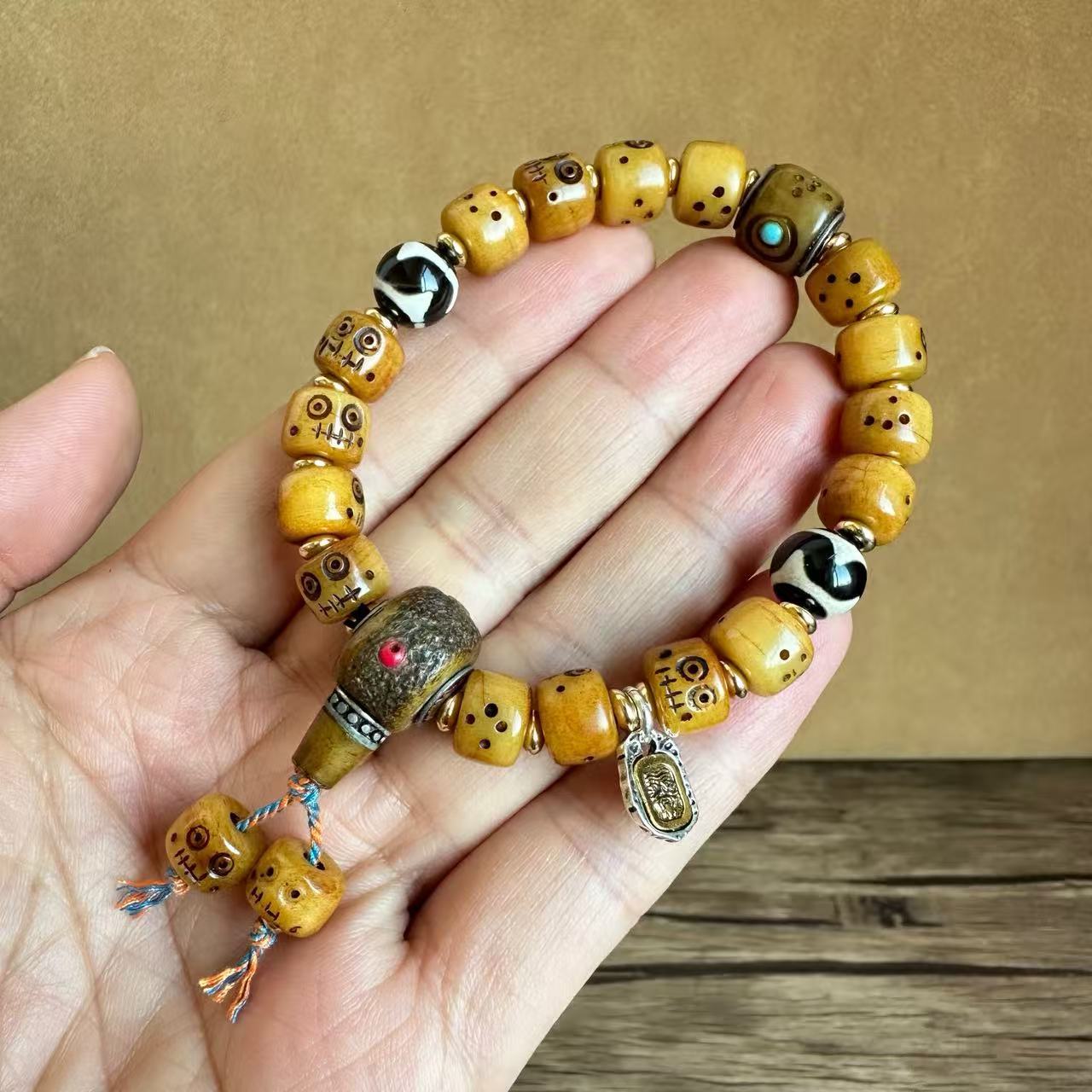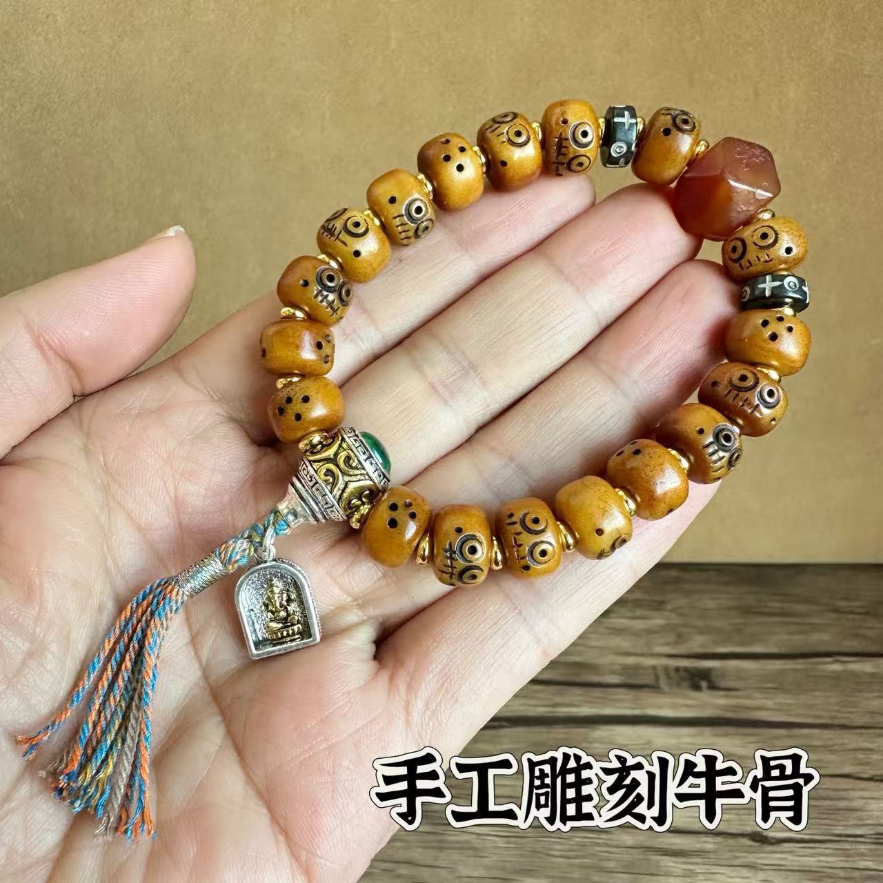 藏传牛骨雕刻阿呆文玩手串民族风手饰回流骨牦牛骨藏式男女款手链