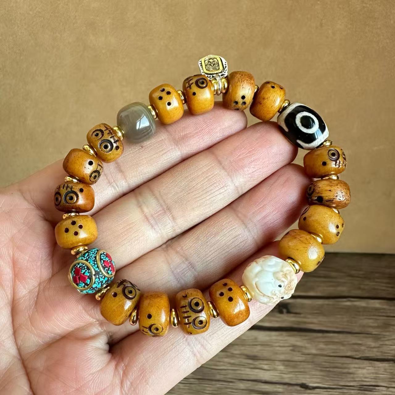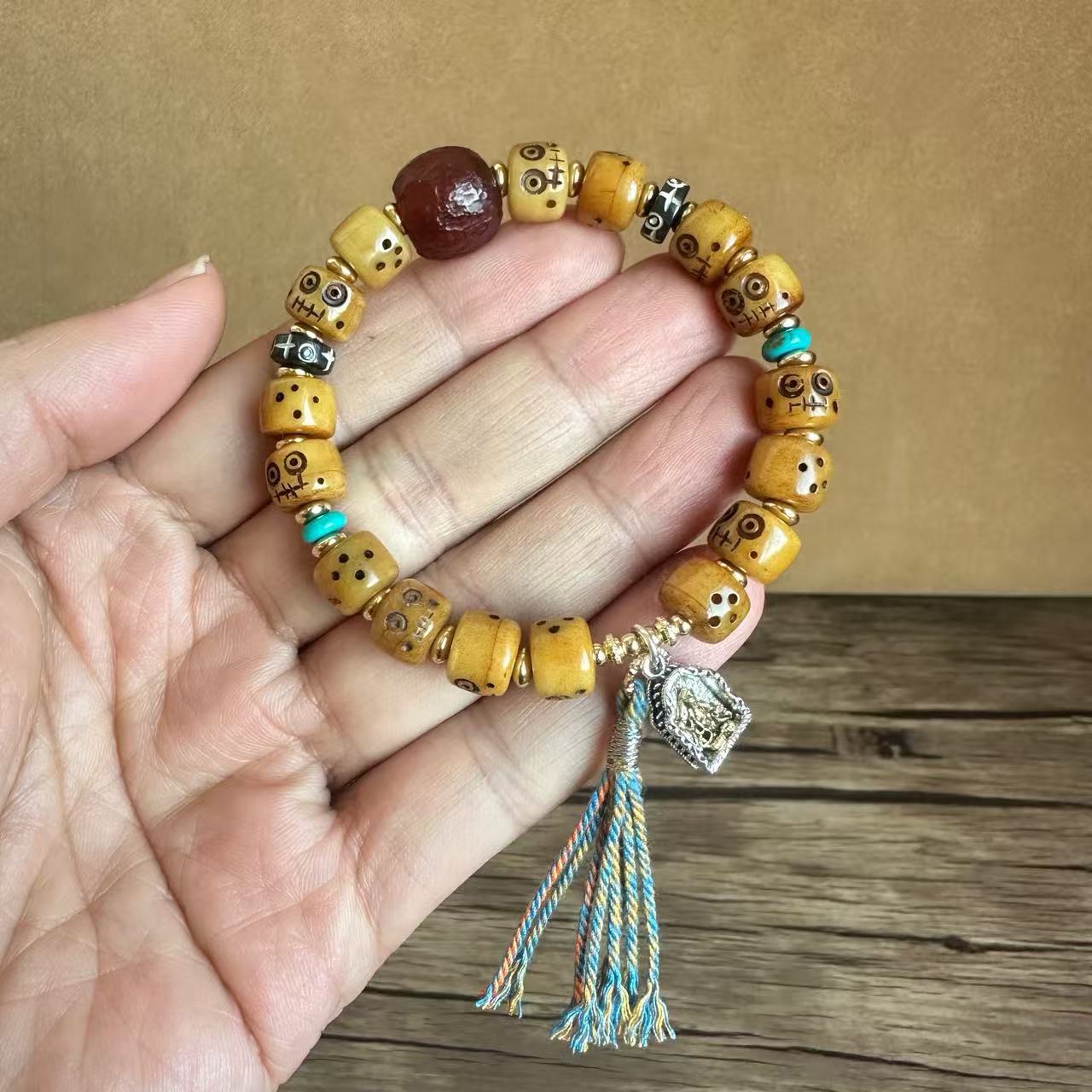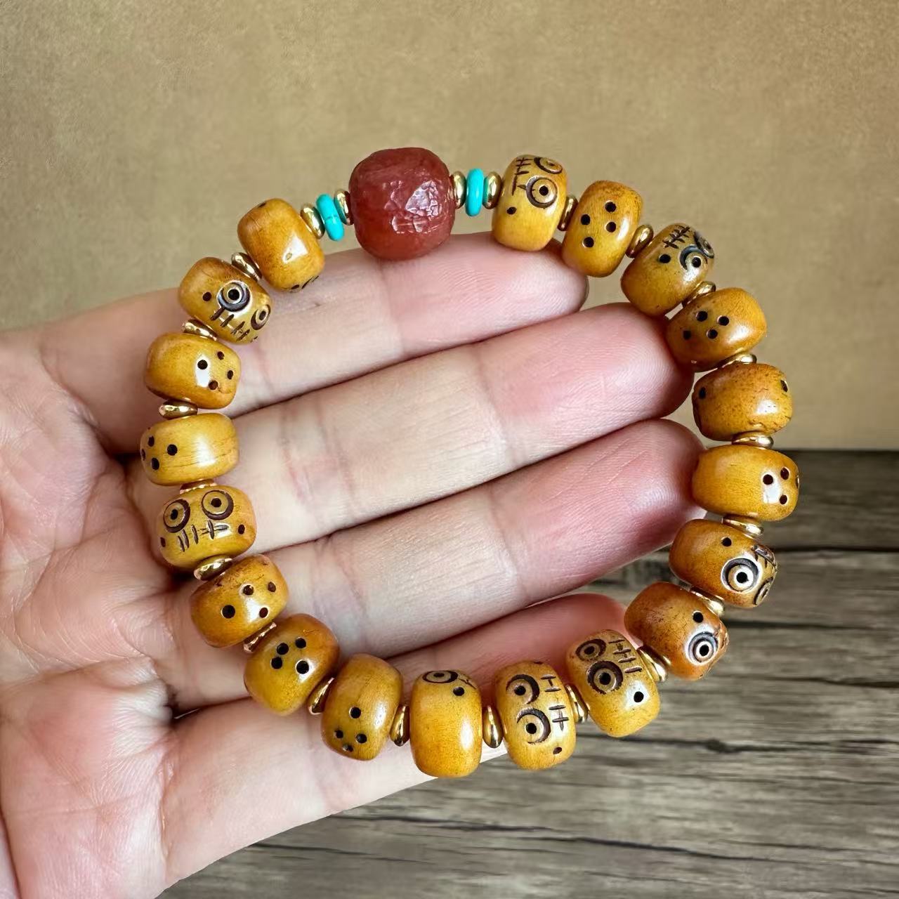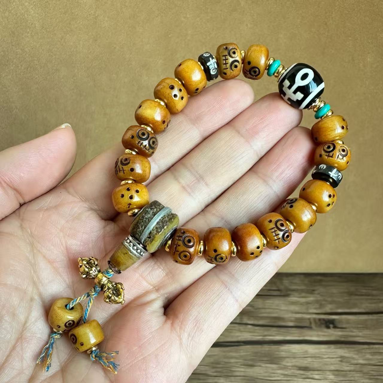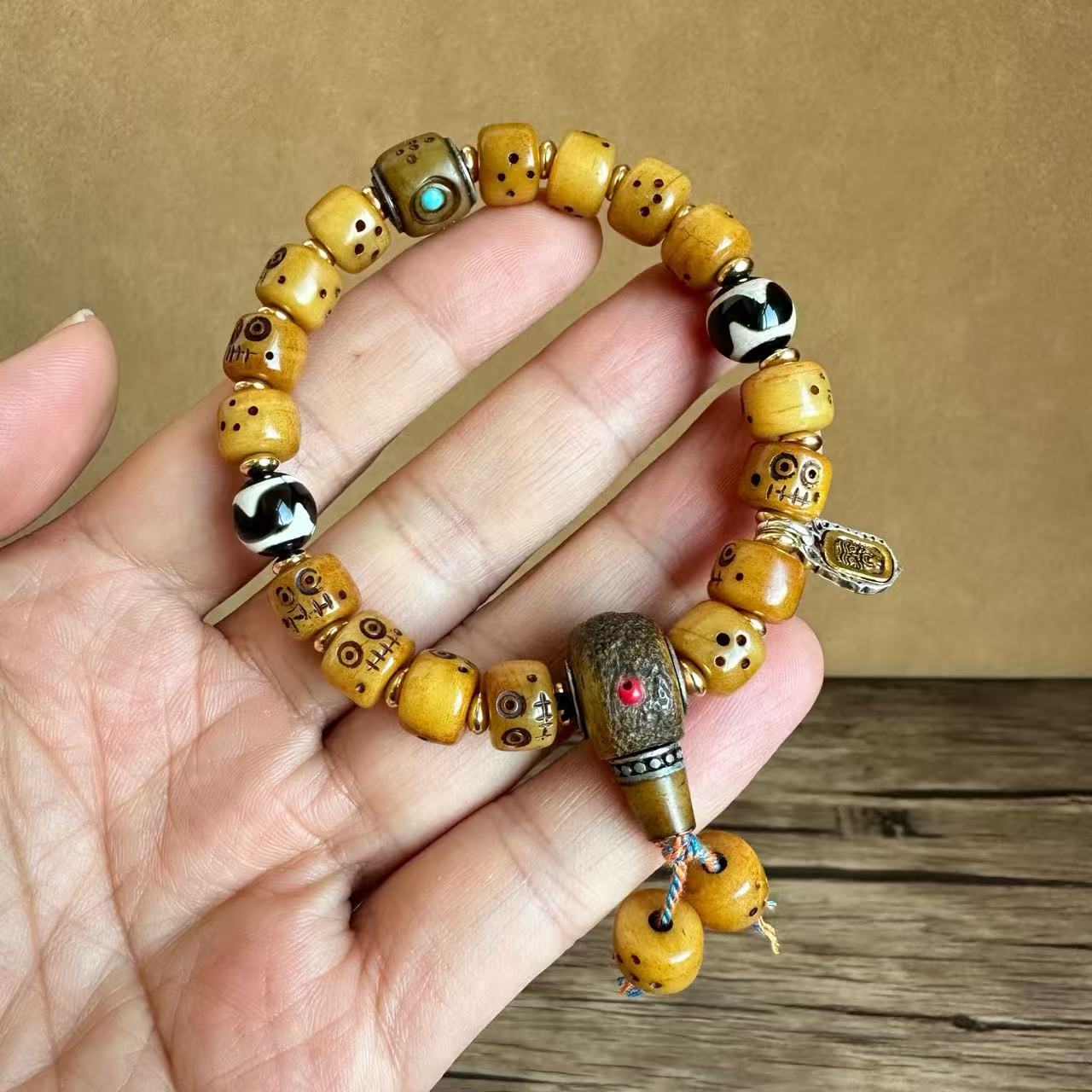 藏传牛骨雕刻阿呆文玩手串民族风手饰回流骨牦牛骨藏式男女款手链