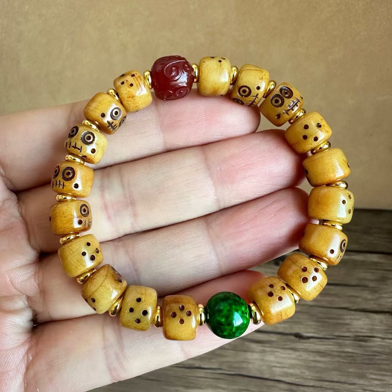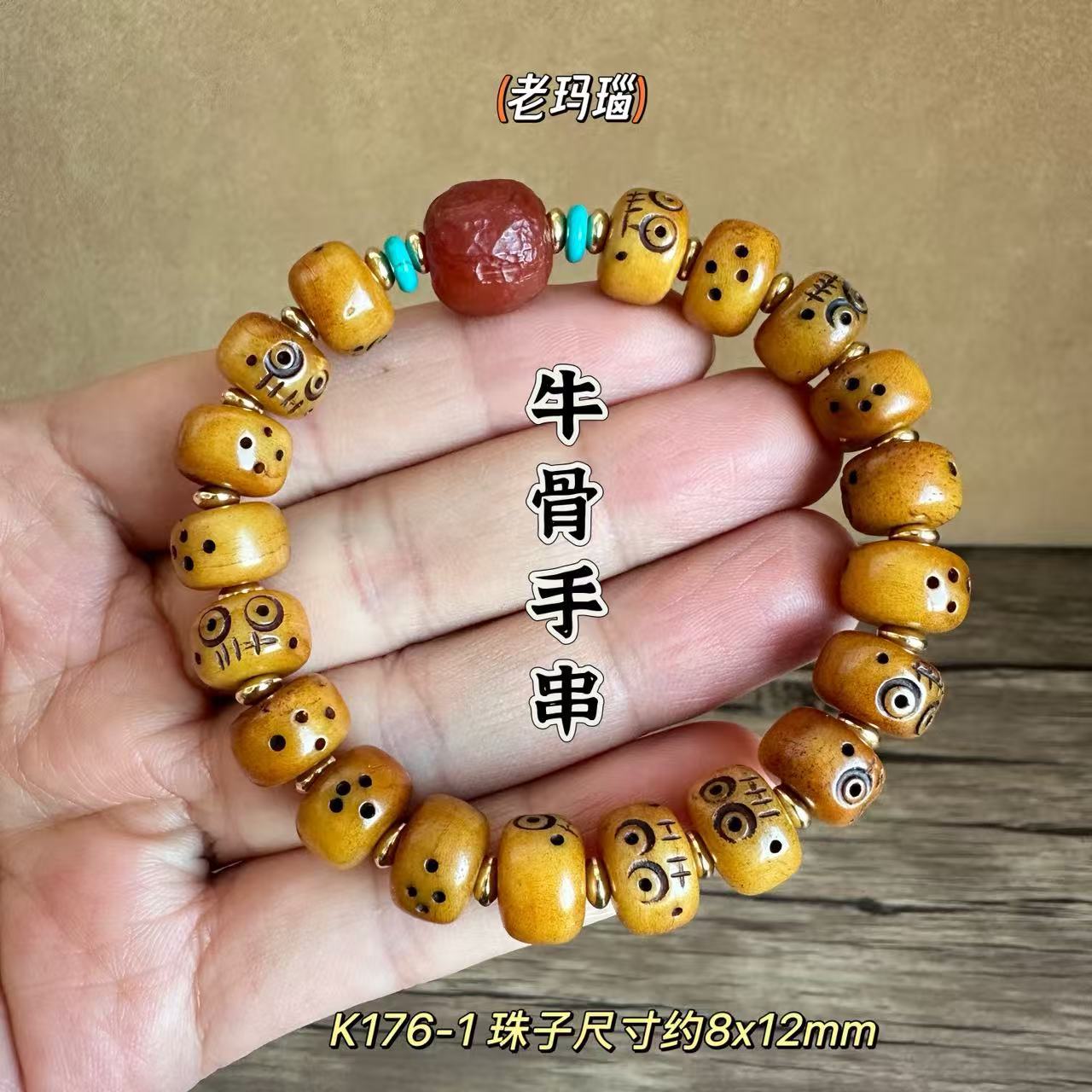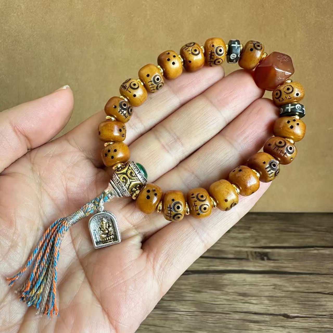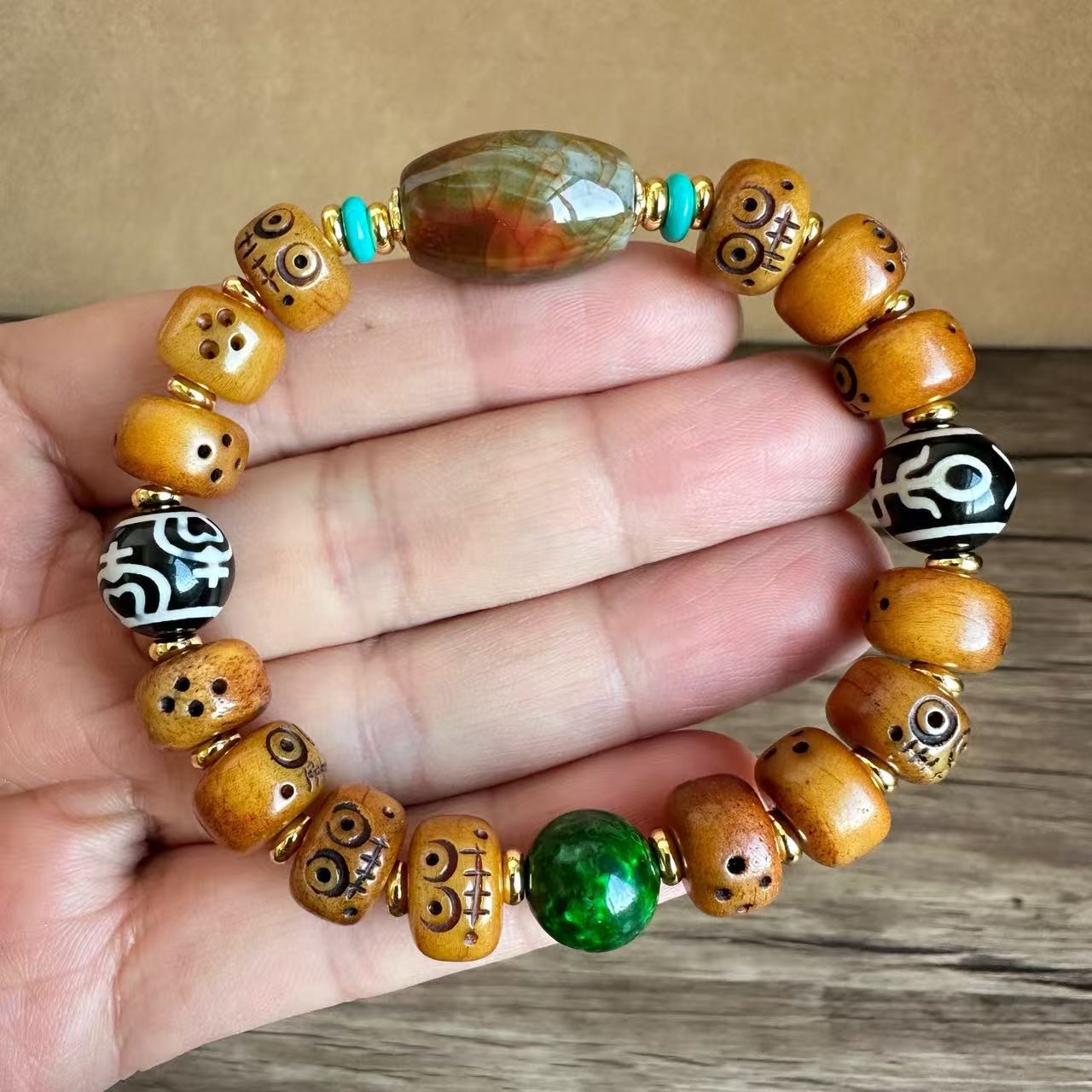 藏传牛骨雕刻阿呆文玩手串民族风手饰回流骨牦牛骨藏式男女款手链