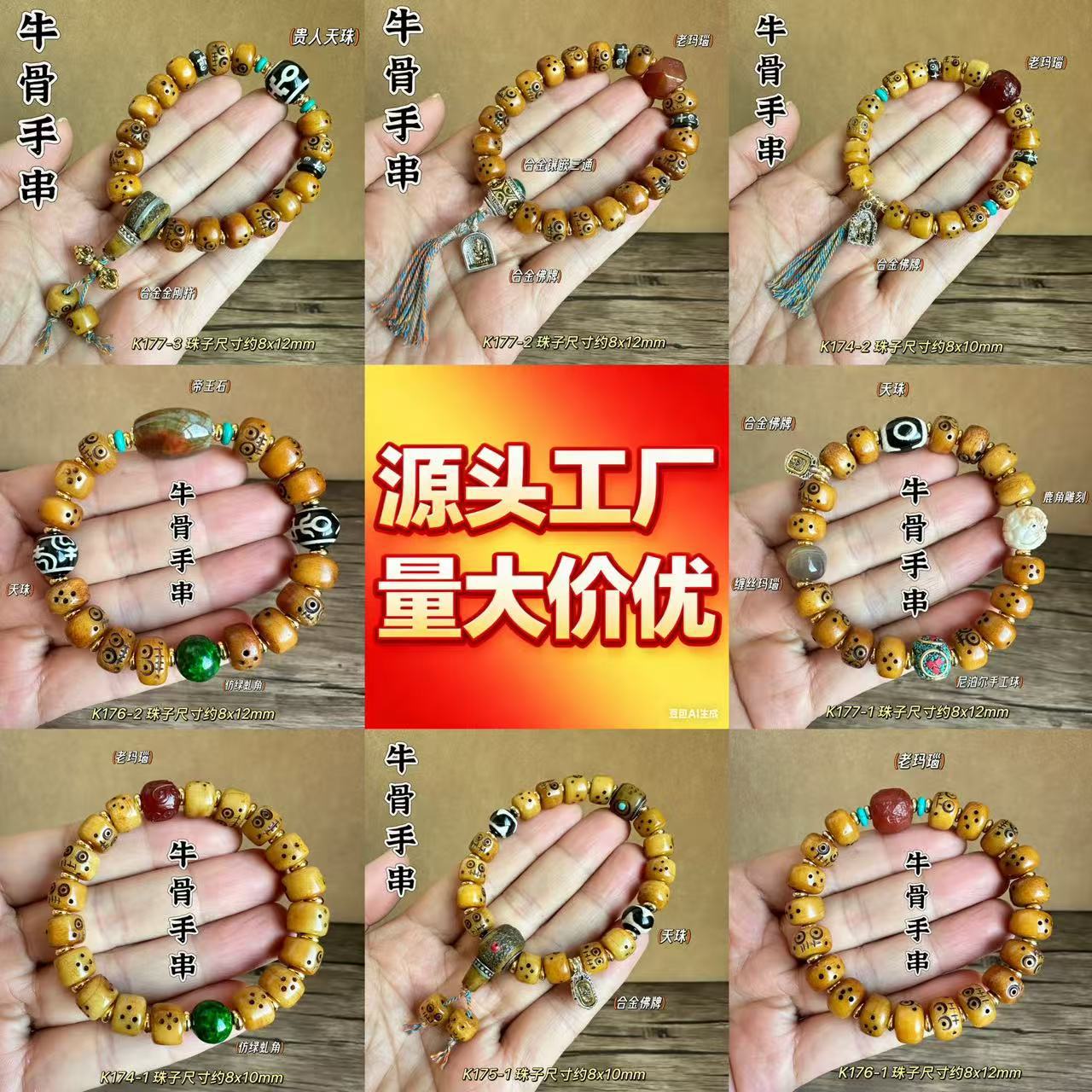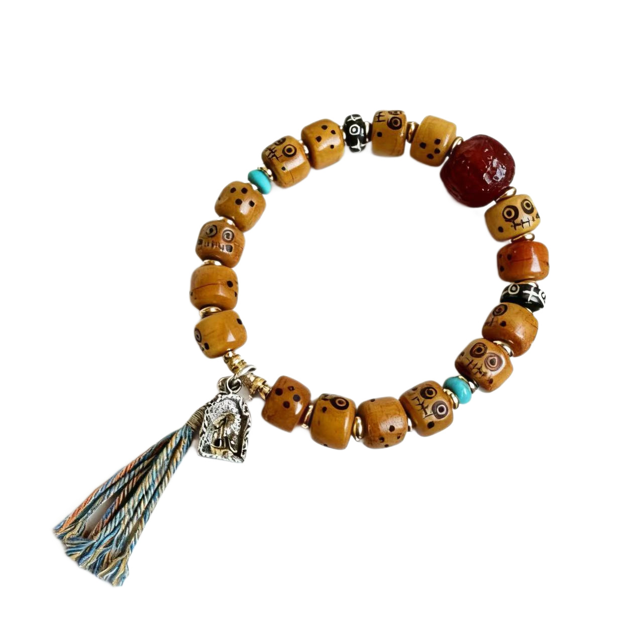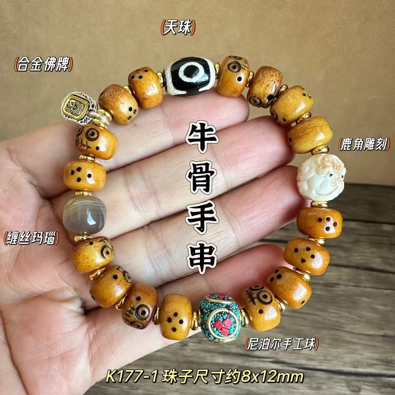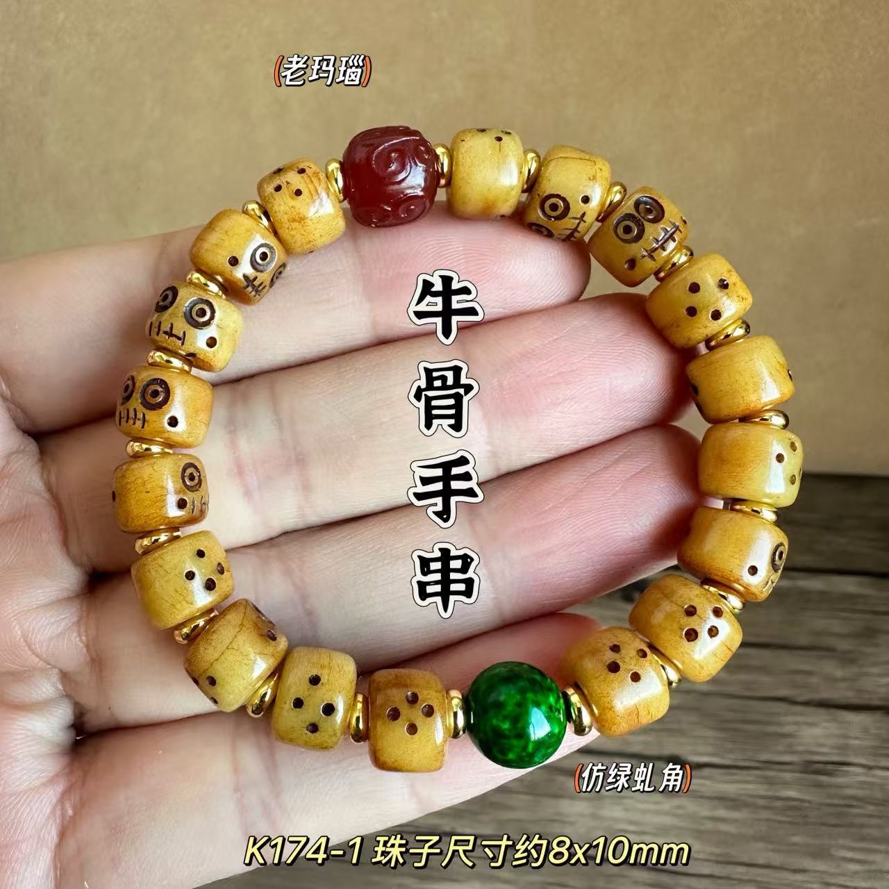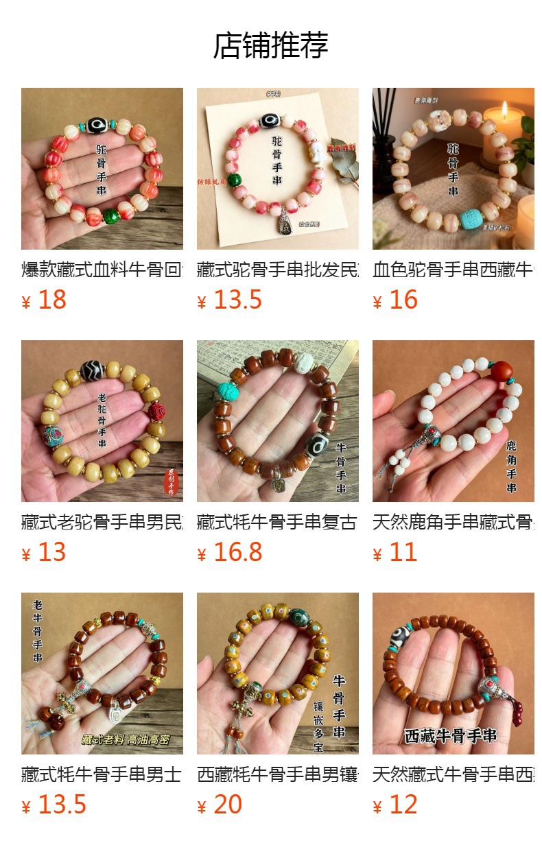 藏传牛骨雕刻阿呆文玩手串民族风手饰回流骨牦牛骨藏式男女款手链