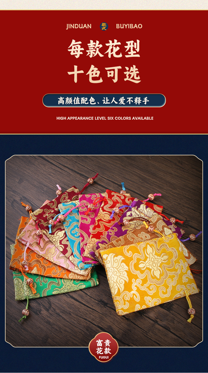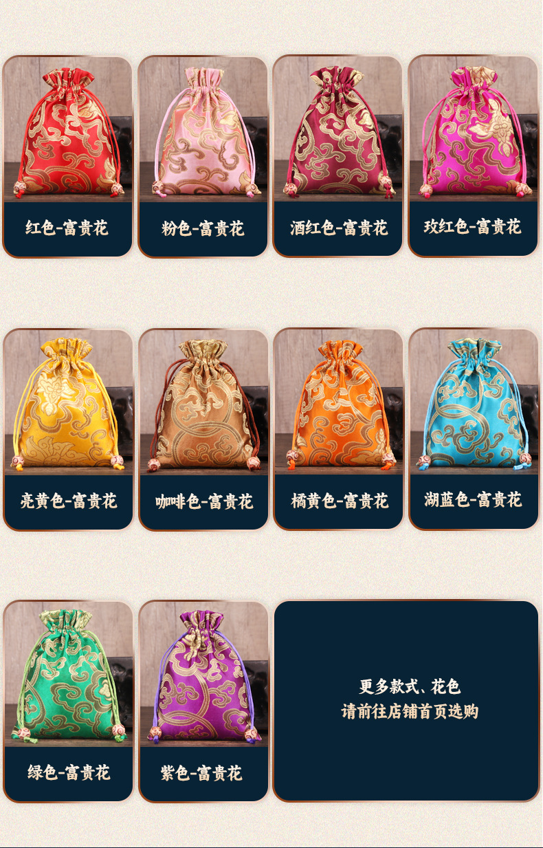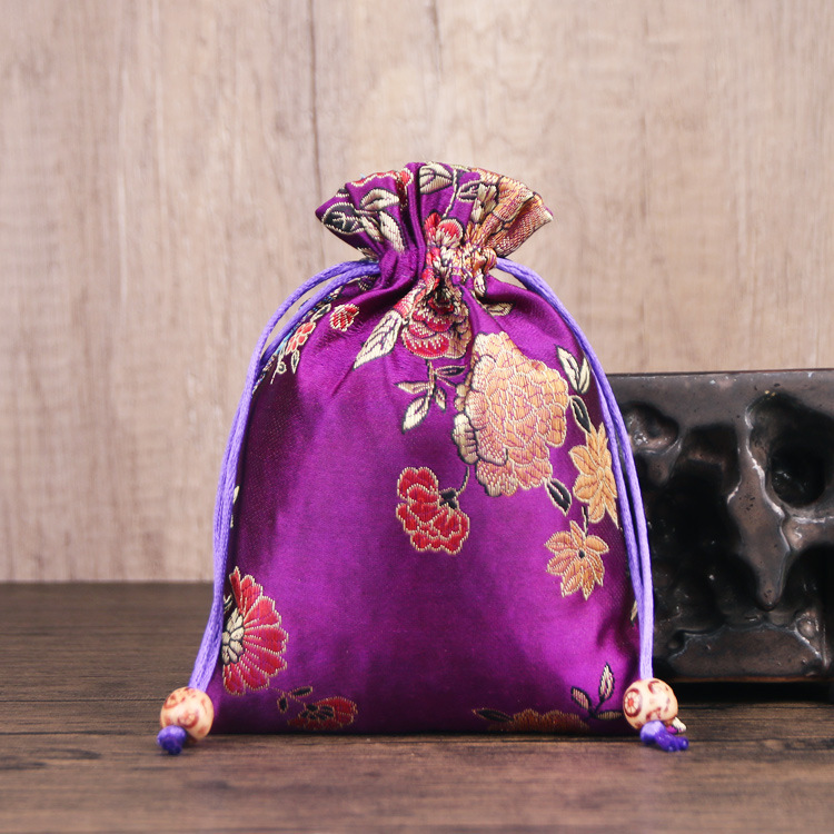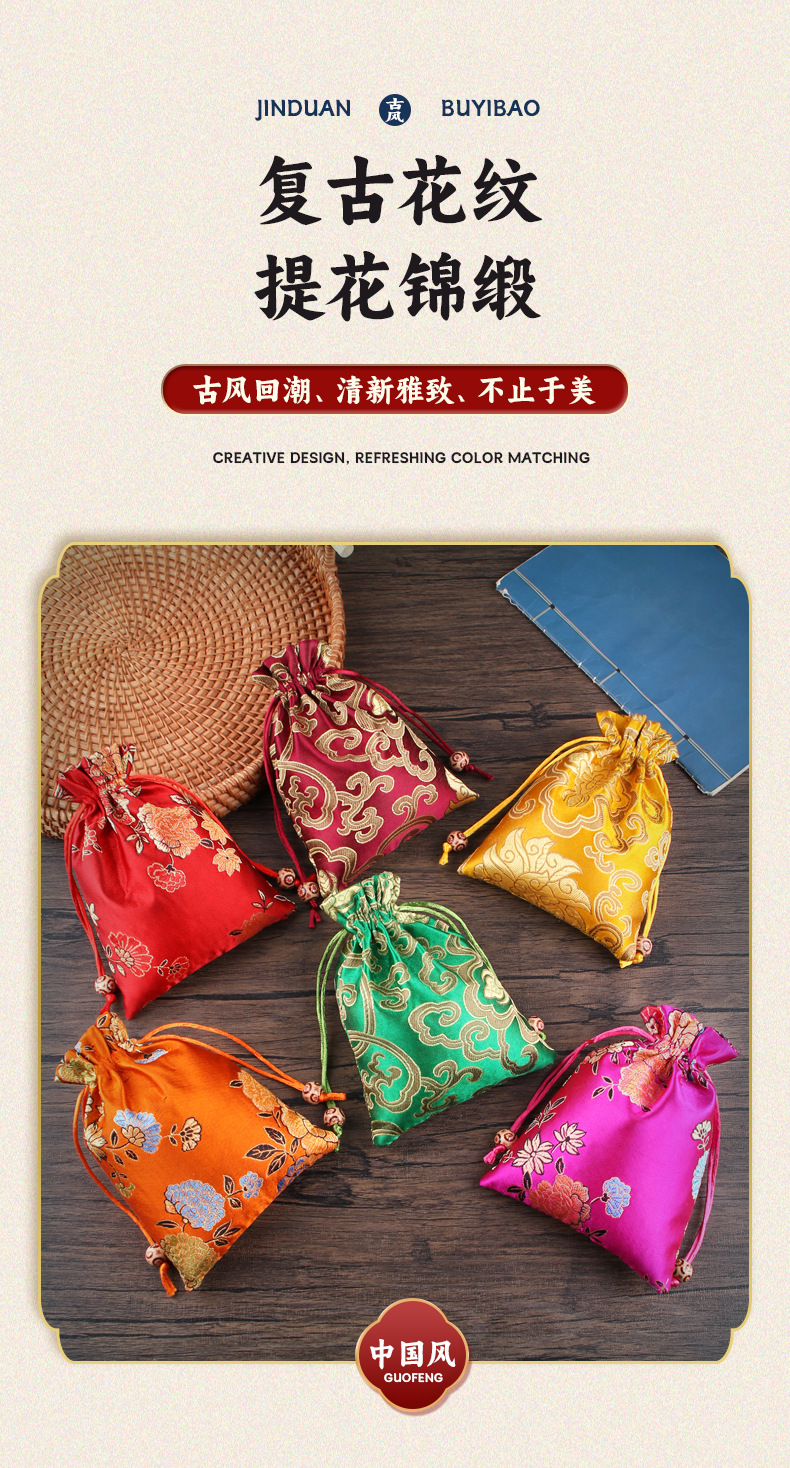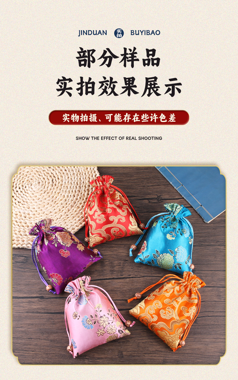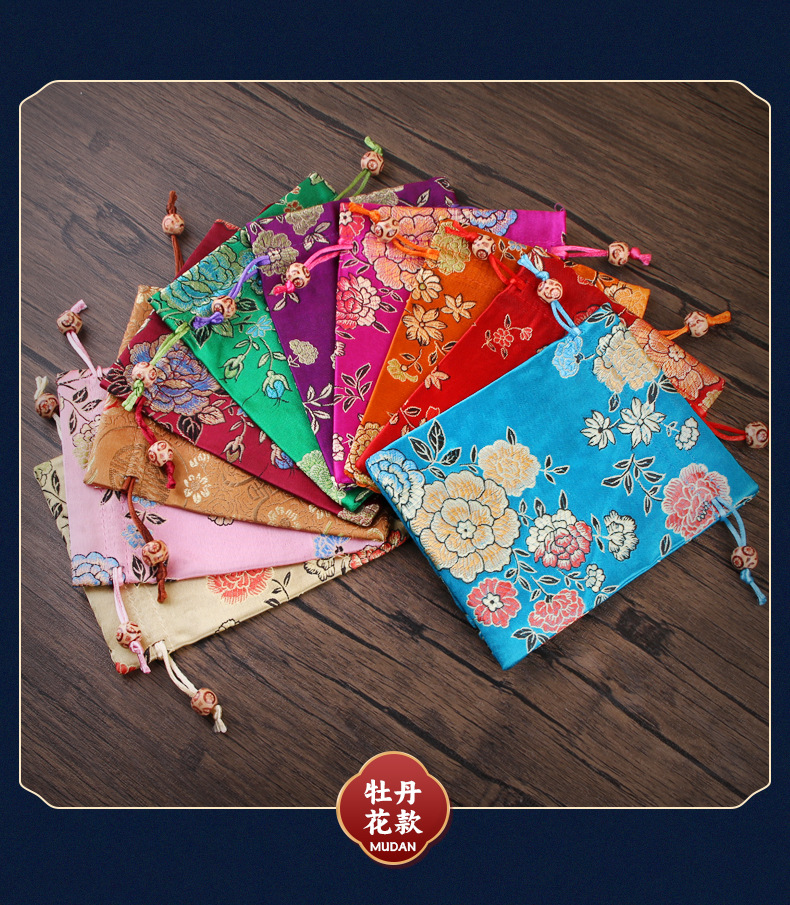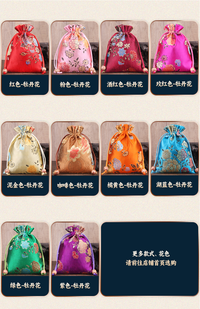 定制手工刺绣百花锦缎收纳袋中国风抽绳束口袋多色可选