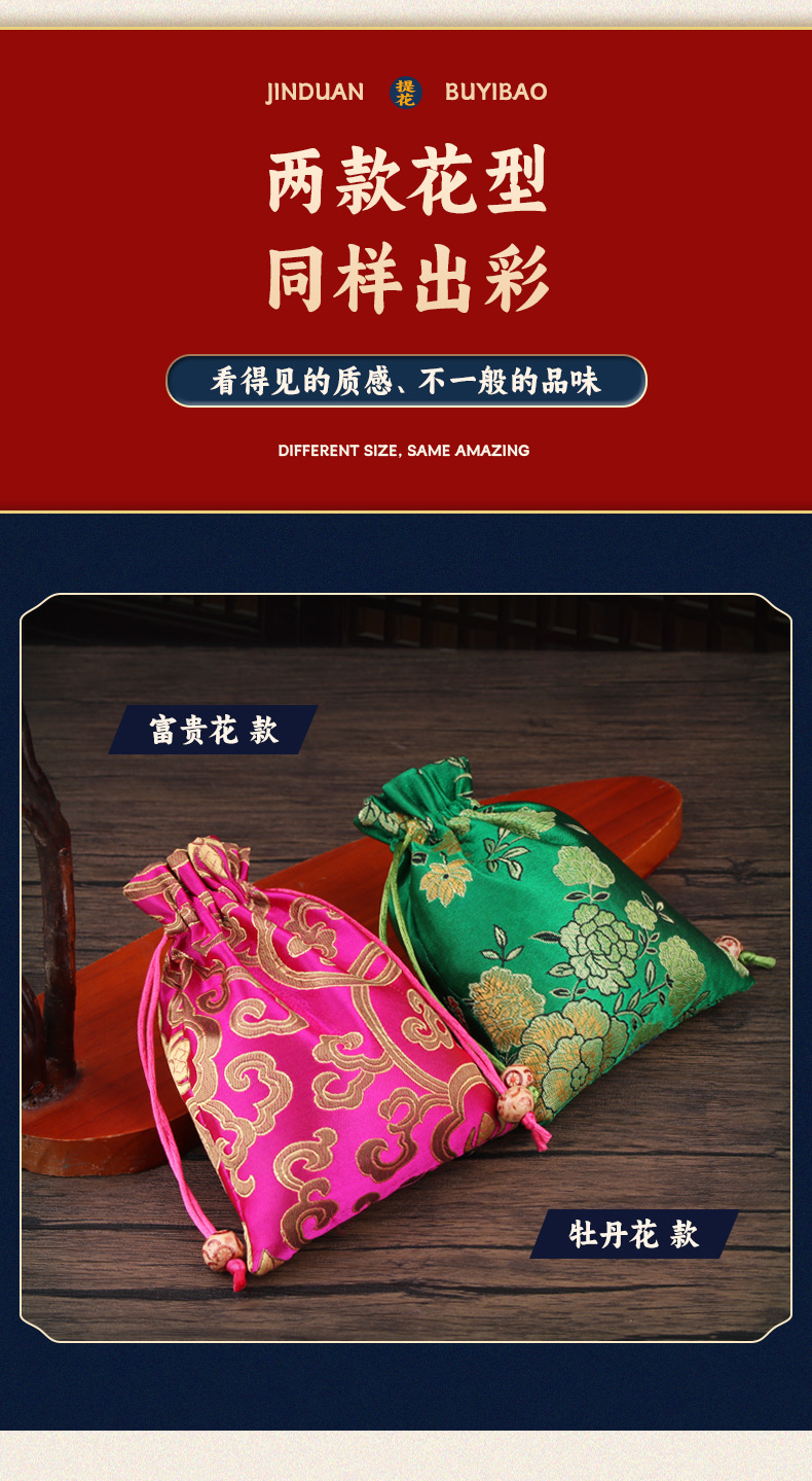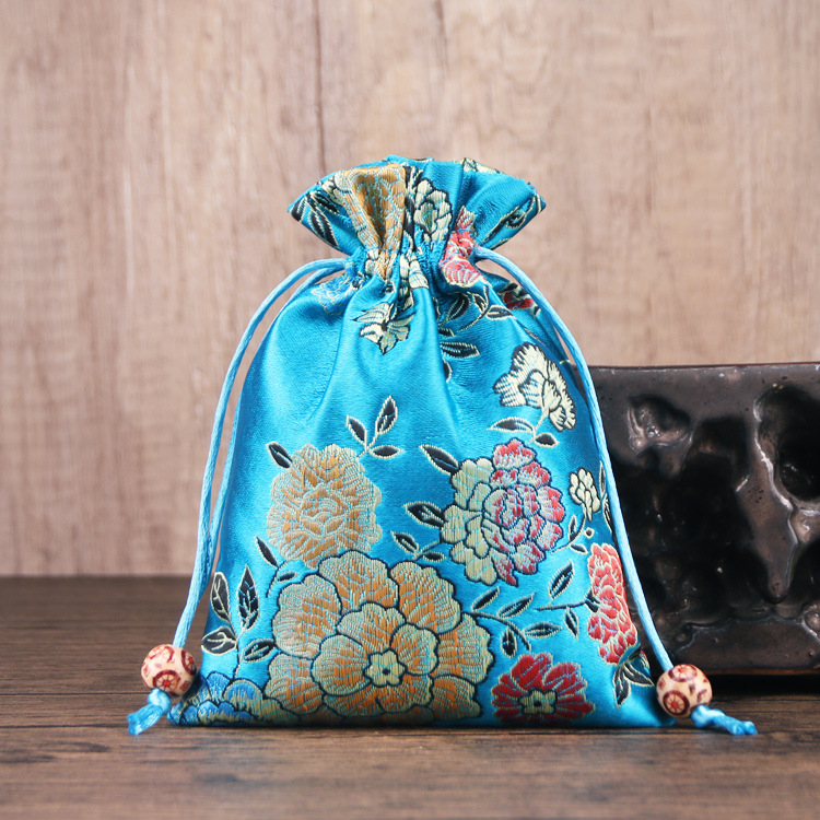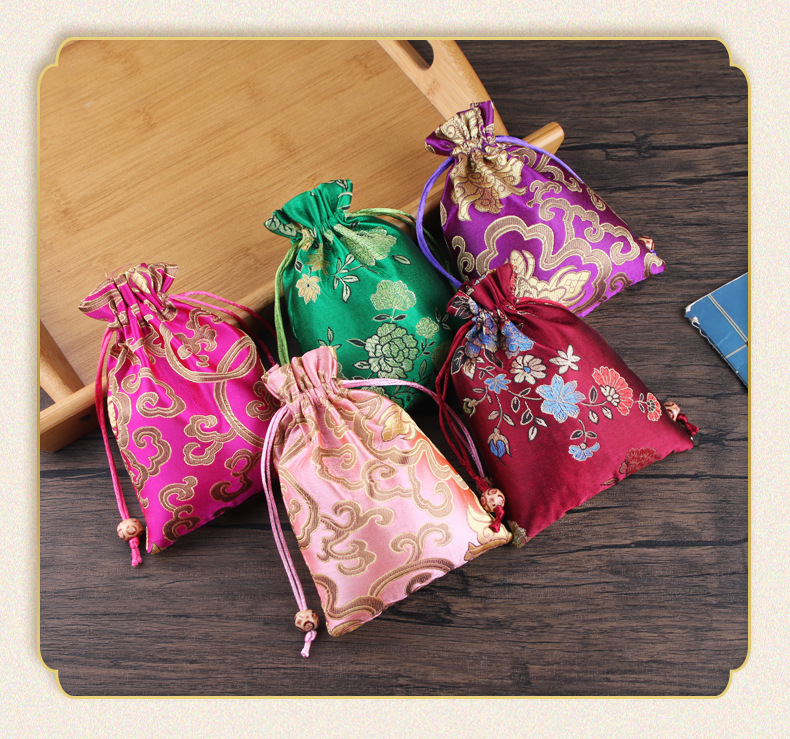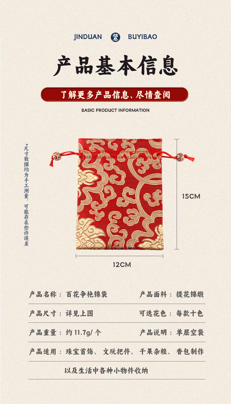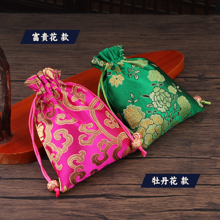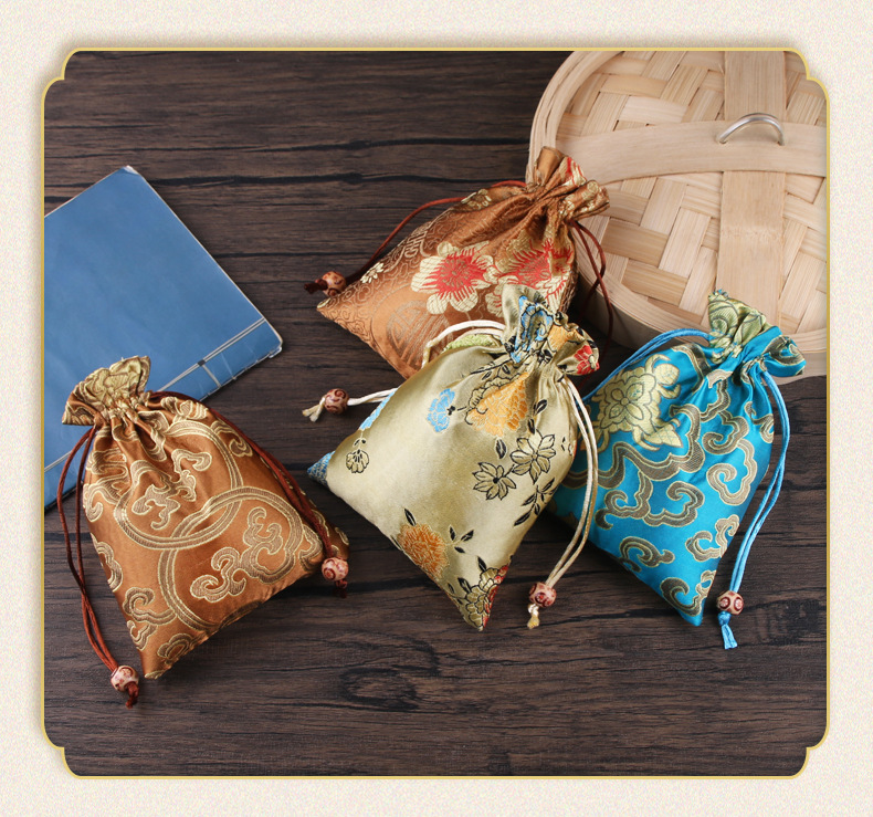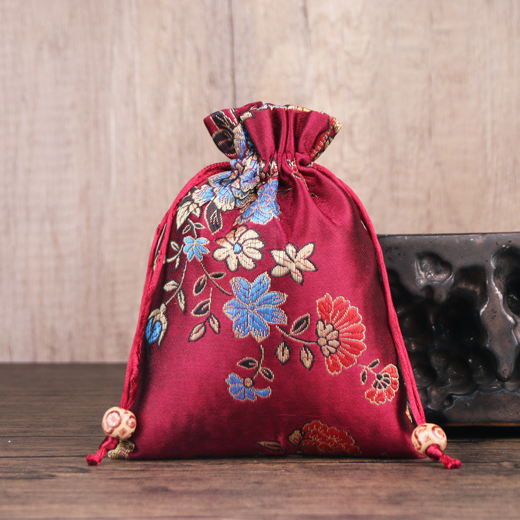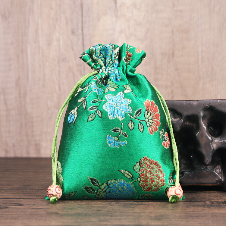 定制手工刺绣百花锦缎收纳袋中国风抽绳束口袋多色可选