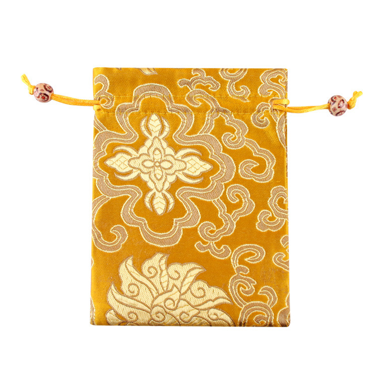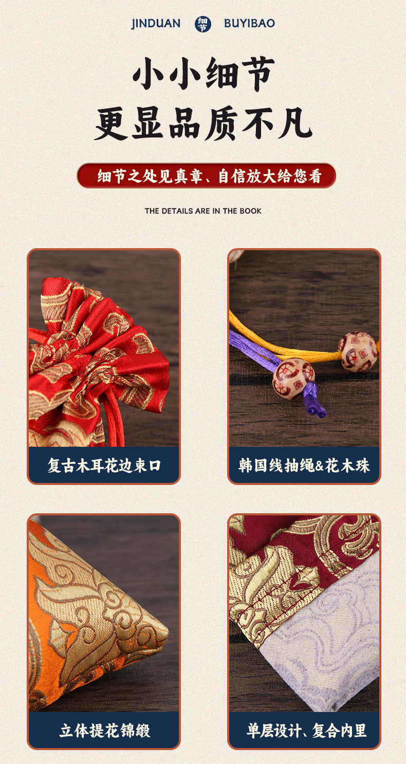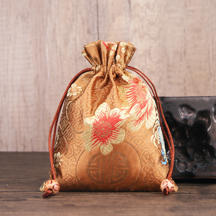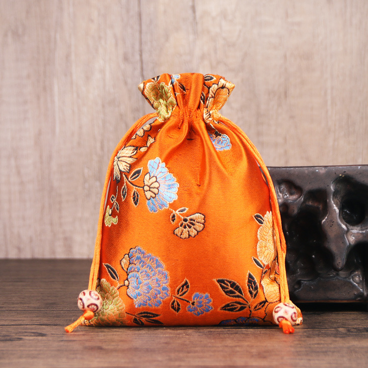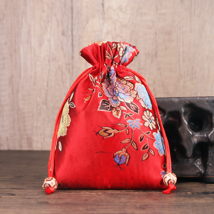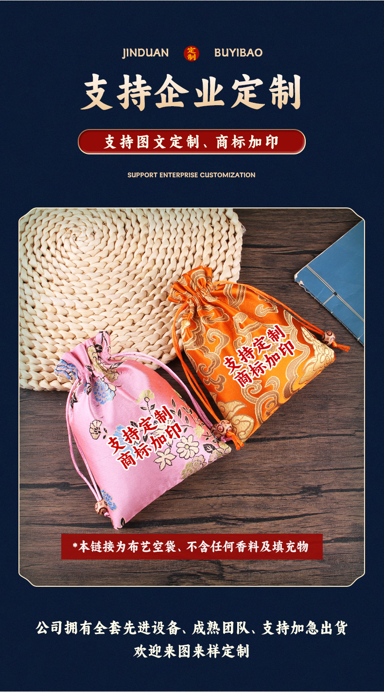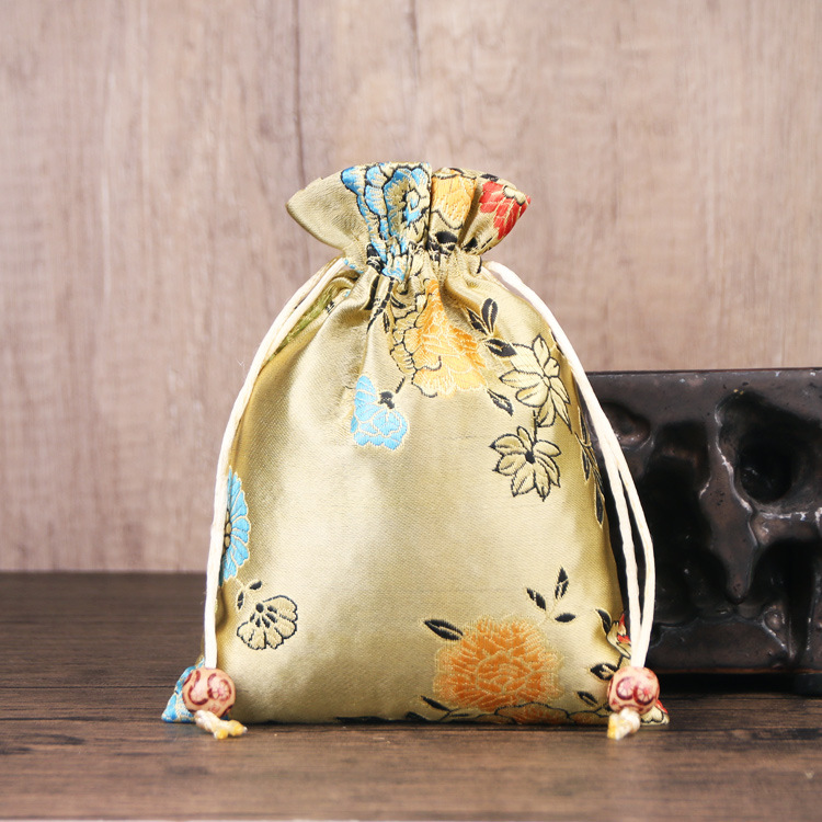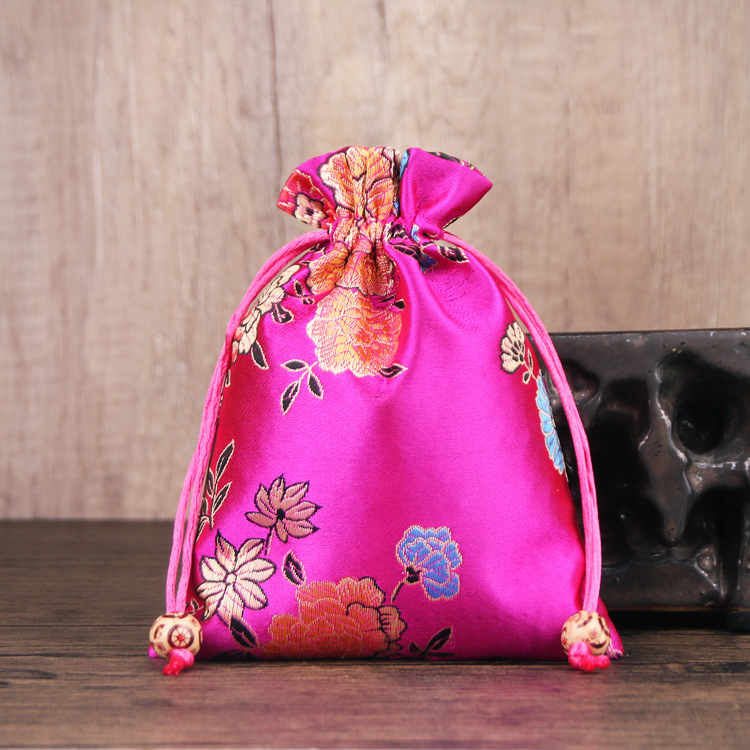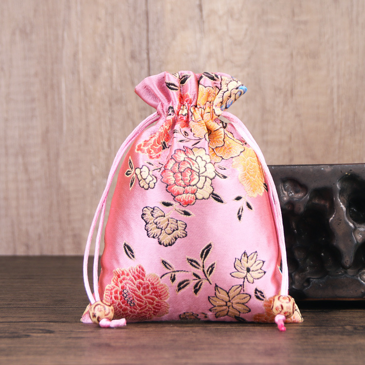 定制手工刺绣百花锦缎收纳袋中国风抽绳束口袋多色可选