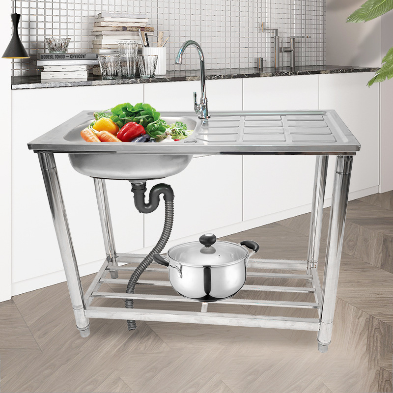 厨房洗菜盆洗碗池不锈钢单池水槽厨房不锈钢单池带平台水槽批发