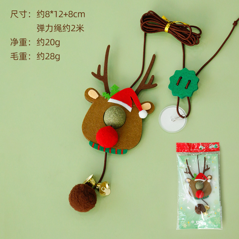 原创设计宠物圣诞麋鹿花环猫玩具挂门自嗨逗猫荡秋千弹力绳逗猫棒