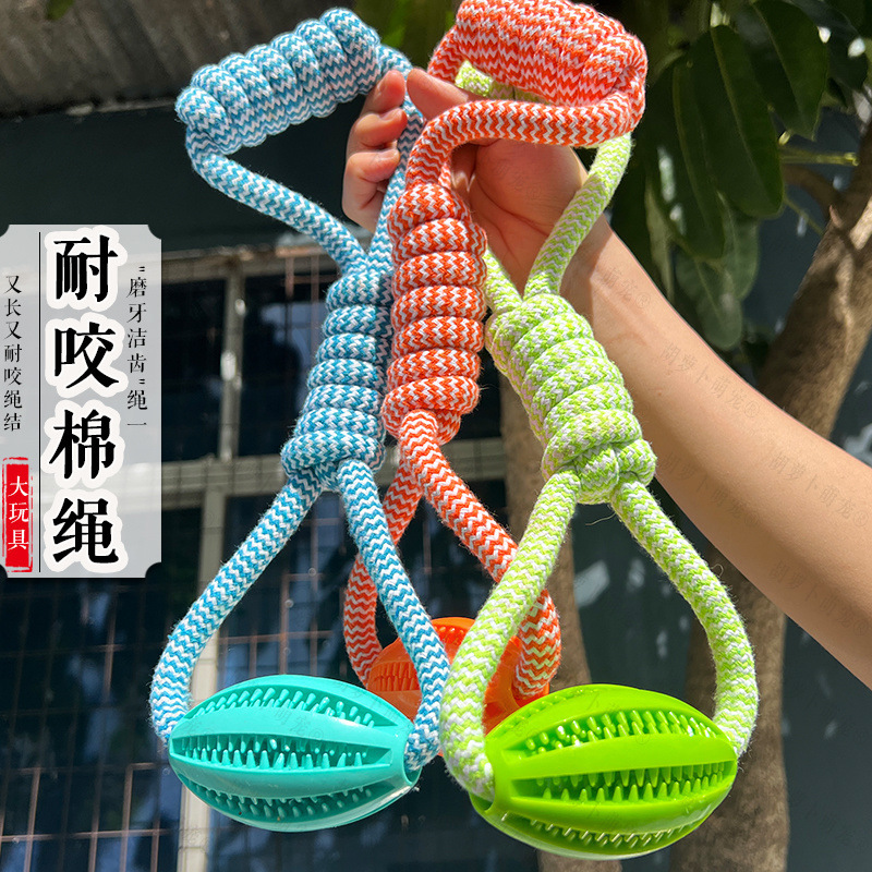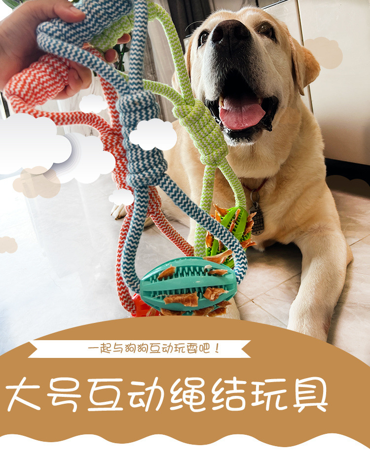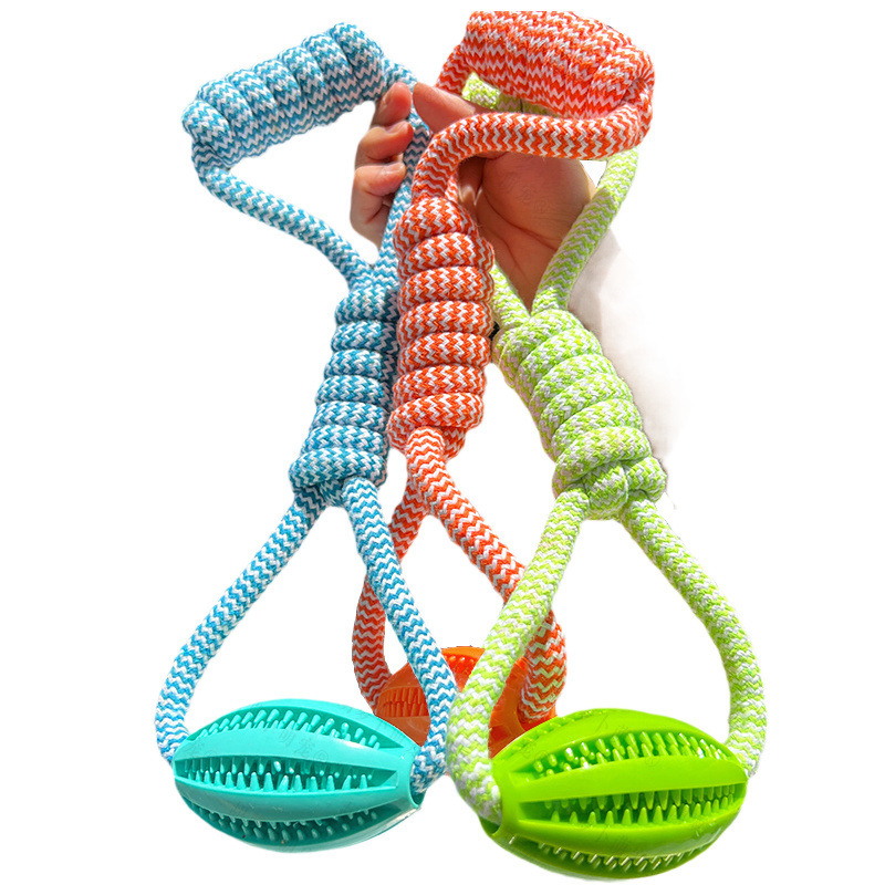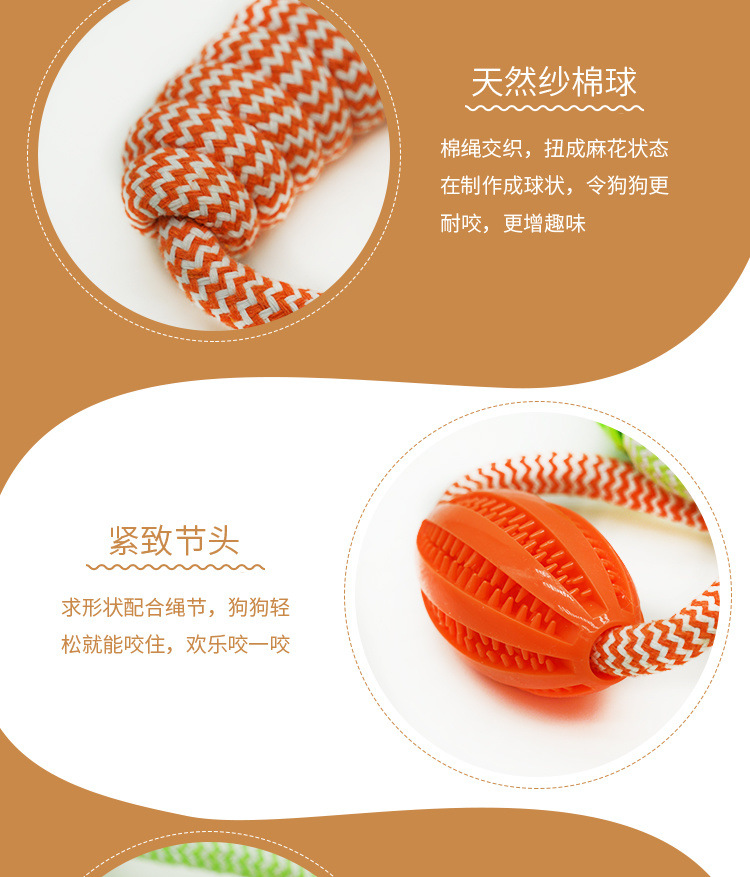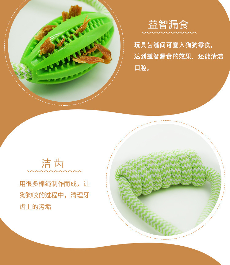 宠物狗棉绳玩具互动拉伸漏食橄榄球解闷泰迪柯基磨牙绳结宠物耐咬