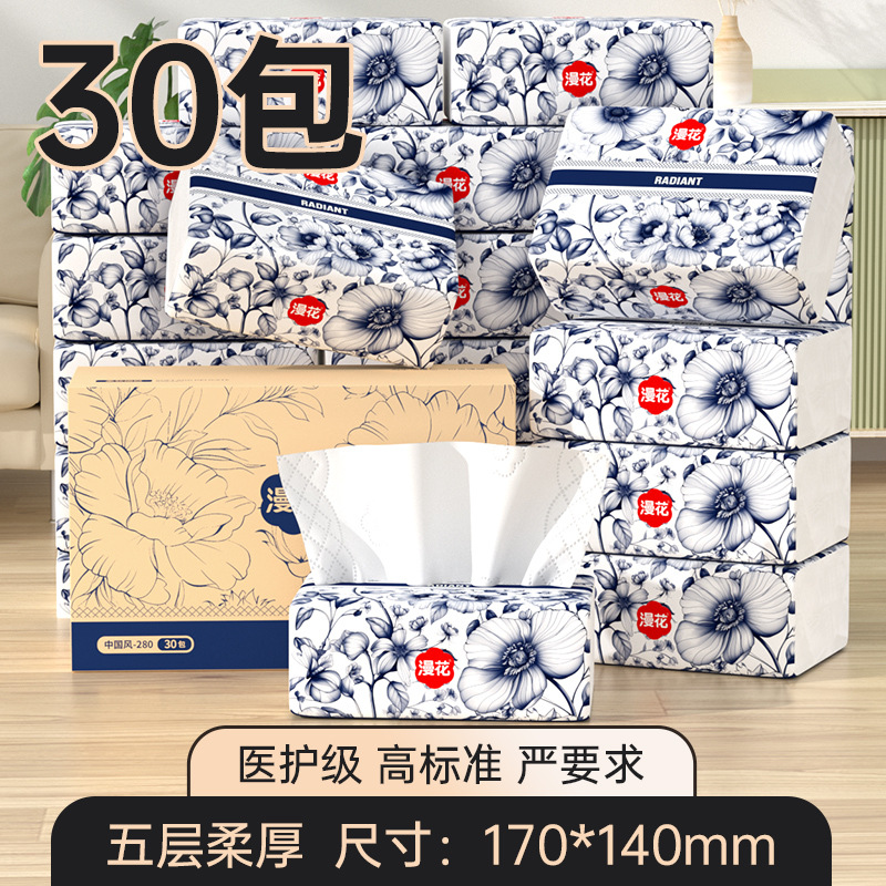 漫花国风抽纸大包纸巾纸抽家用实惠装整箱卫生纸餐巾面巾纸擦手纸