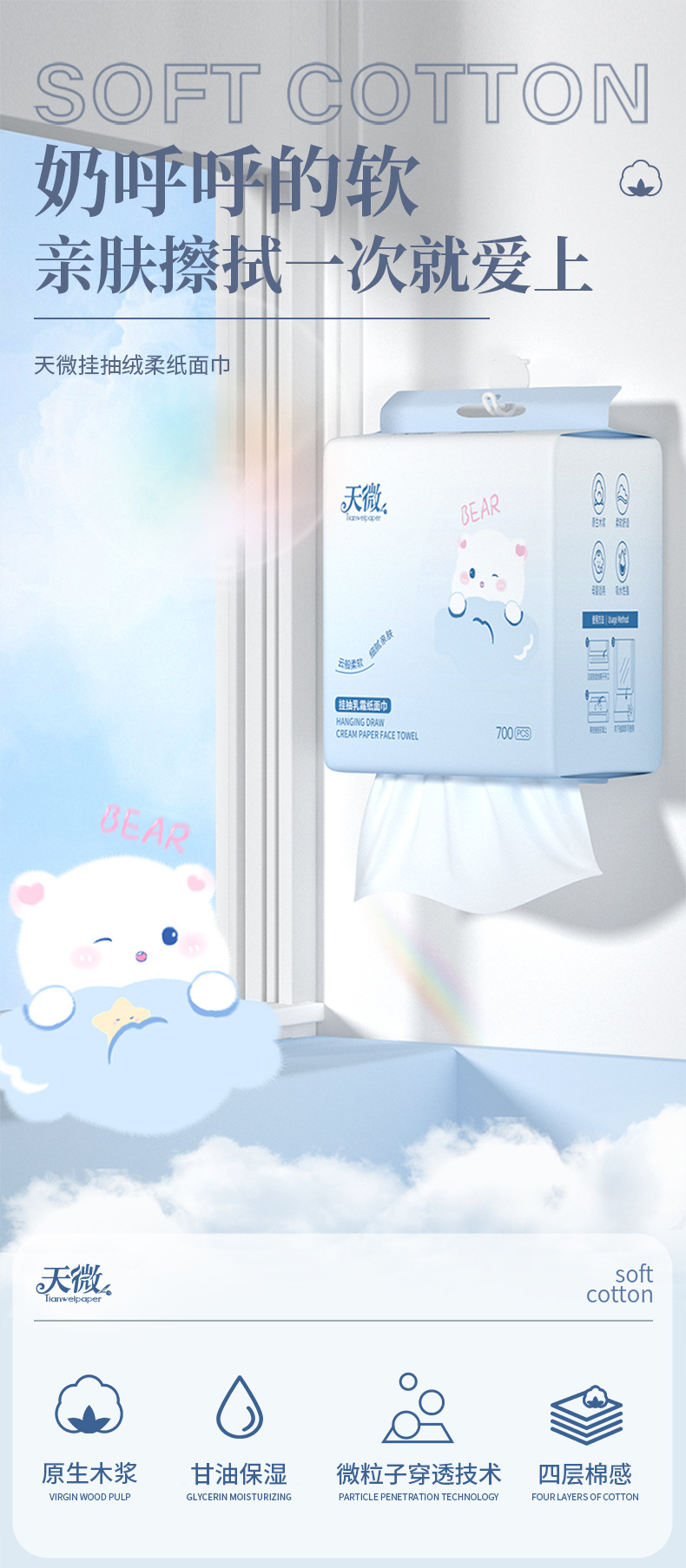 悬挂式乳霜纸加大尺寸纸巾柔韧亲肤面巾纸四层加厚纸抽湿水不易破