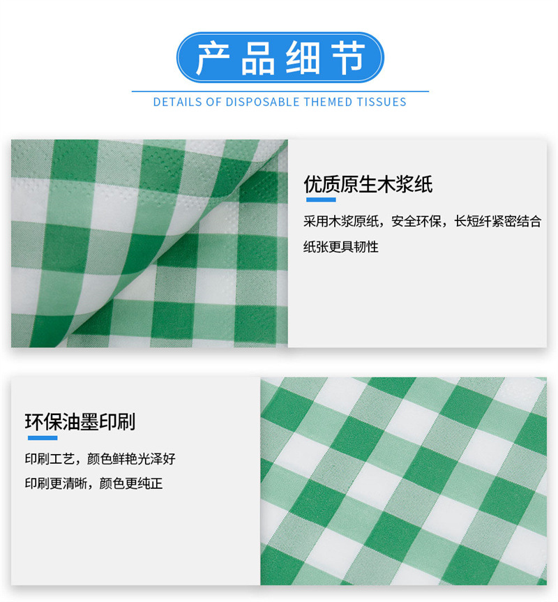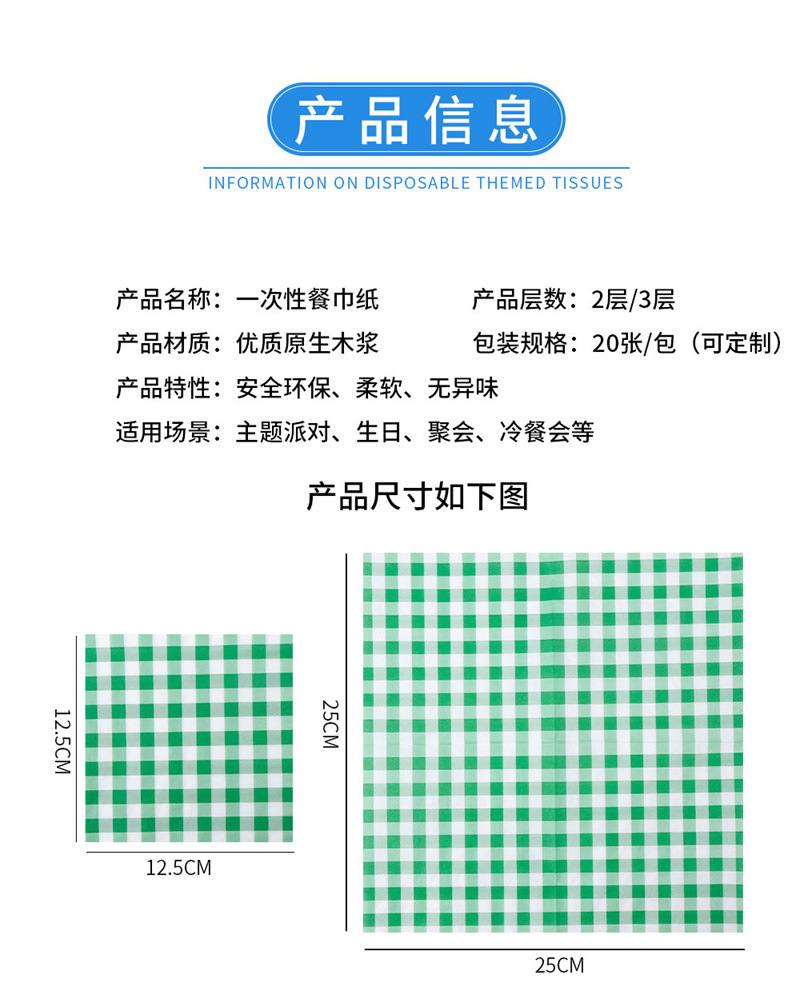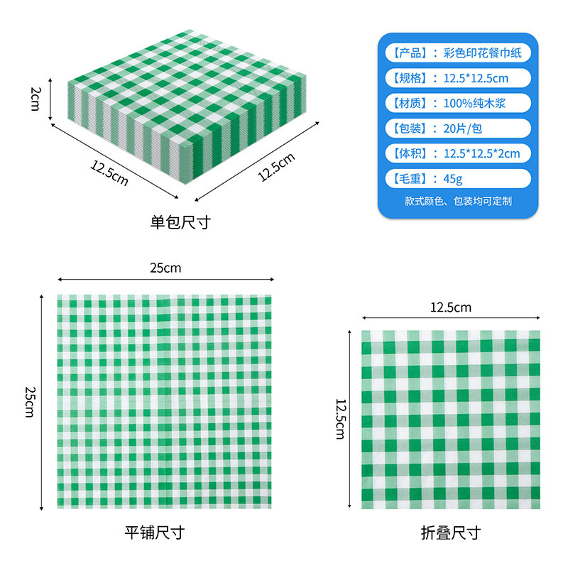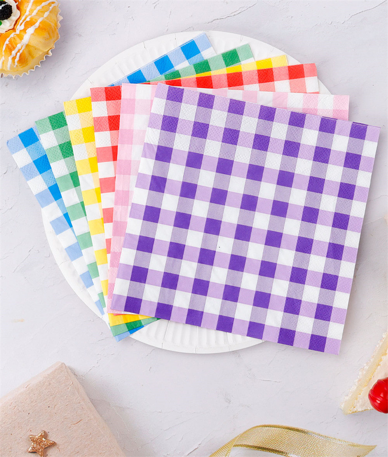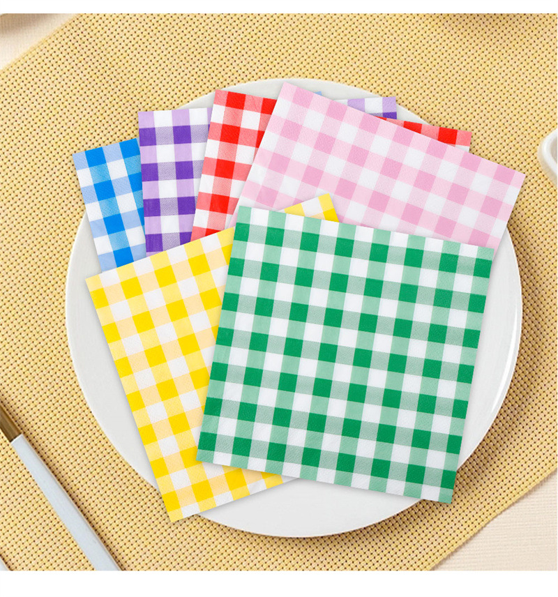 格子印花餐巾纸25*25cm 高级餐厅一次性纸巾跨境节日聚会派对纸巾