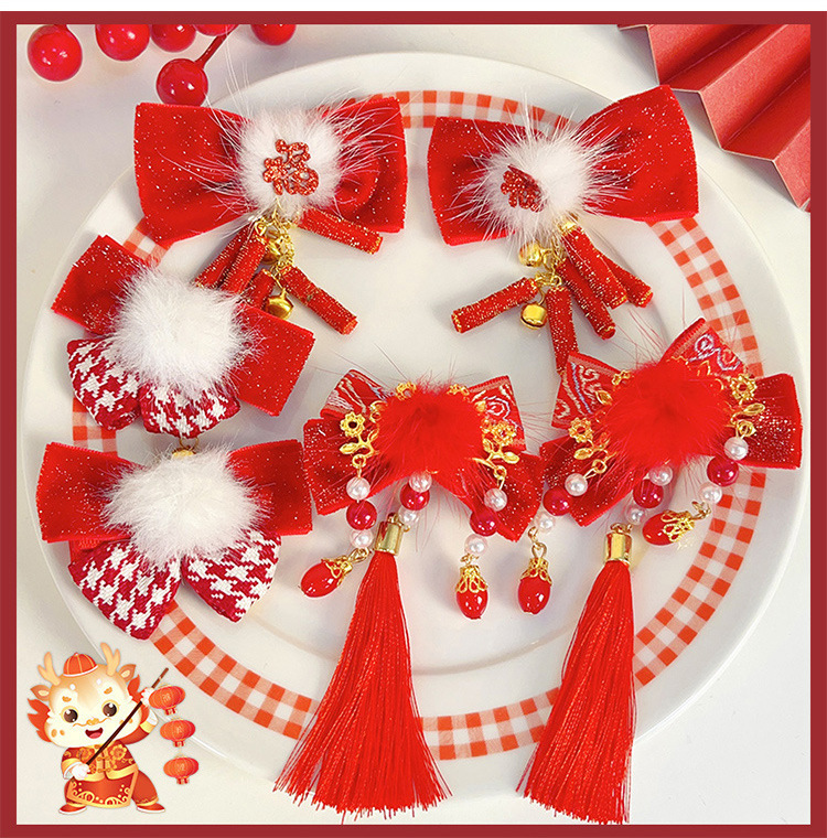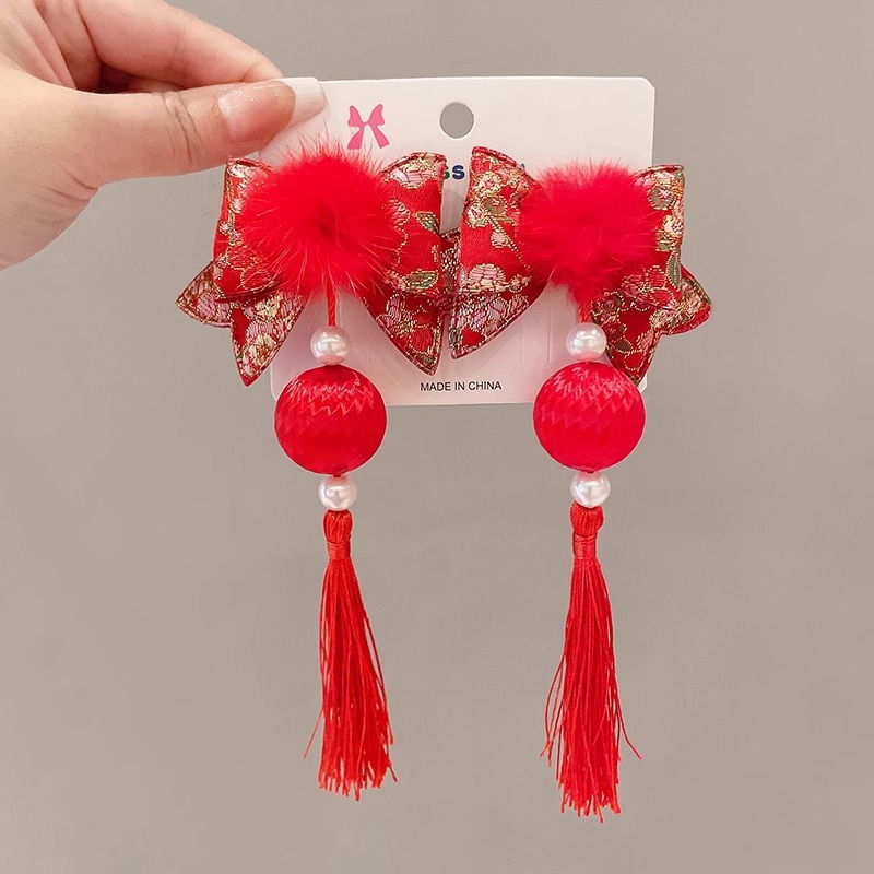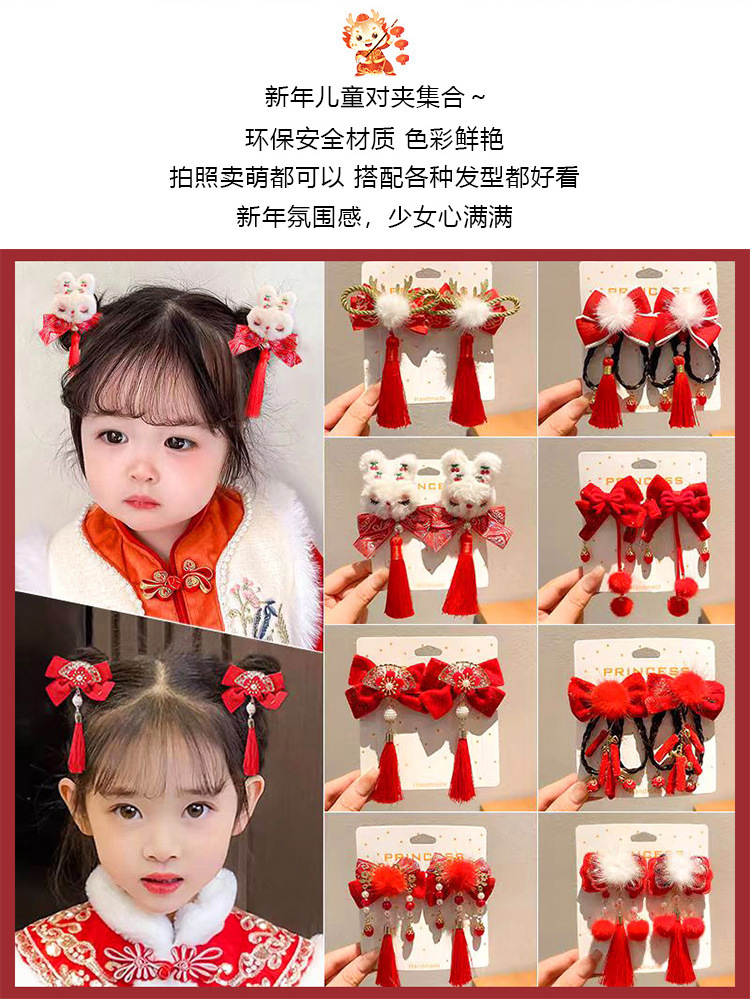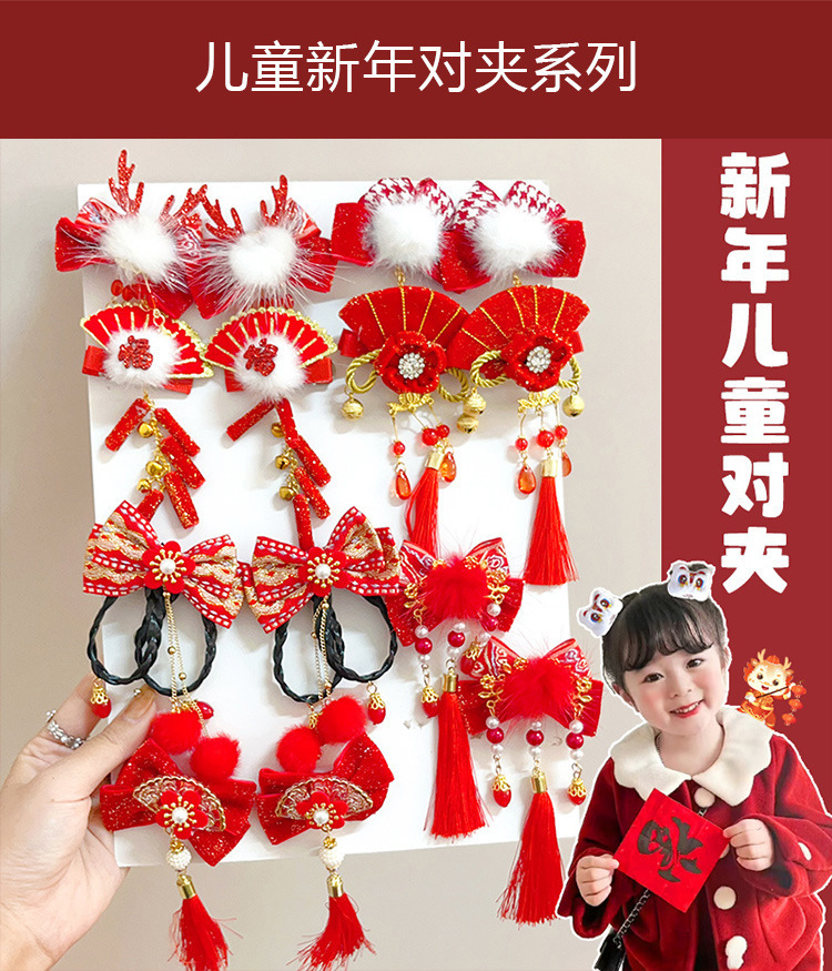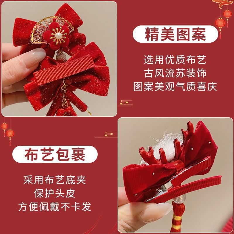 新年儿童古风发饰女童汉服过年中国风蝴蝶结对夹宝宝马年发卡批发