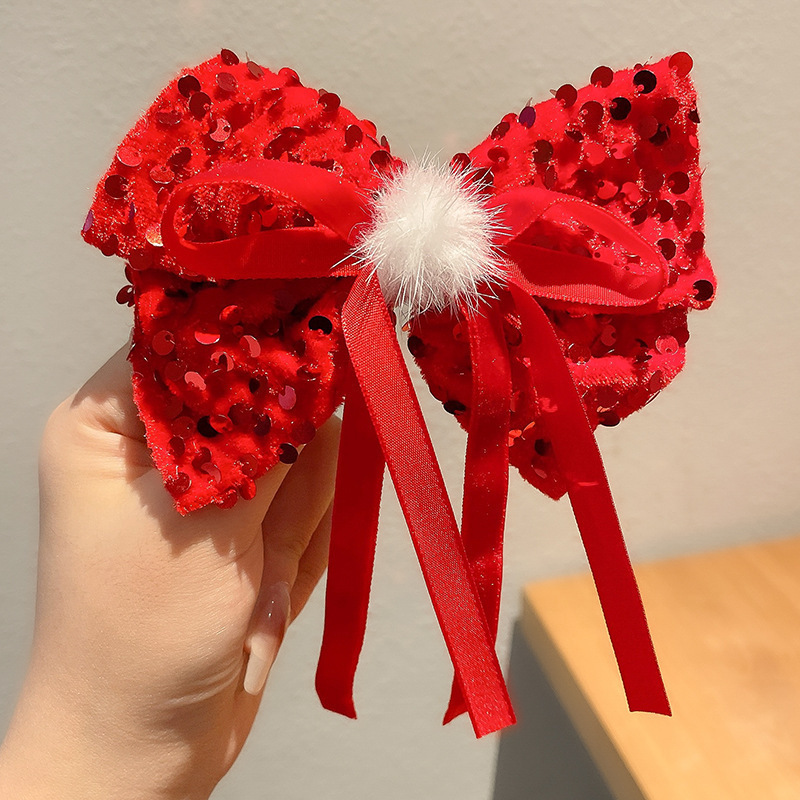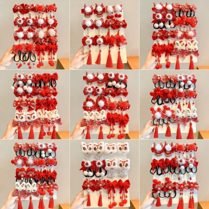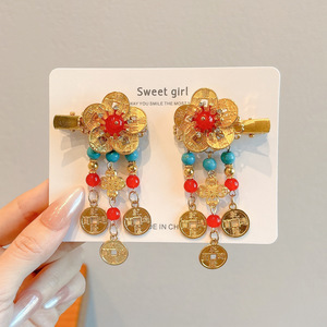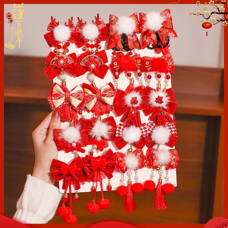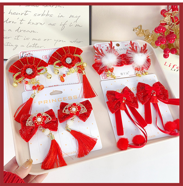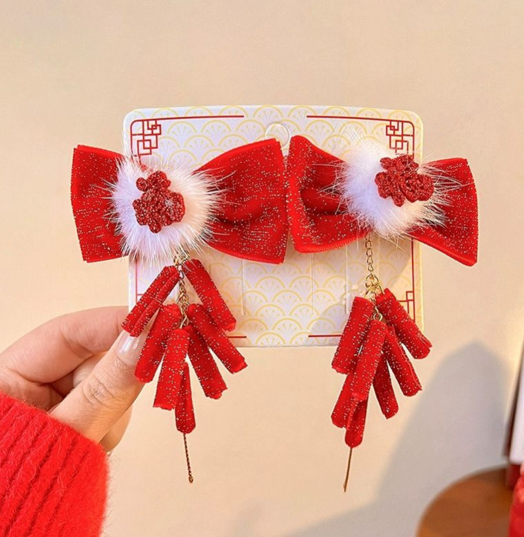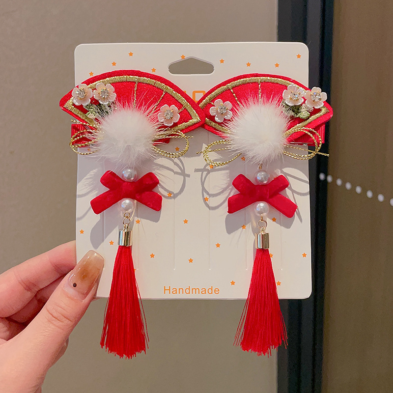 新年儿童古风发饰女童汉服过年中国风蝴蝶结对夹宝宝马年发卡批发