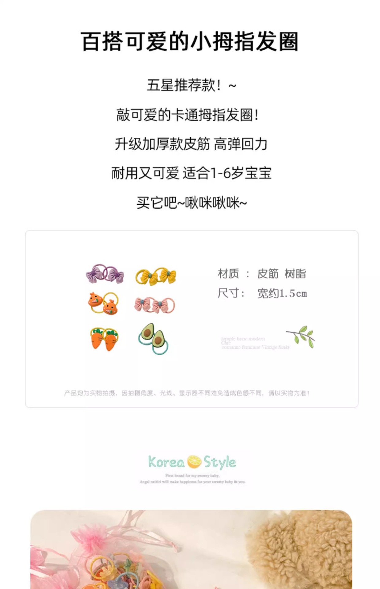 儿童拇指发圈高弹力扎辫子皮筋宝宝弹性好不伤发卡通头绳可爱发饰