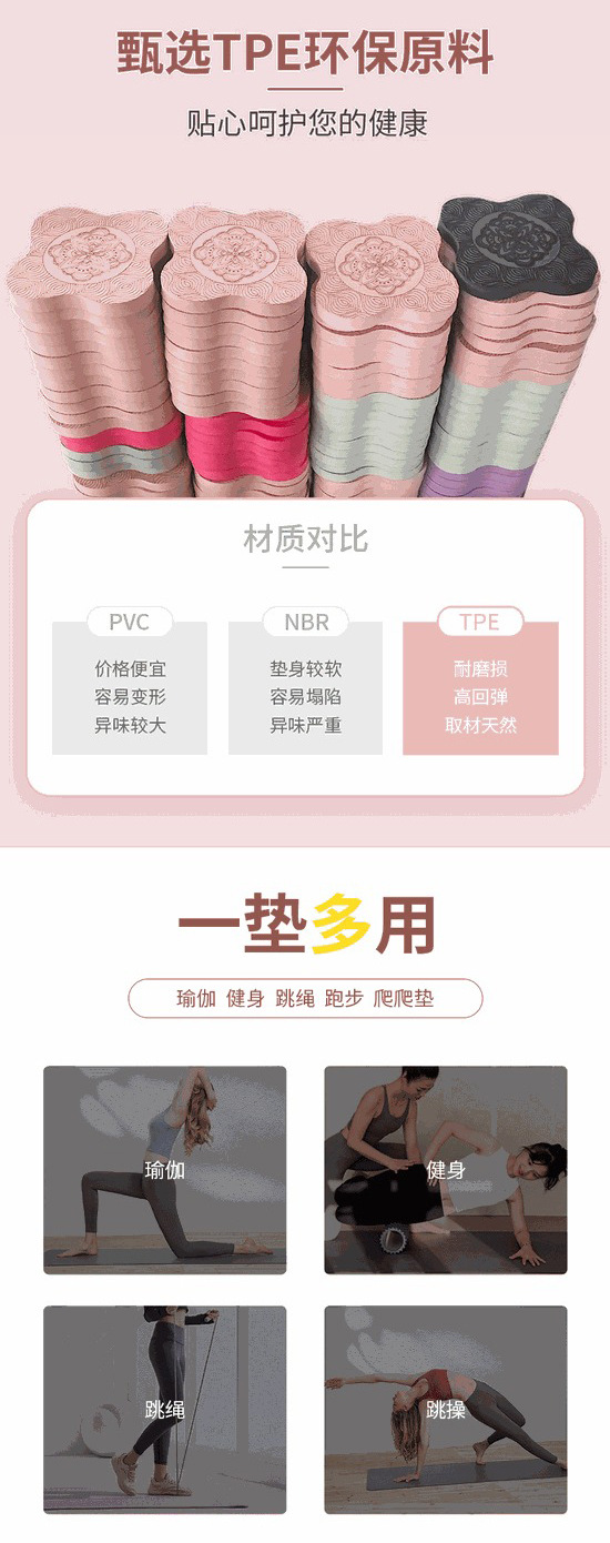 严选tpe平板支撑垫防滑减震便携式小号运动瑜伽跪垫护膝护肘健身