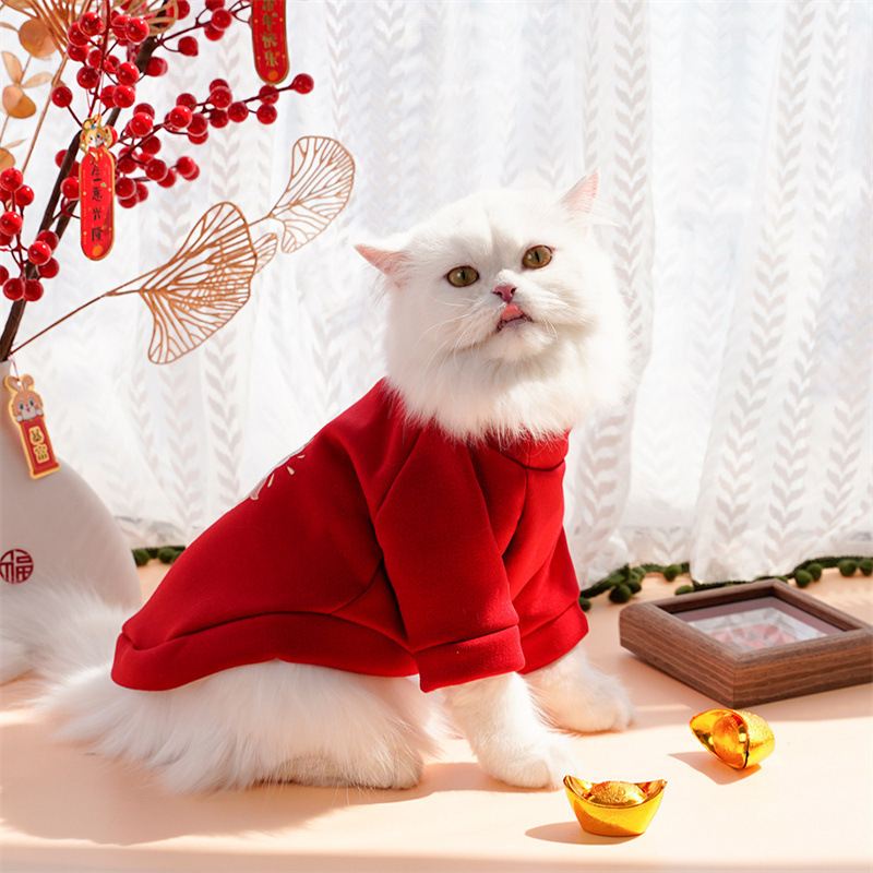 秋冬季宠物猫咪衣服加绒款新年宠物服饰两脚猫卫衣狗狗猫咪衣服