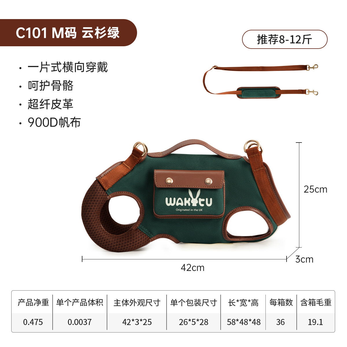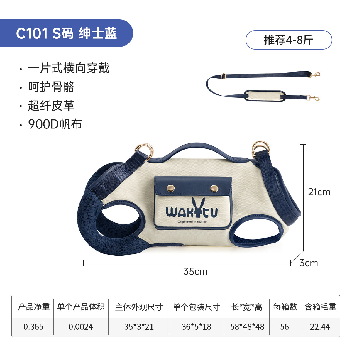 Wakytu英国狗狗外出单肩背带 猫咪背包宠物背带透气外出便携狗包