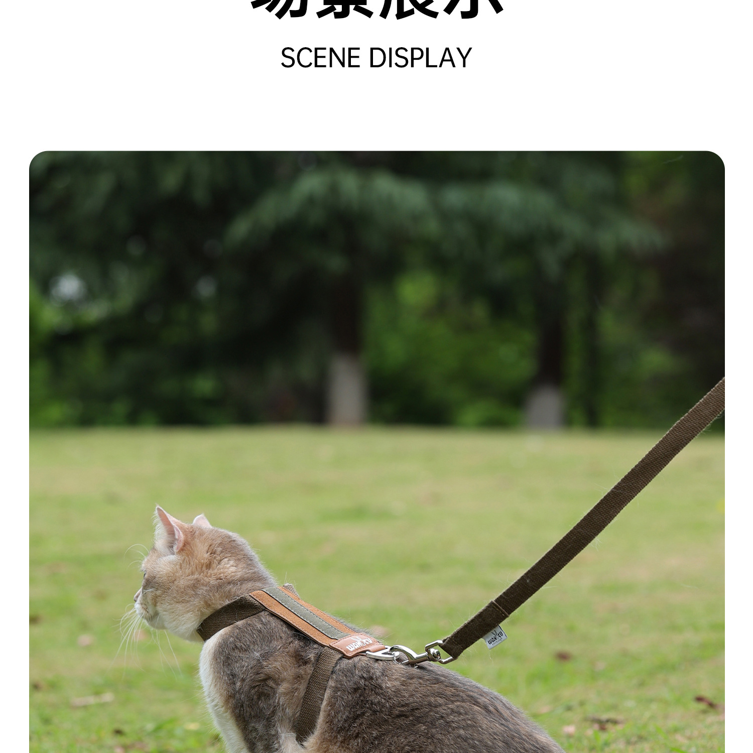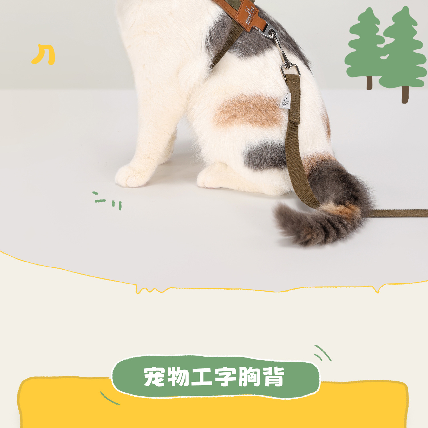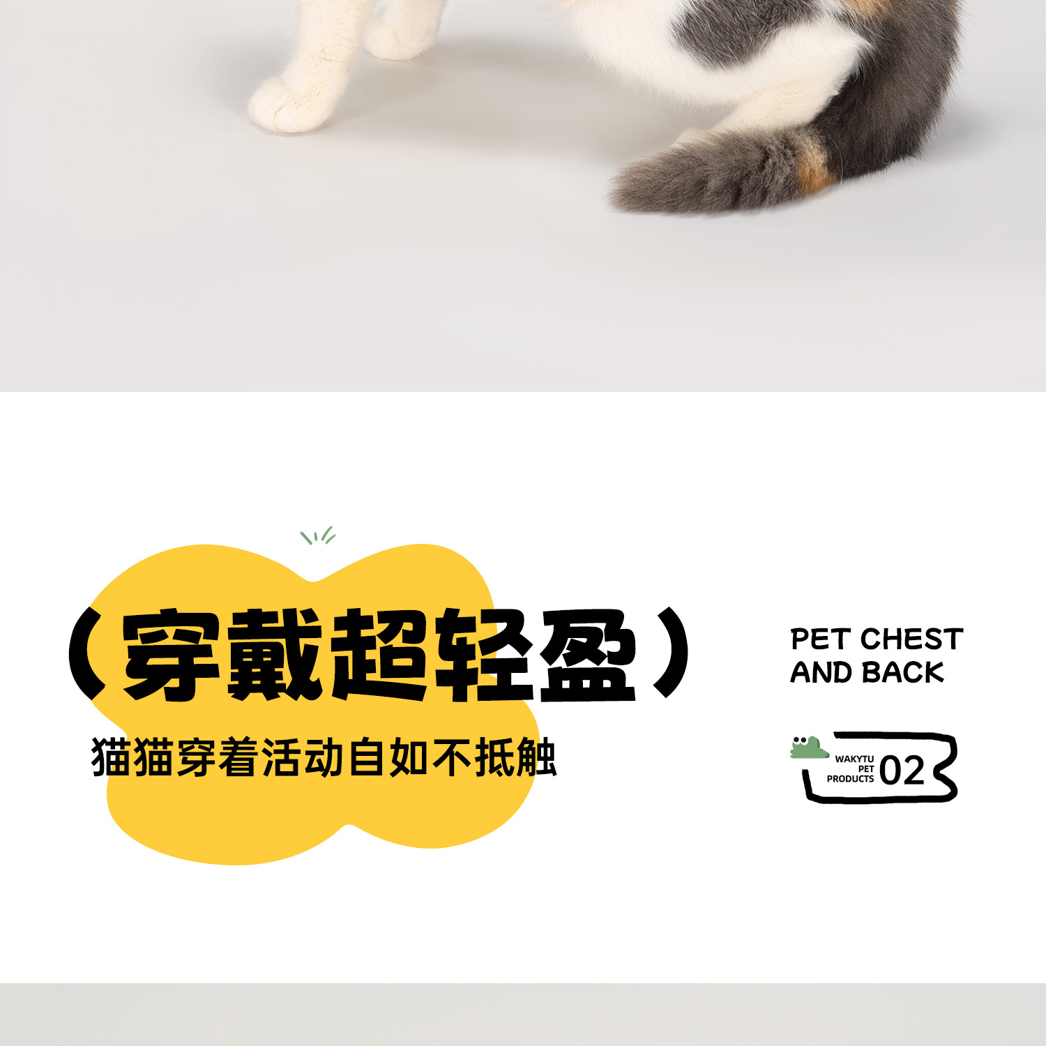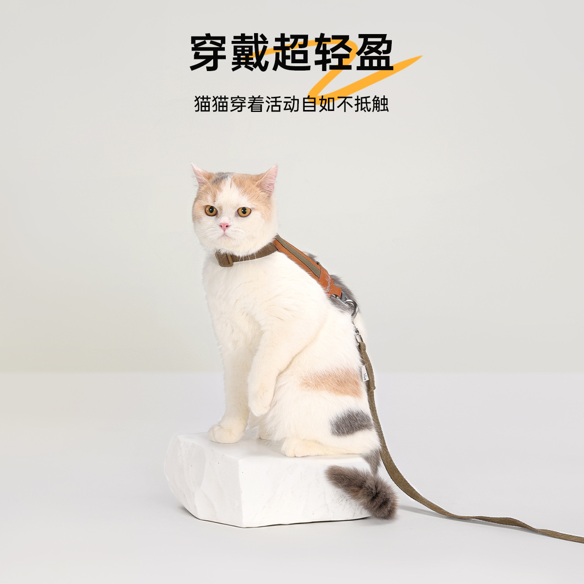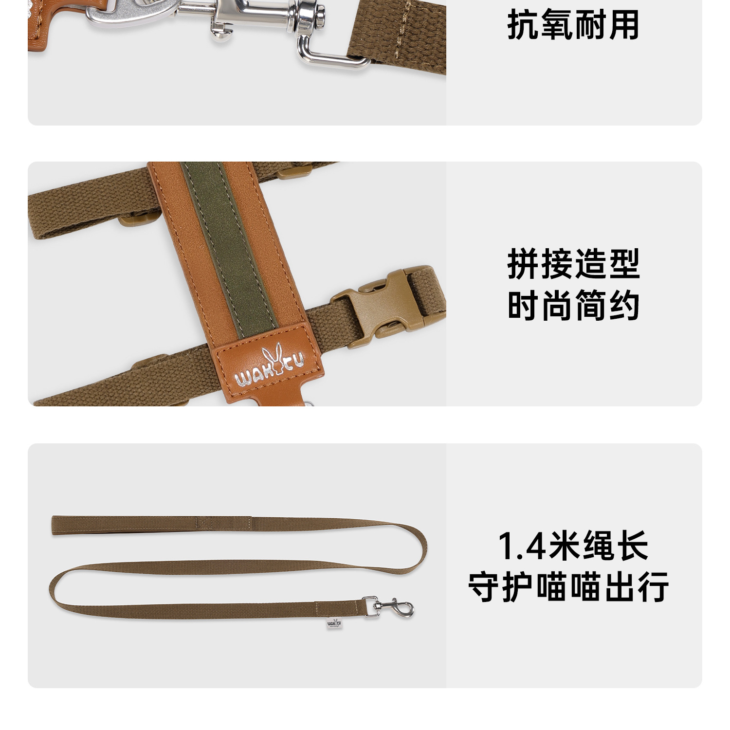wakytu英国宠物工字胸背带背心式猫可调节溜猫绳防挣脱猫咪牵引绳
