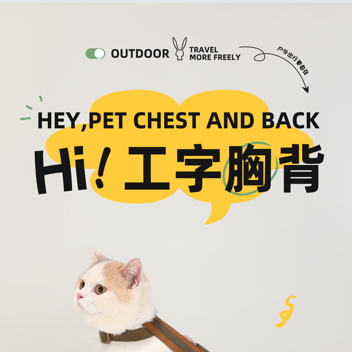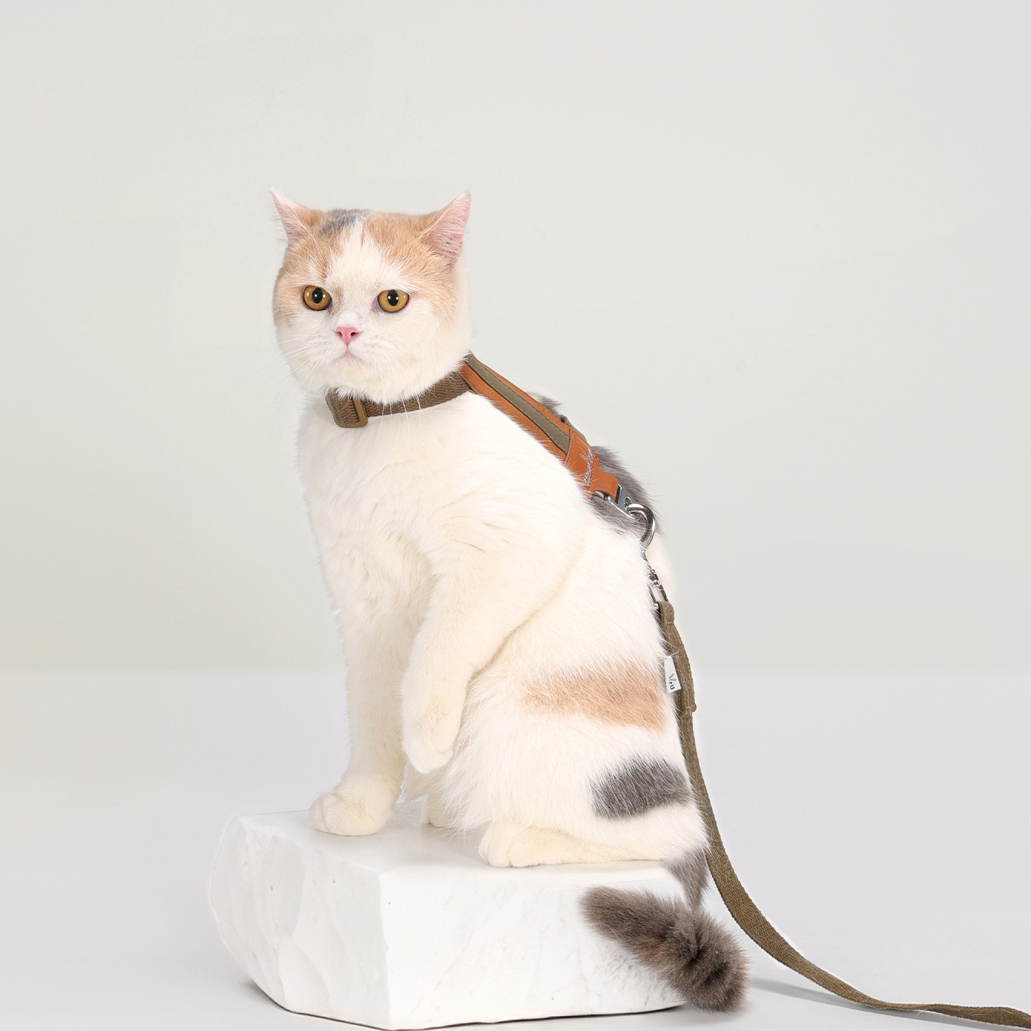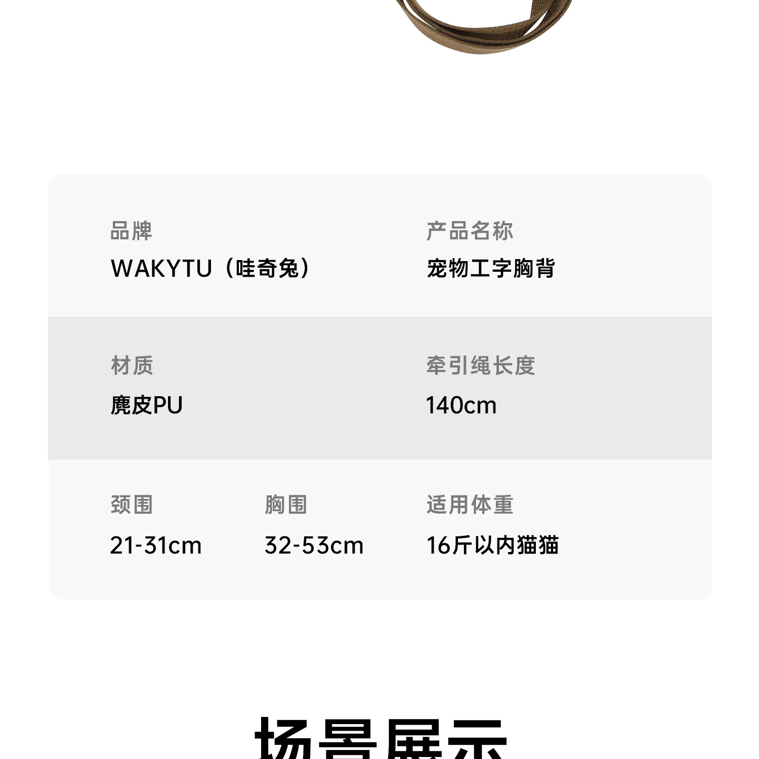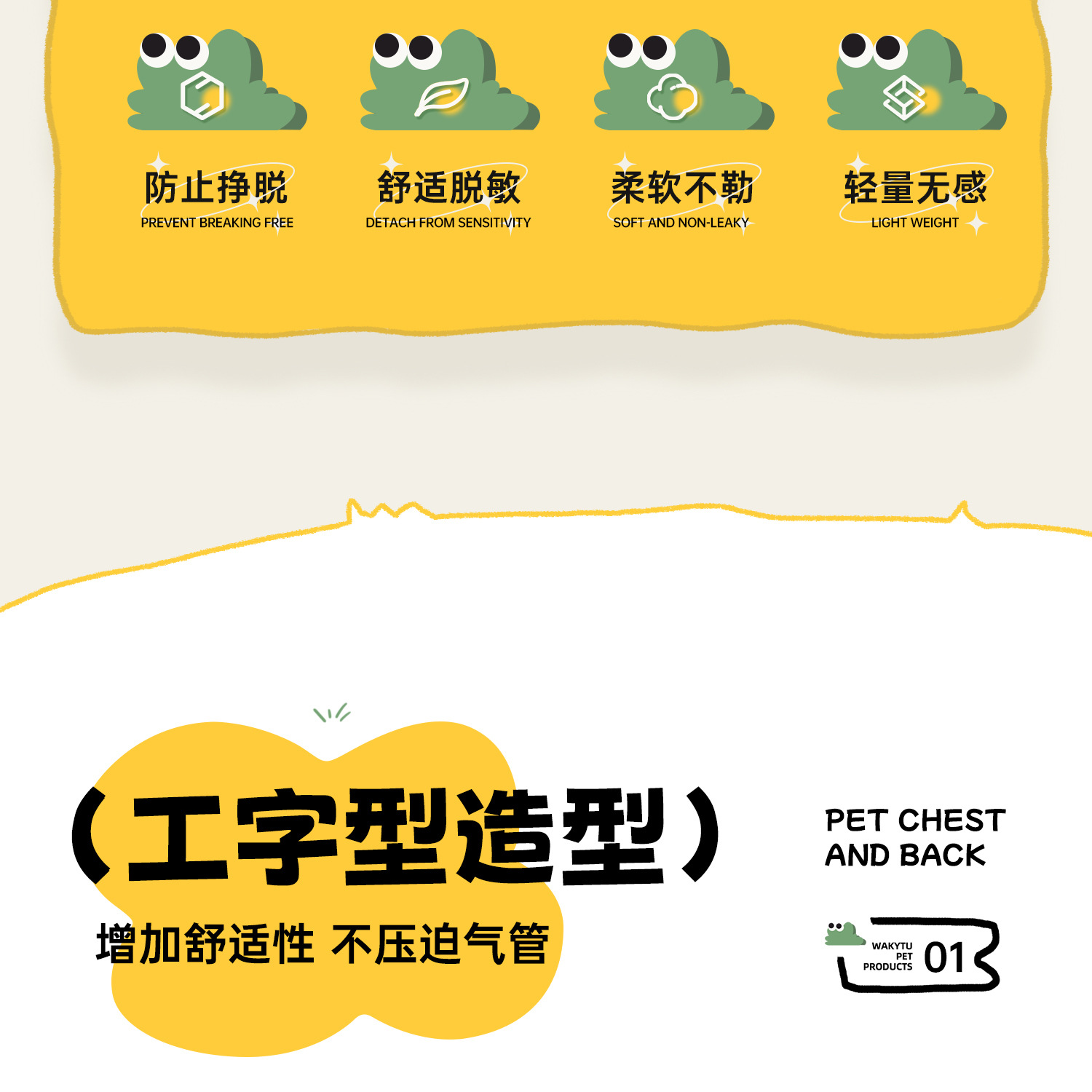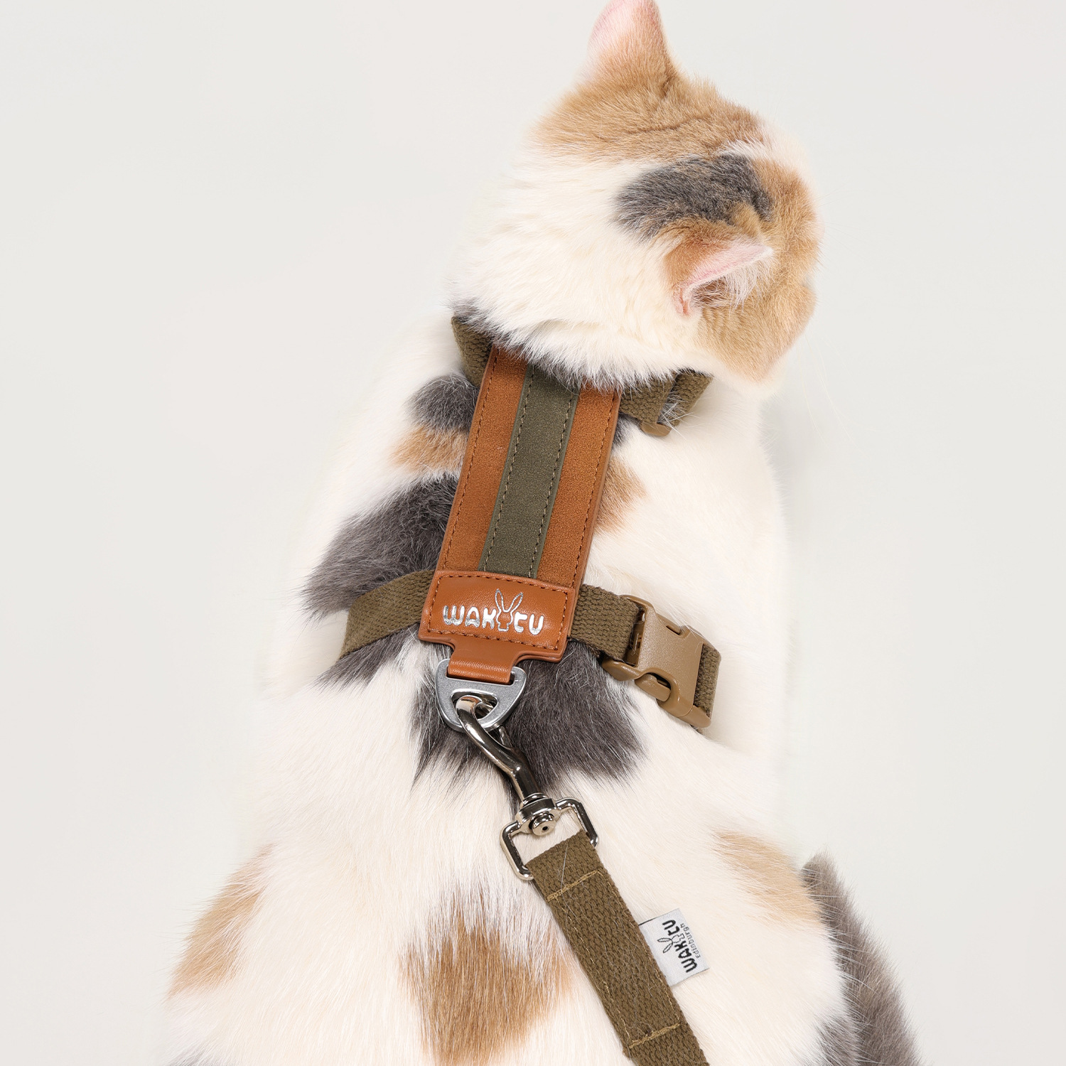 wakytu英国宠物工字胸背带背心式猫可调节溜猫绳防挣脱猫咪牵引绳