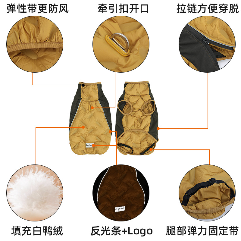 狗狗中小型棉质犬服保暖冬季宠物犬防水羽绒犬外套拉链可牵引衣服