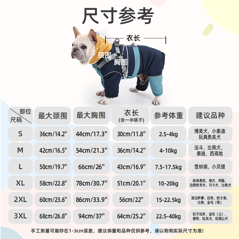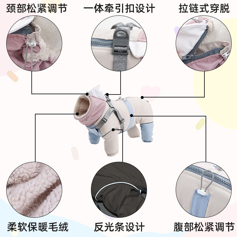 宠物四腿汪汪鲨服秋冬户外厚实保暖狗狗过冬棉服四腿衣可牵引宠物