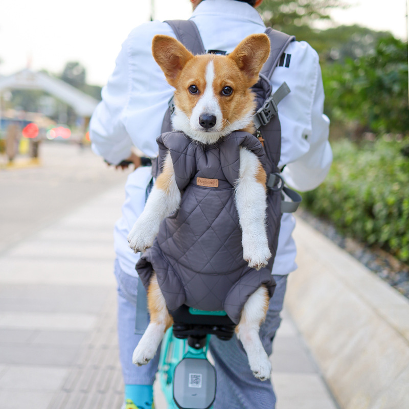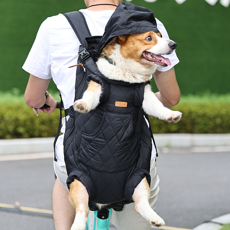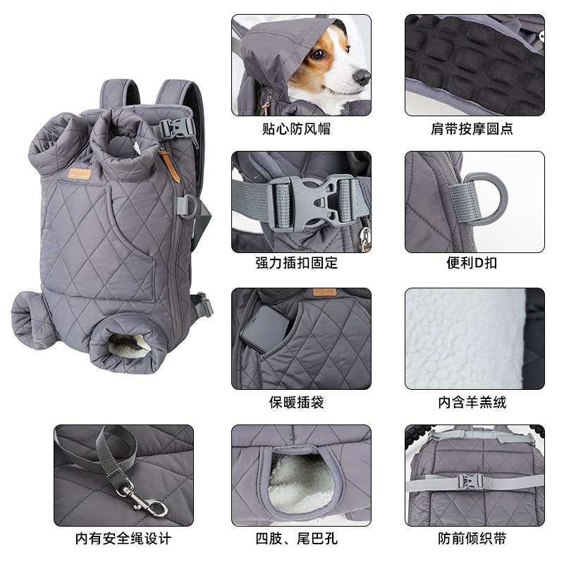 狗狗背包冬季前后两用背包间棉加绒带防风帽冬季狗狗外出保暖背包