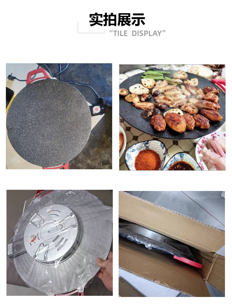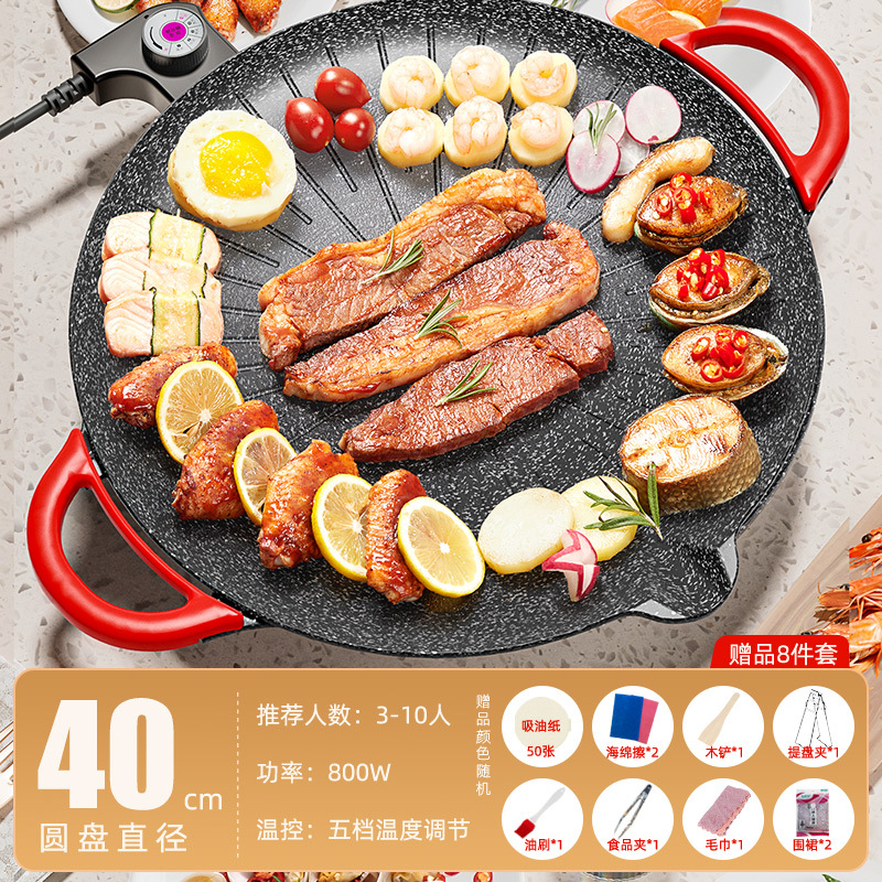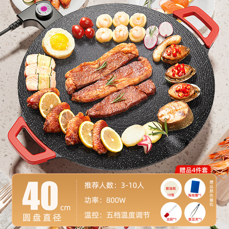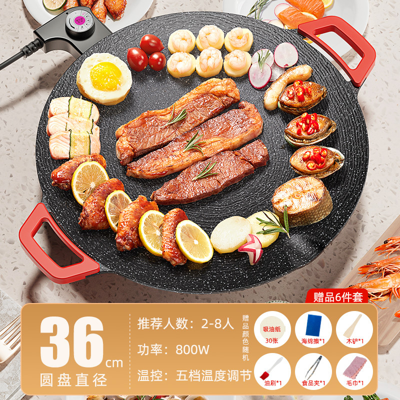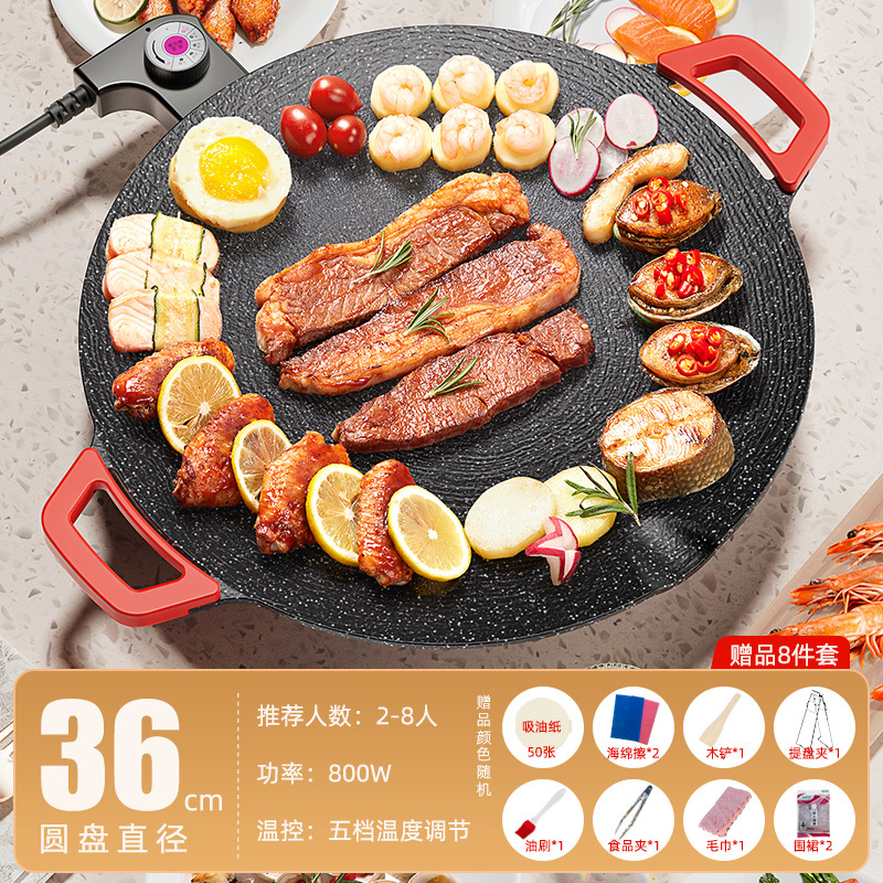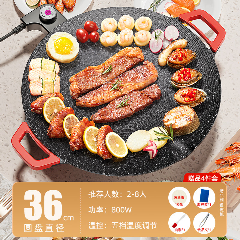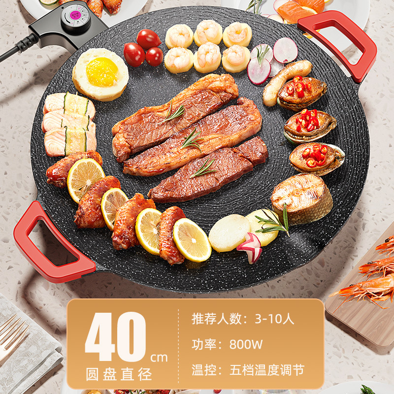 家用电热烤盘烤圆形插电烤盘肉盘烧烤炉少烟不粘麦饭石煎烤一体锅